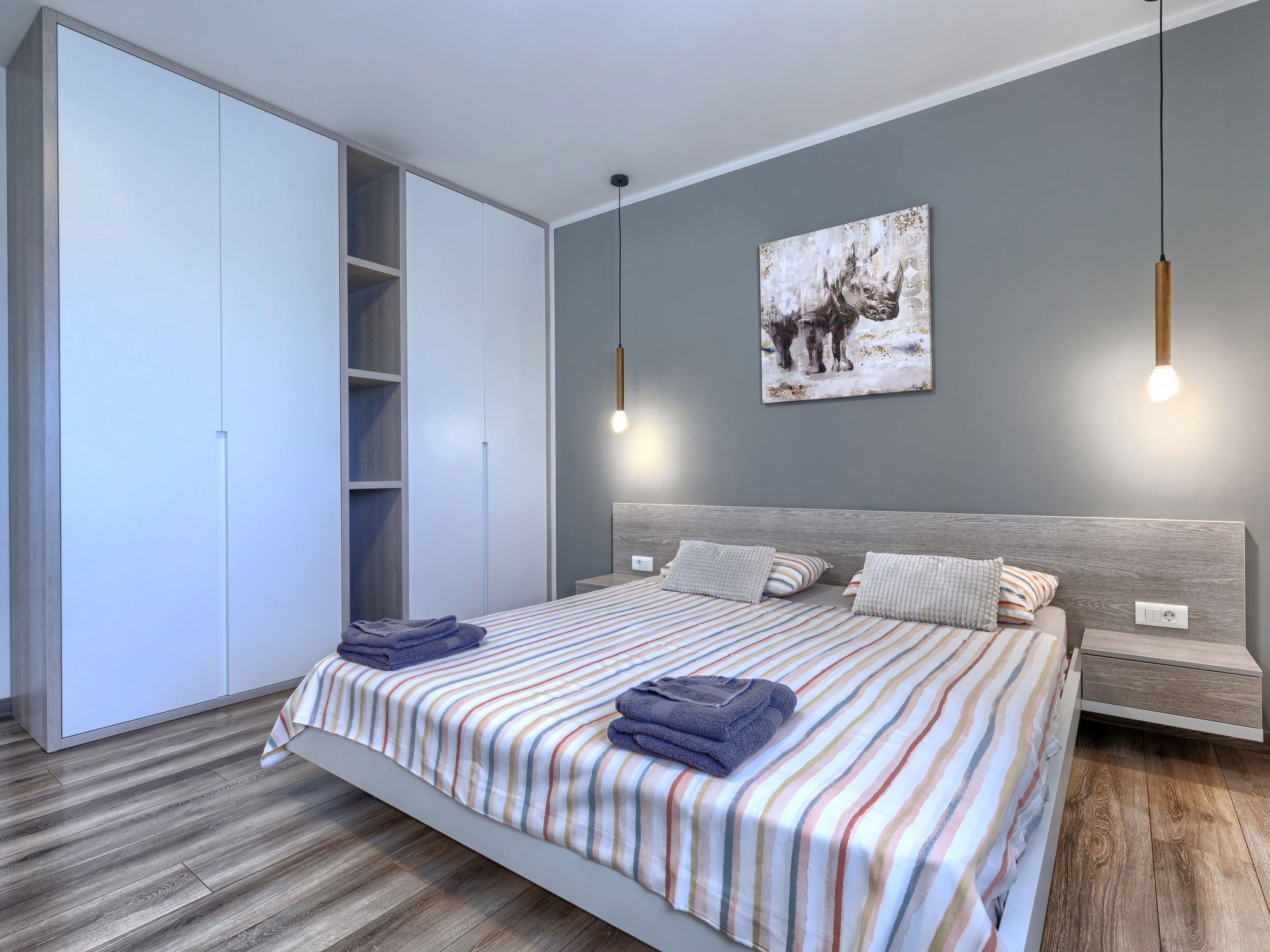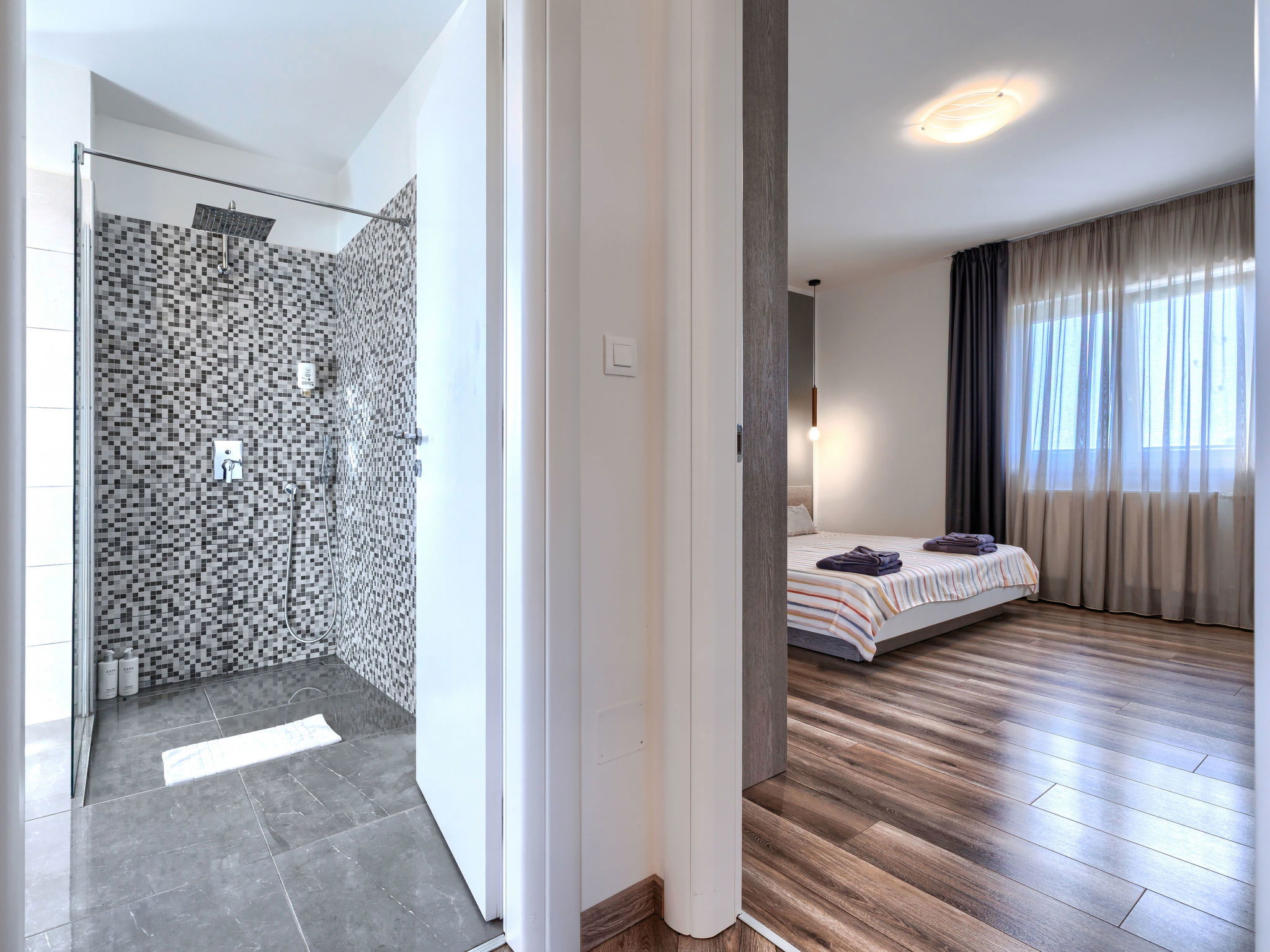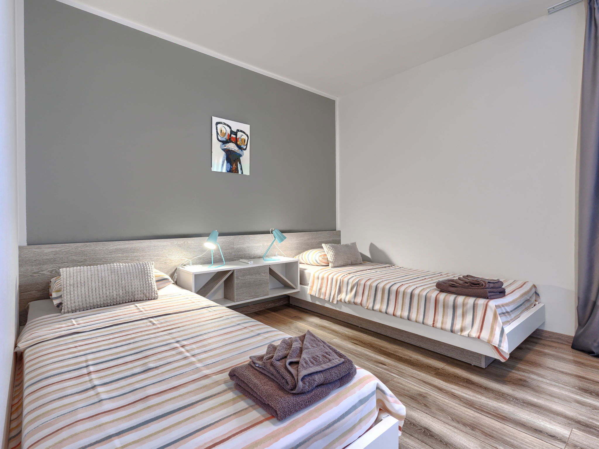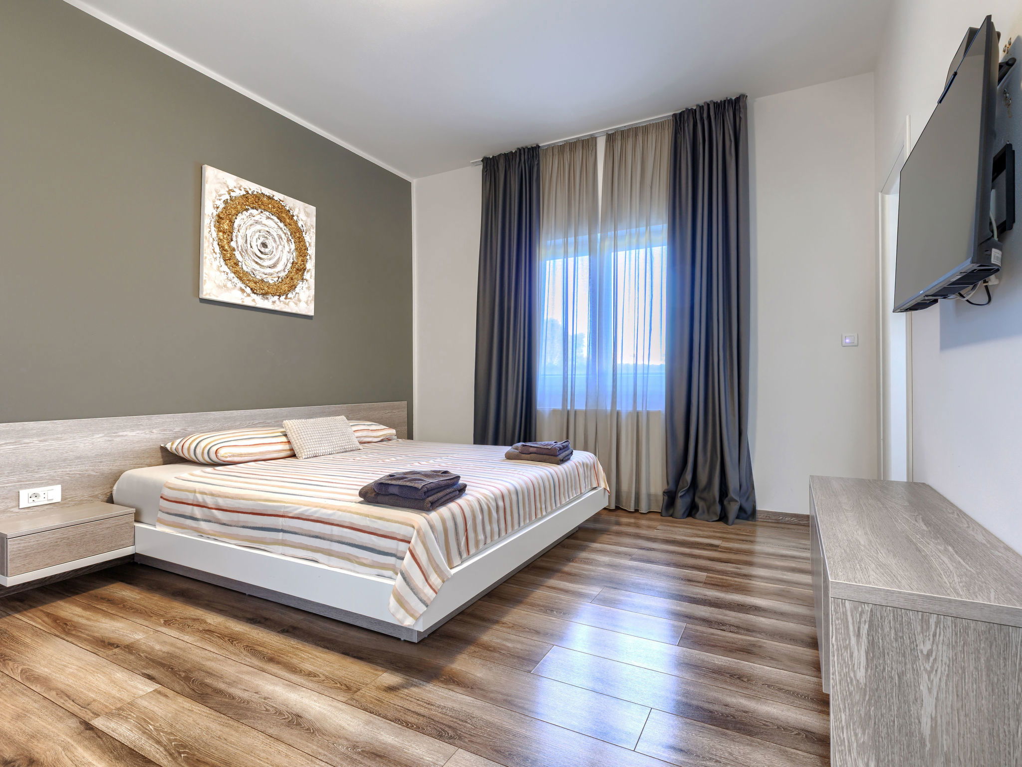 Villa "Magica", 2 storeys. In the hamlet Loborika 6 km from the centre of Pula, 6 km from the centre of Marčana, in a quiet, sunny position, 8 km from the sea. Private: property 1'200 m2 (fenced), garden with wildlife garden and flowers, swimming pool angular, heated (8 x 4 m, depth 140 cm, seasonal availability: 01.Apr. - 01.Nov.) with internal staircase. Outdoor shower, terrace (30 m2), garden furniture, barbecue, children's playground (swing), pool maintenance by the owner/gardener. In the house: internet access, trampoline, washing machine. Parking (for 4 cars) at the house on the premises. Shop 2.3 km, supermarket 6 km, restaurant 2 km, café 2.3 km, bus stop 2.3 km, sandy beach 16 km pebble beach 13 km. Tennis 15 km, riding stable 5 km, walking paths from the house 100 m, cycle lane 150 m. Nearby attractions: Amphitheater 8 km, National park Brijuni 14 km, Nature park Rt. Kamenjak 18 km.