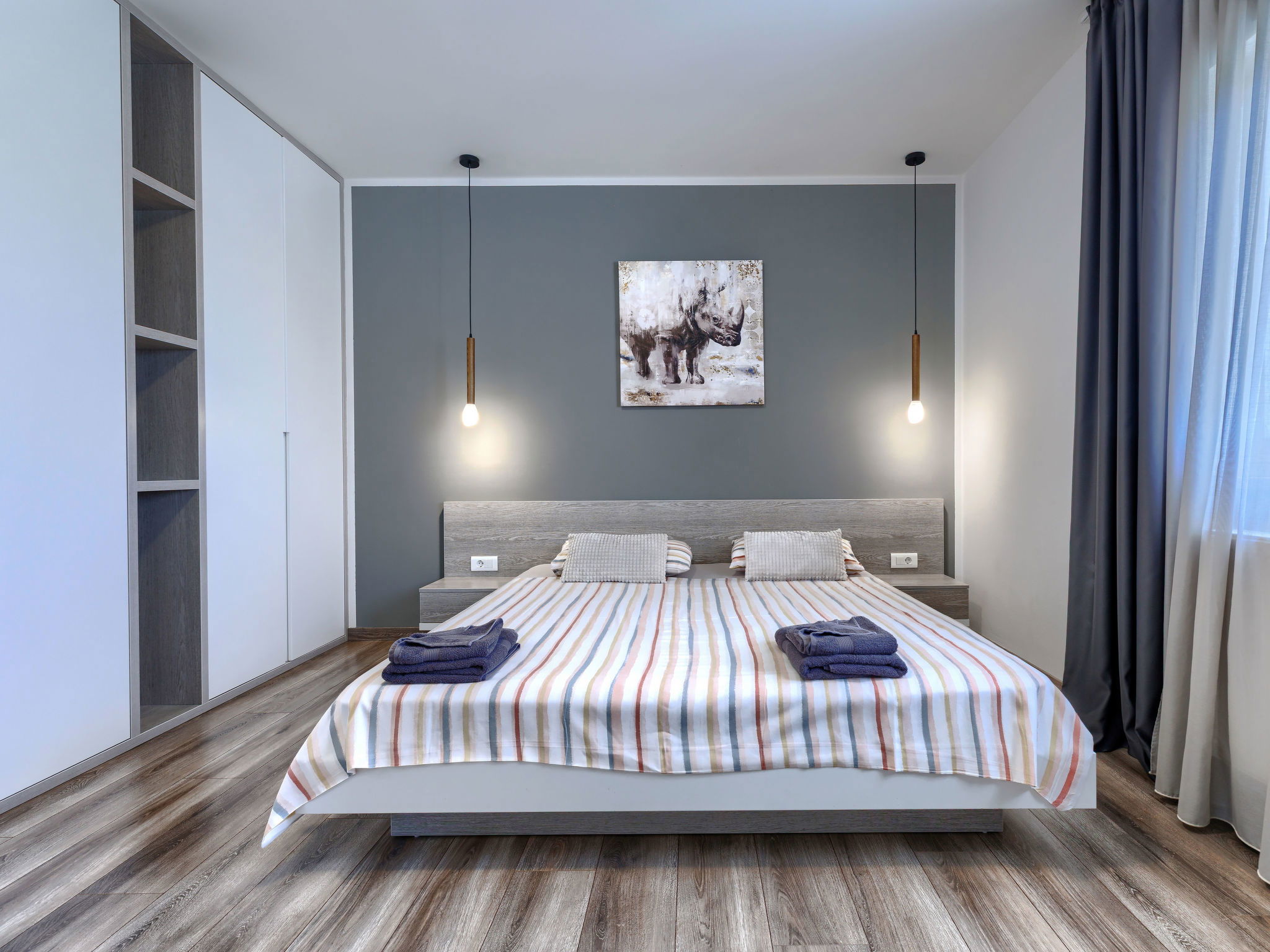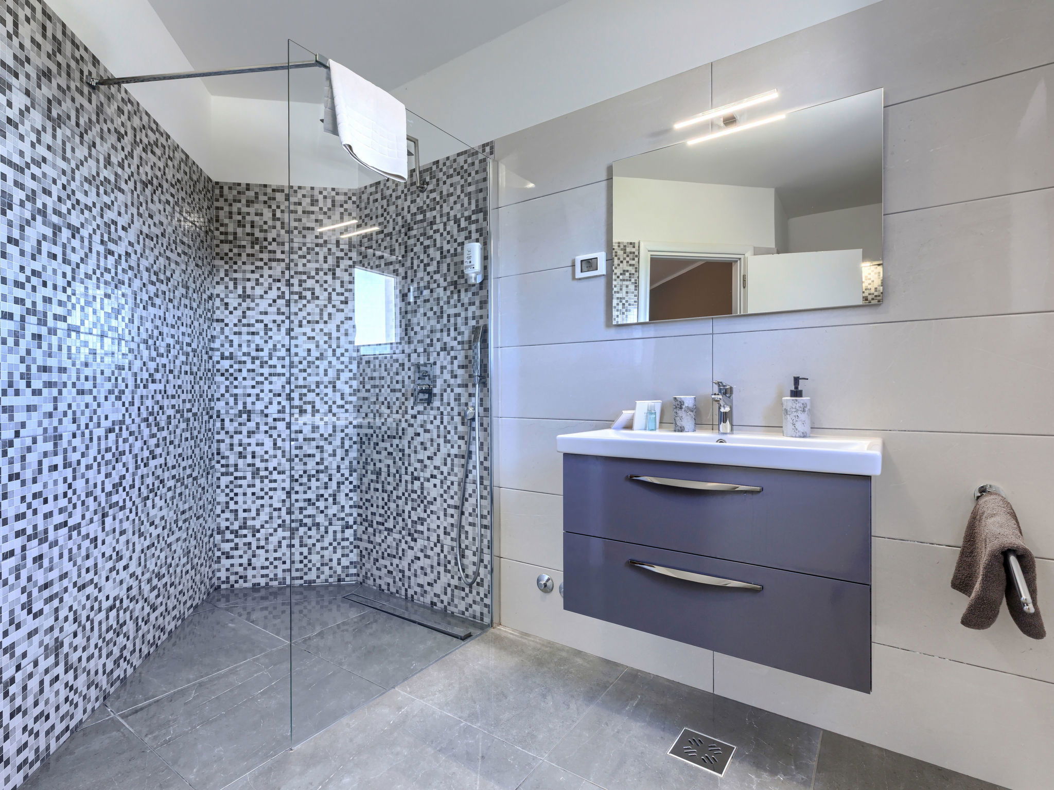 5-room villa 190 m2 on 2 levels. Beautiful and tasteful furnishings: living/dining room 65 m2 with satellite TV (flat screen), air conditioning. Exit to the swimming pool. 1 room with 1 french bed (180 cm, length 200 cm), bath/WC and satellite TV (flat screen), air conditioning. Open kitchen (oven, dishwasher, 4 ceramic glass hob hotplates, toaster, kettle, microwave, freezer, electric coffee machine). Exit to the terrace. Sep. WC. Upper floor: 2 rooms, each room with 1 french bed (180 cm, length 200 cm), shower/WC and satellite TV (flat screen), air conditioning. 1 room with 2 beds (90 cm, length 200 cm), satellite TV (flat screen), air conditioning. Shower/WC. Deck chairs. Facilities: safe, children's high chair, baby cot for up to 2 year olds, hair dryer. Internet (WiFi, free). 1 small pet/ dog allowed.