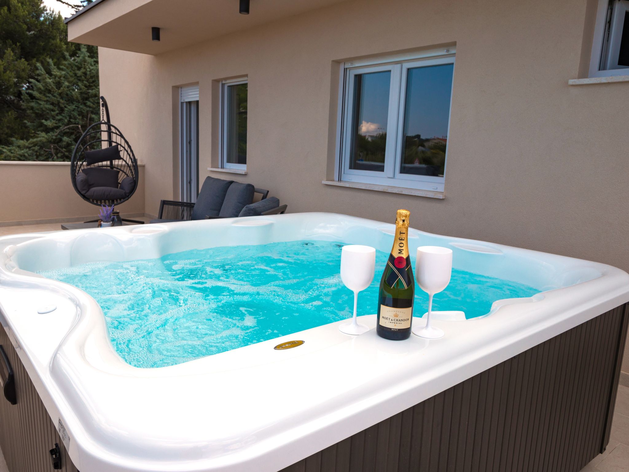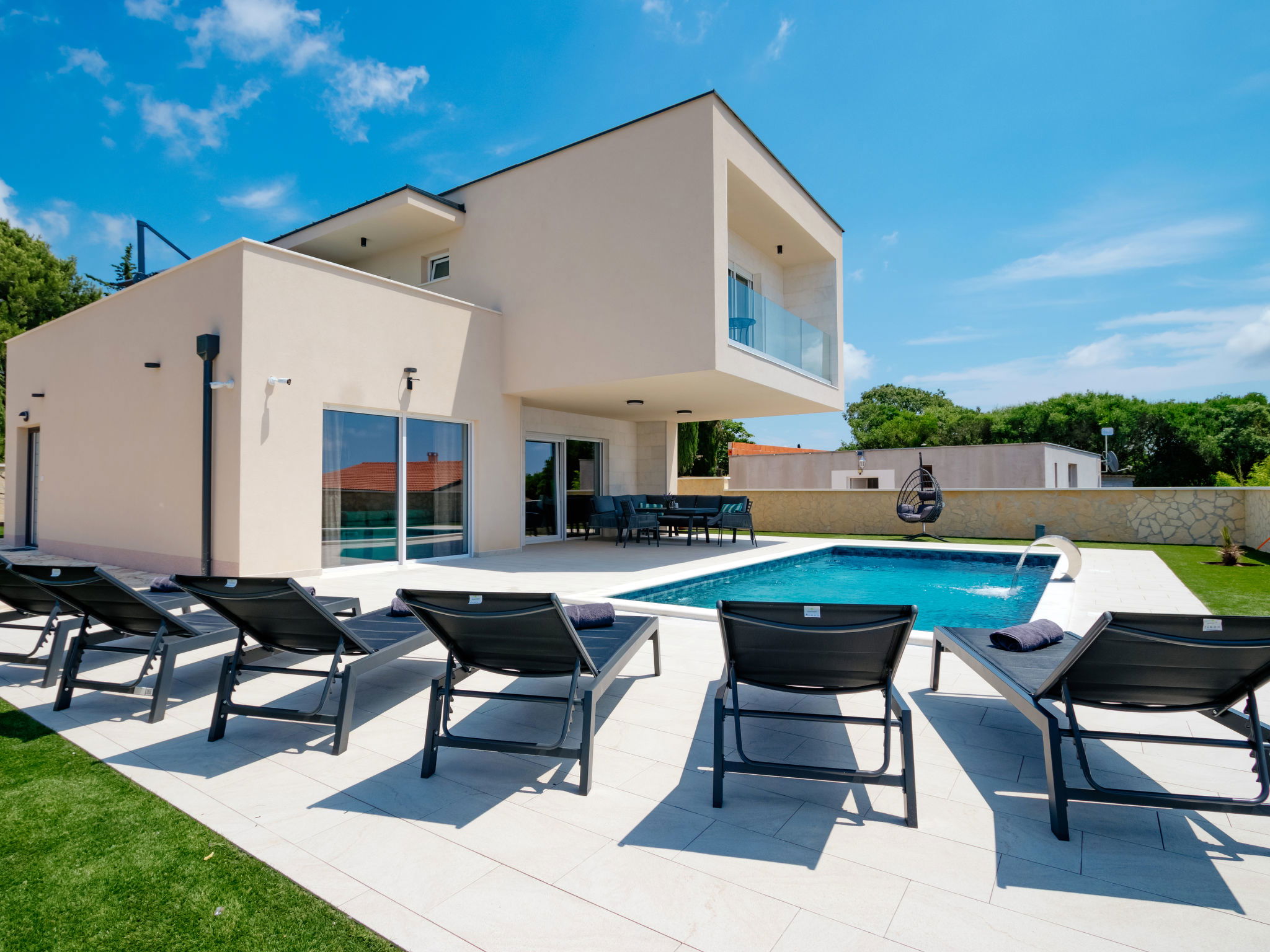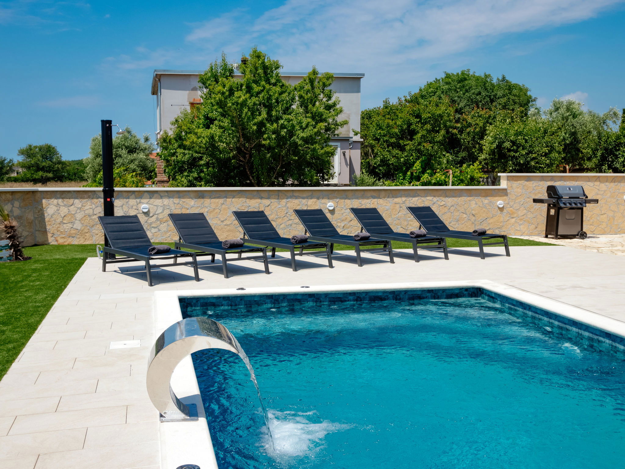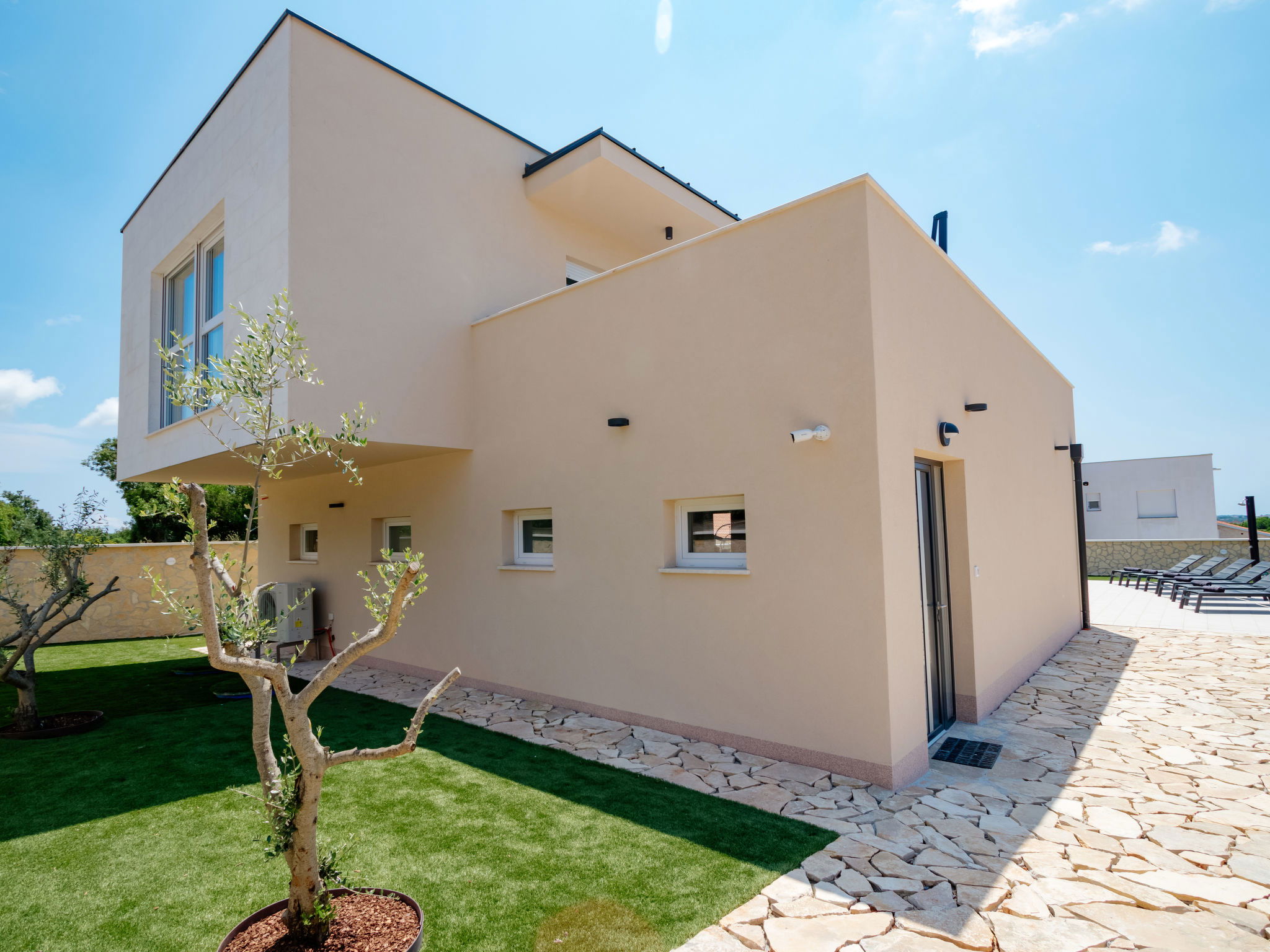 Modern villa "Paula". 3 km from the centre of Pula, in a sunny position, 5 km from the sea, 6 km from the beach. Private: property 600 m2 (fenced), garden with flowers, swimming pool angular, heated (8 x 4 m, depth 140 cm, seasonal availability: 15.Apr. - 01.Nov.) with internal staircase. Hot tub, terrace (16 m2), garden furniture, barbecue, pool maintenance by the owner/gardener. In the house: internet access, washing machine. Parking (for 2 cars) at the house on the premises. Shop 4 km, supermarket 4 km, restaurant 4 km, bus stop 50 m, sandy beach 9 km pebble beach 6 km, rocky beach 6 km. Surf school 9 km, minigolf 2 km, riding stable 9 km. Nearby attractions: Amphitheater 4 km, Nature park Kamenjak 15 km.