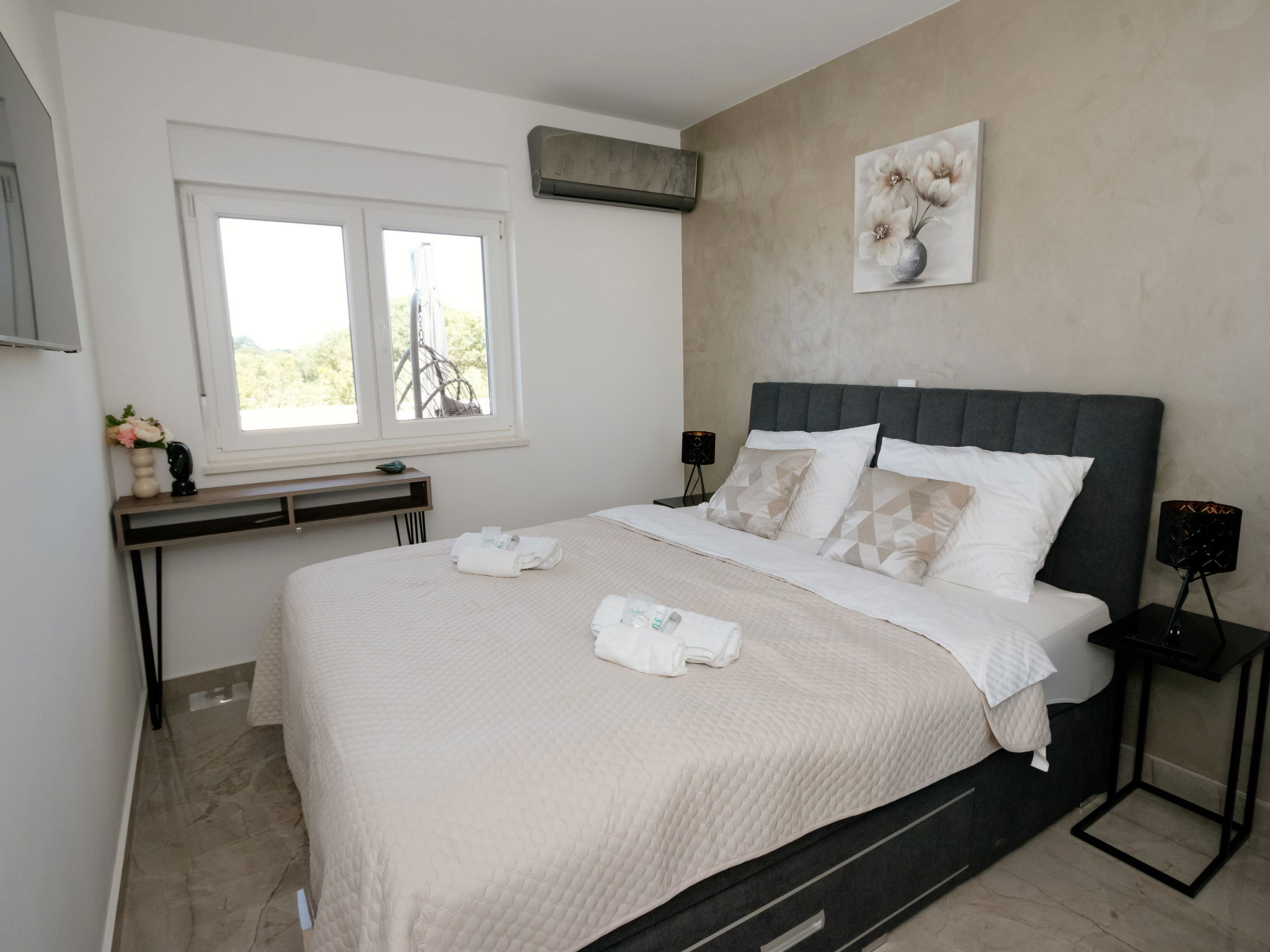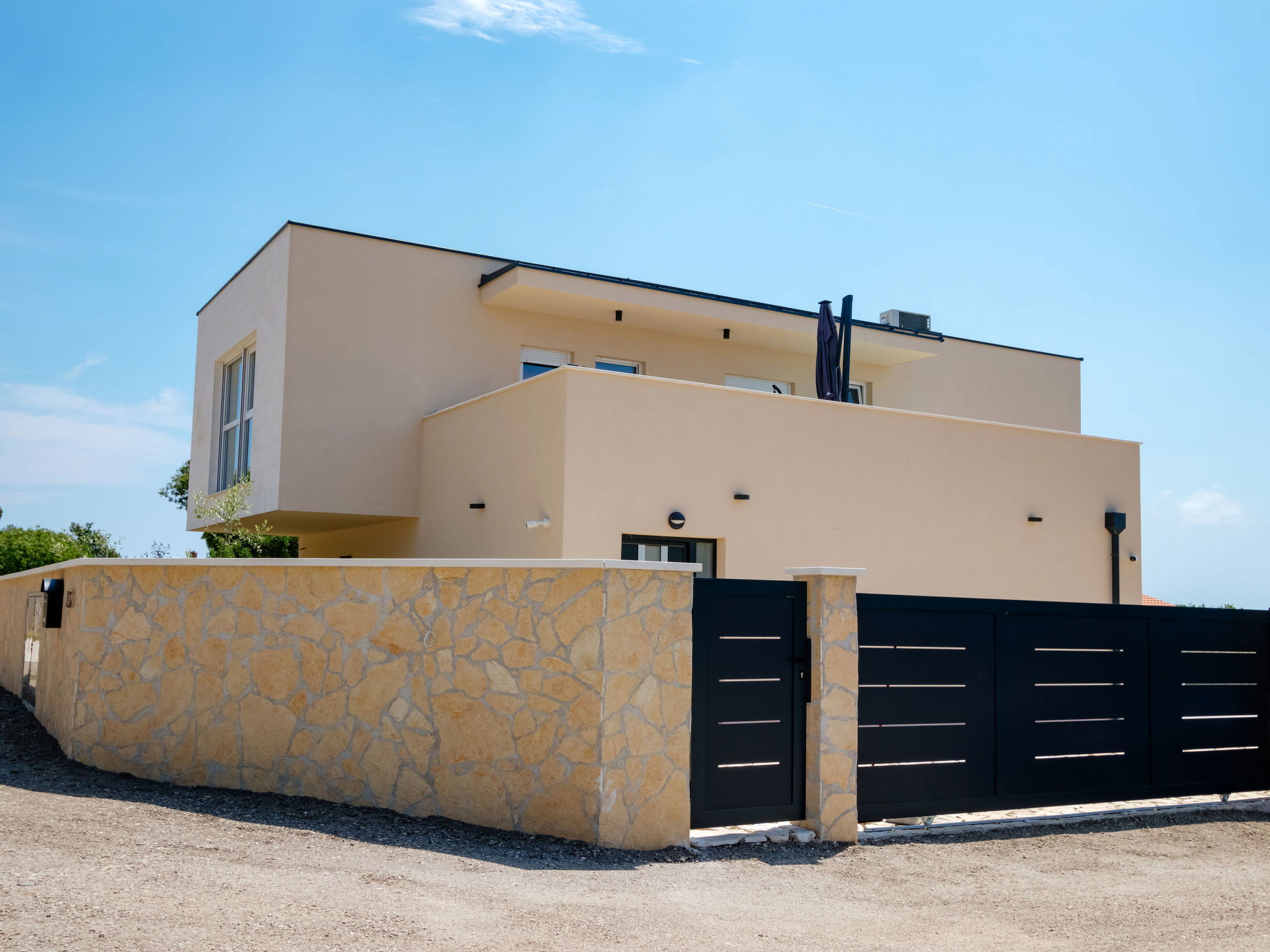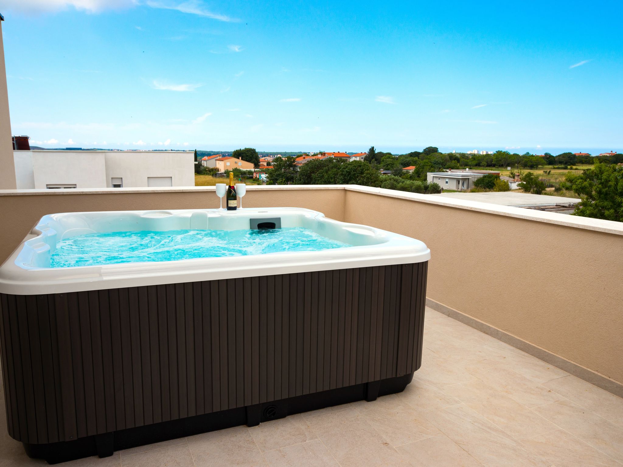 Modern villa "Paula". 3 km from the centre of Pula, in a sunny position, 5 km from the sea, 6 km from the beach. Private: property 600 m2 (fenced), garden with flowers, swimming pool angular, heated (8 x 4 m, depth 140 cm, seasonal availability: 15.Apr. - 01.Nov.) with internal staircase. Hot tub, terrace (16 m2), garden furniture, barbecue, pool maintenance by the owner/gardener. In the house: internet access, washing machine. Parking (for 2 cars) at the house on the premises. Shop 4 km, supermarket 4 km, restaurant 4 km, bus stop 50 m, sandy beach 9 km pebble beach 6 km, rocky beach 6 km. Surf school 9 km, minigolf 2 km, riding stable 9 km. Nearby attractions: Amphitheater 4 km, Nature park Kamenjak 15 km.