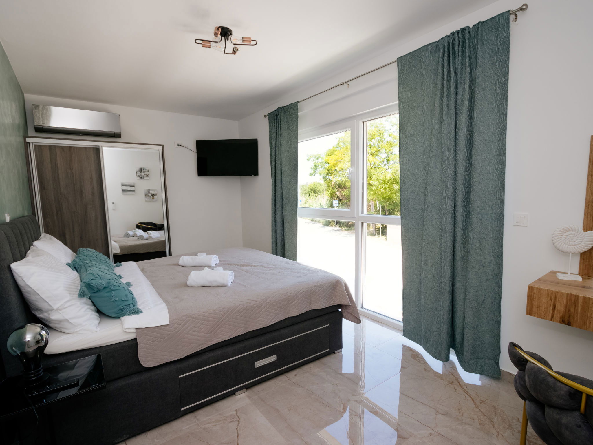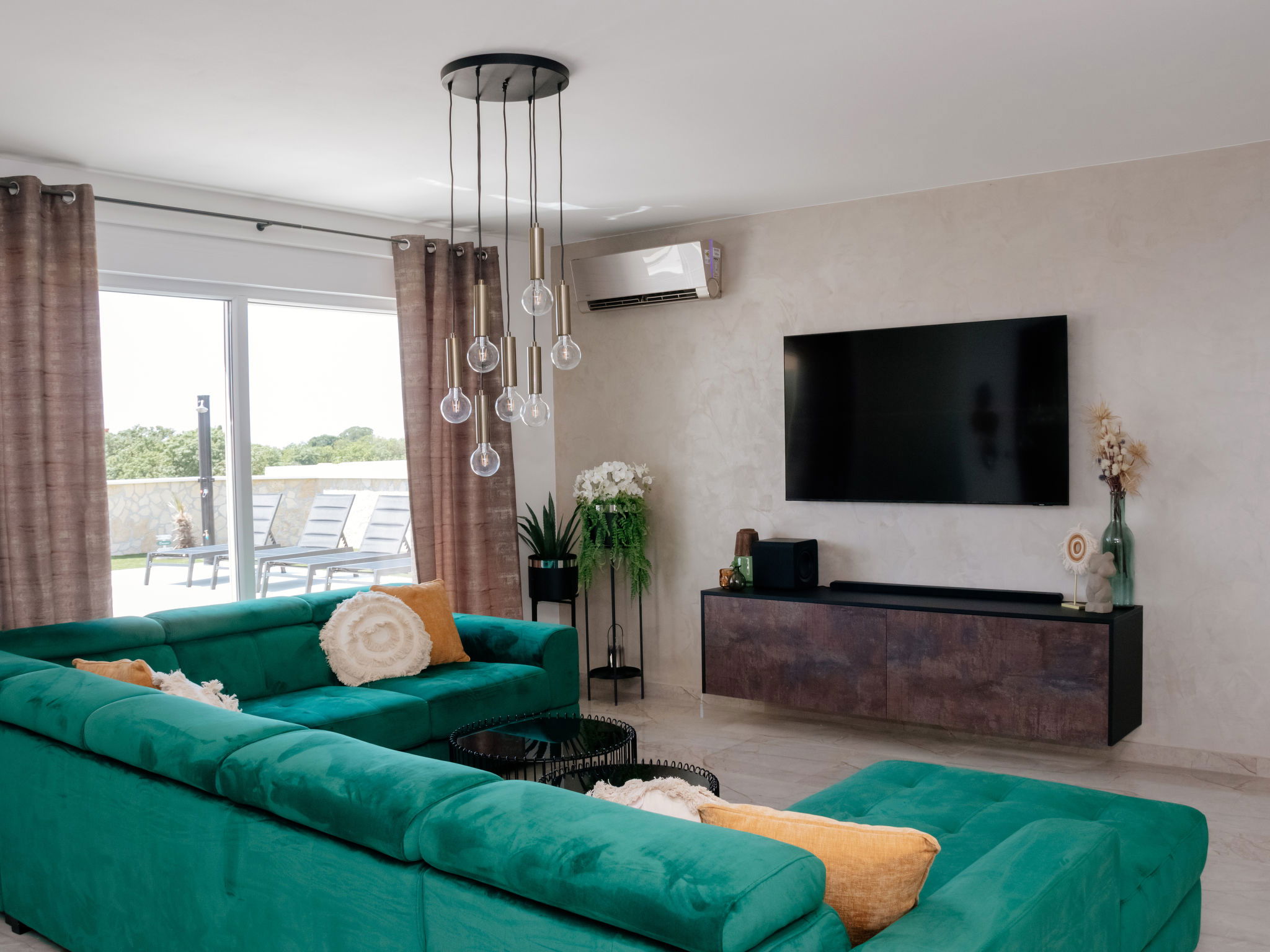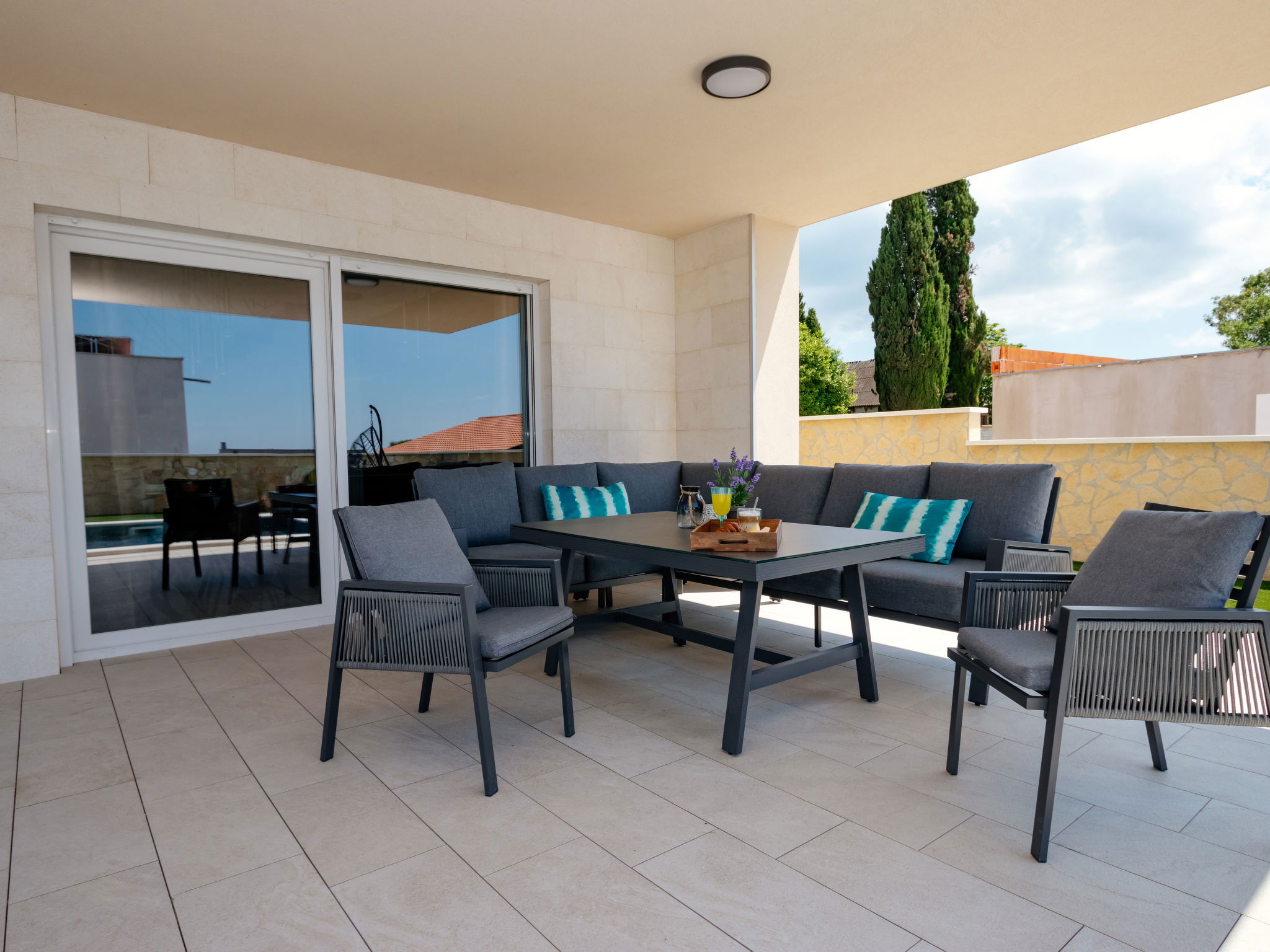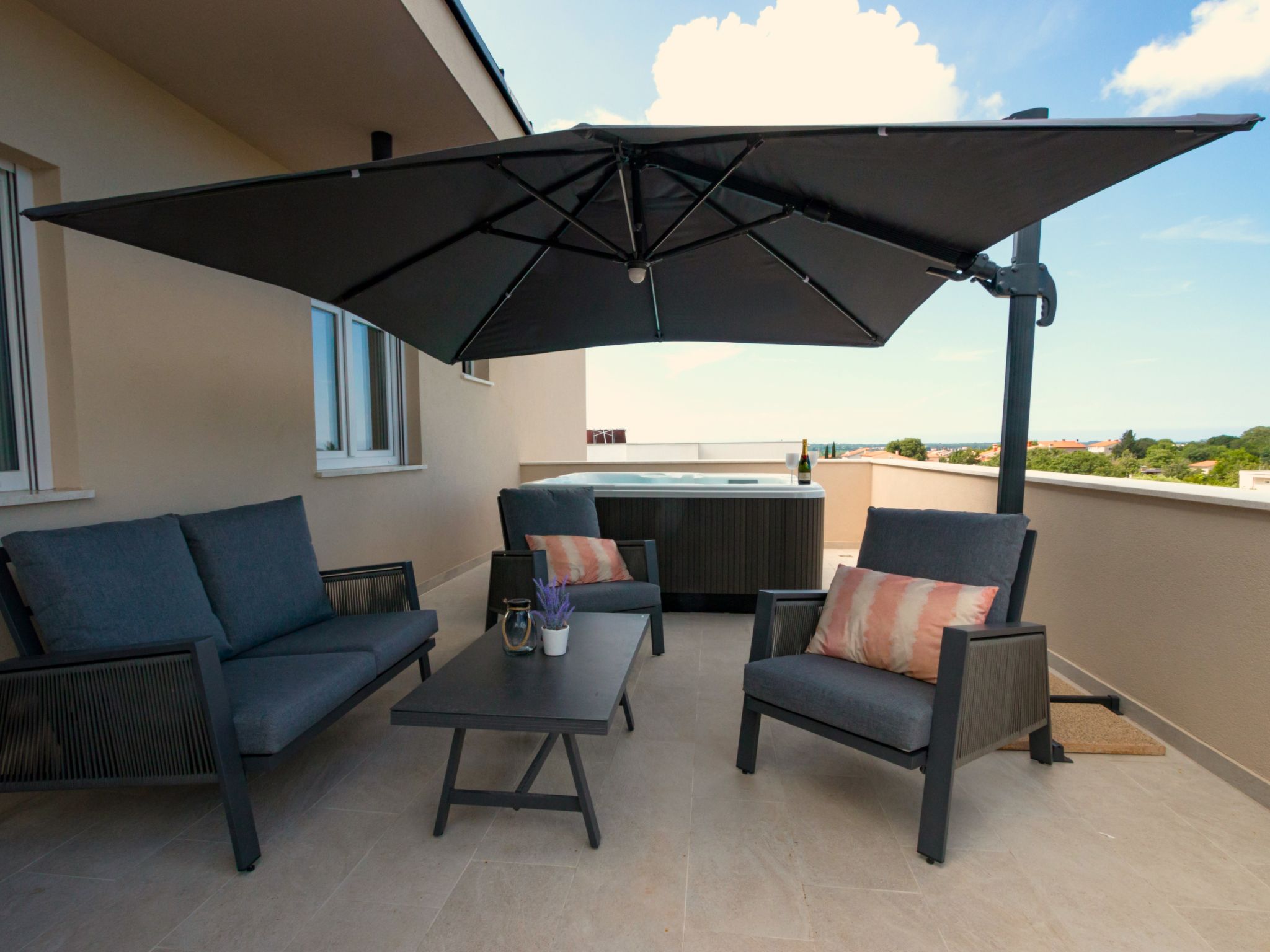 Modern villa "Paula". 3 km from the centre of Pula, in a sunny position, 5 km from the sea, 6 km from the beach. Private: property 600 m2 (fenced), garden with flowers, swimming pool angular, heated (8 x 4 m, depth 140 cm, seasonal availability: 15.Apr. - 01.Nov.) with internal staircase. Hot tub, terrace (16 m2), garden furniture, barbecue, pool maintenance by the owner/gardener. In the house: internet access, washing machine. Parking (for 2 cars) at the house on the premises. Shop 4 km, supermarket 4 km, restaurant 4 km, bus stop 50 m, sandy beach 9 km pebble beach 6 km, rocky beach 6 km. Surf school 9 km, minigolf 2 km, riding stable 9 km. Nearby attractions: Amphitheater 4 km, Nature park Kamenjak 15 km.