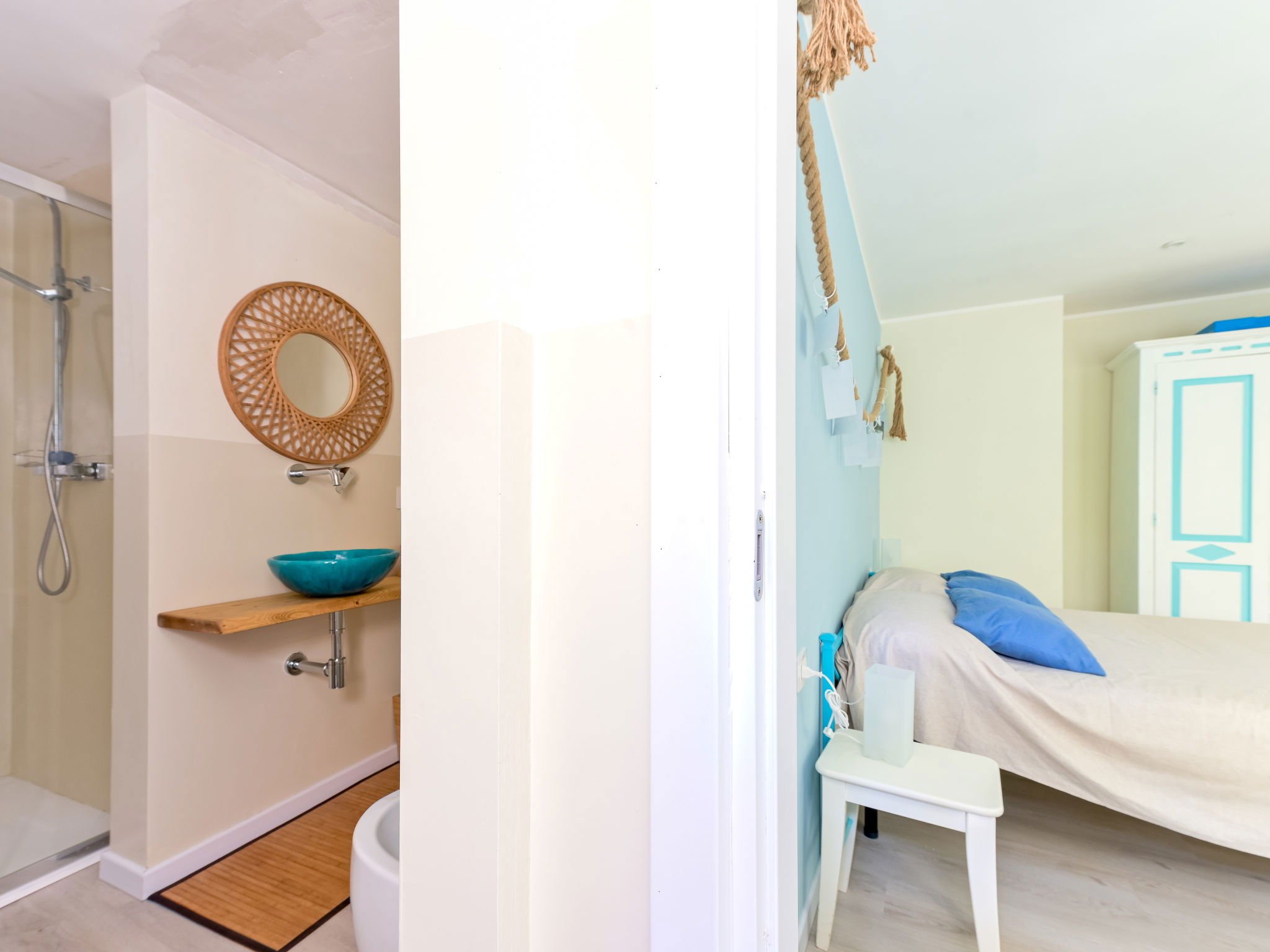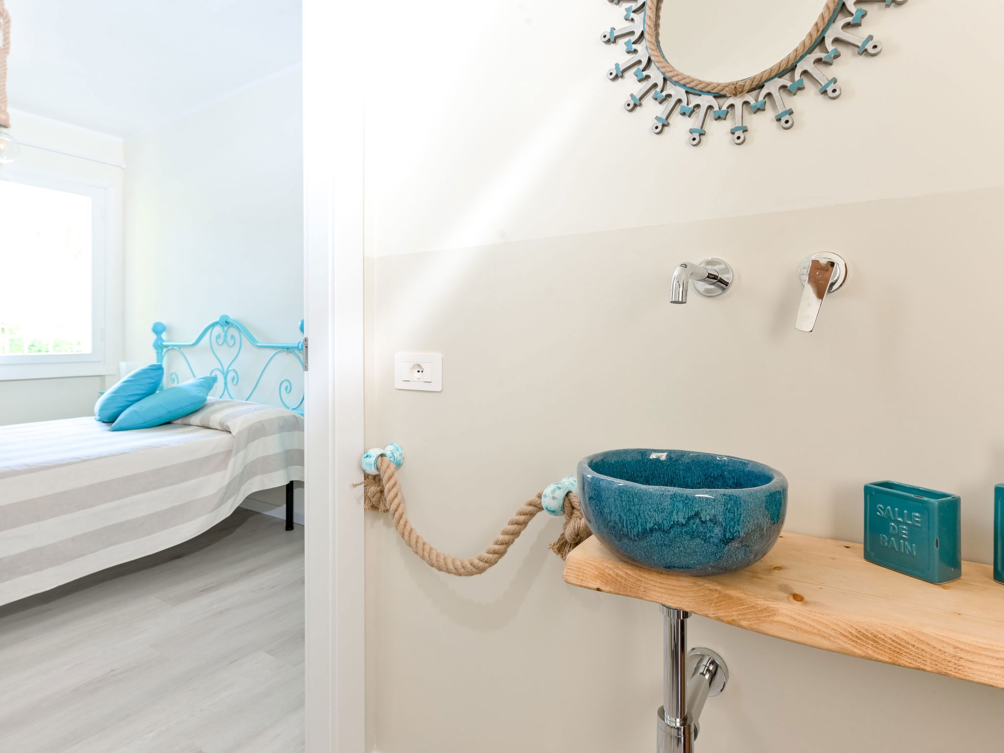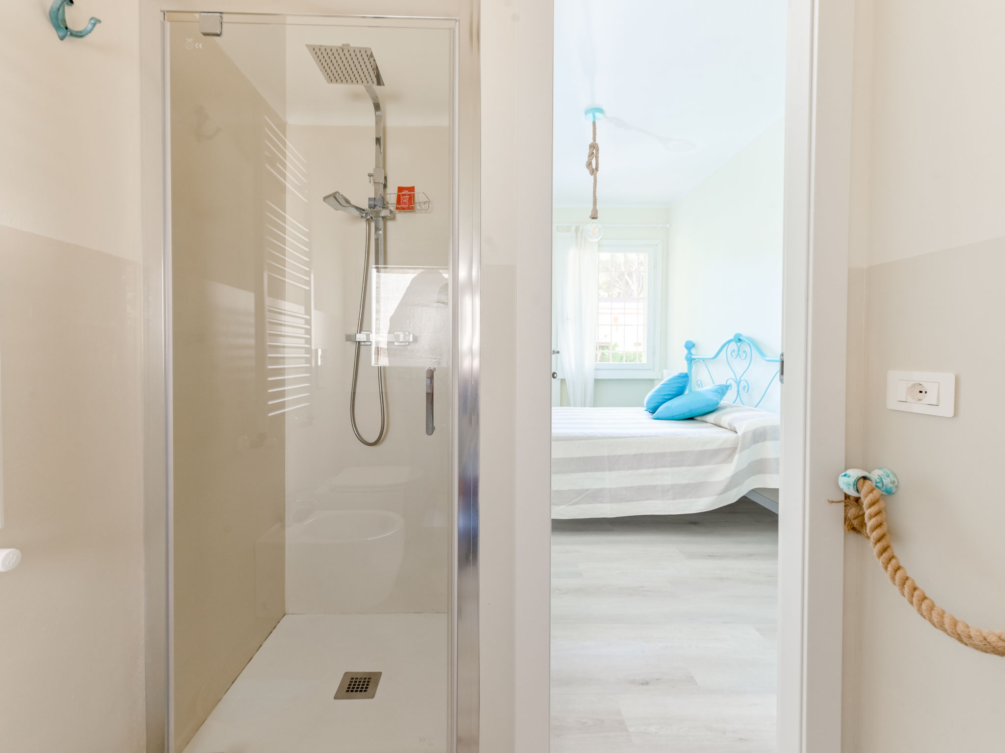 6-room villa 200 m2 on 2 levels. Modern and tasteful furnishings: open large living/dining room with sliding door with dining table and TV. Exit to the garden. 2 double bedrooms, each room with shower/bidet/WC. Open kitchen (oven, dishwasher, 4 induction hot plates, microwave, electric coffee machine). Exit to the garden. Upper floor: large, 1 double bedroom with shower/bidet/WC. Exit to the terrace. 1 double bedroom with shower/bidet/WC. 1 room with 1 bed, 1 pull-out bed and shower/bidet/WC. Air-conditioning, forced-air heating. Large balcony, terrace partly roofed, patio, lawn. Terrace furniture, barbecue. Facilities: washing machine, dryer. Internet (WiFi, free). Parking. Please note: maximum 1 pet/ dog allowed. Private entrance, fire extinguisher. IT053006C2BD5EBUWV
