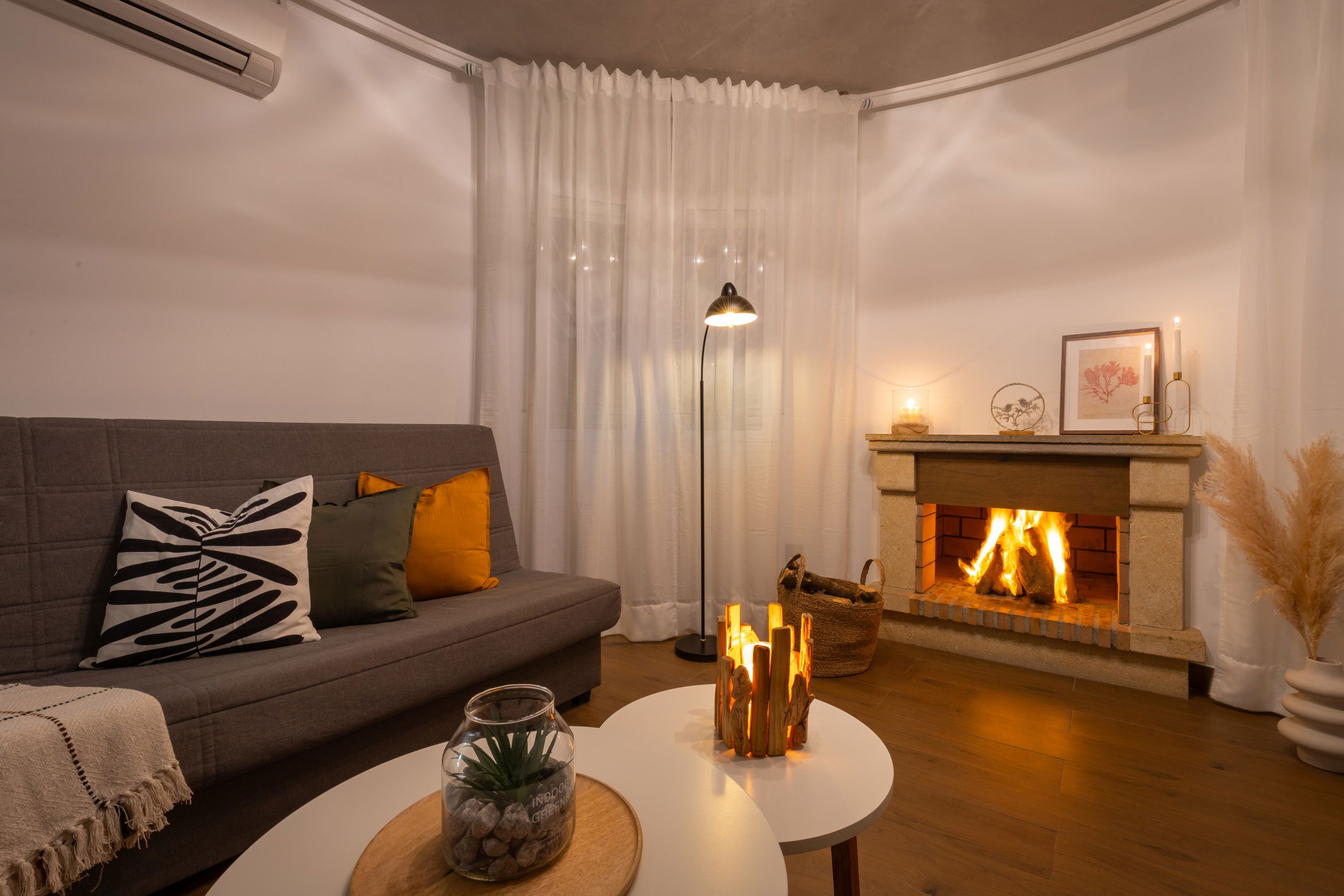 Upon entering the villa, you will be greeted by a spacious and bright living room, equipped with a cozy fireplace that creates a warm and welcoming atmosphere. The modern and elegant decoration is combined with amenities such as air conditioning, providing the perfect balance between style and comfort.