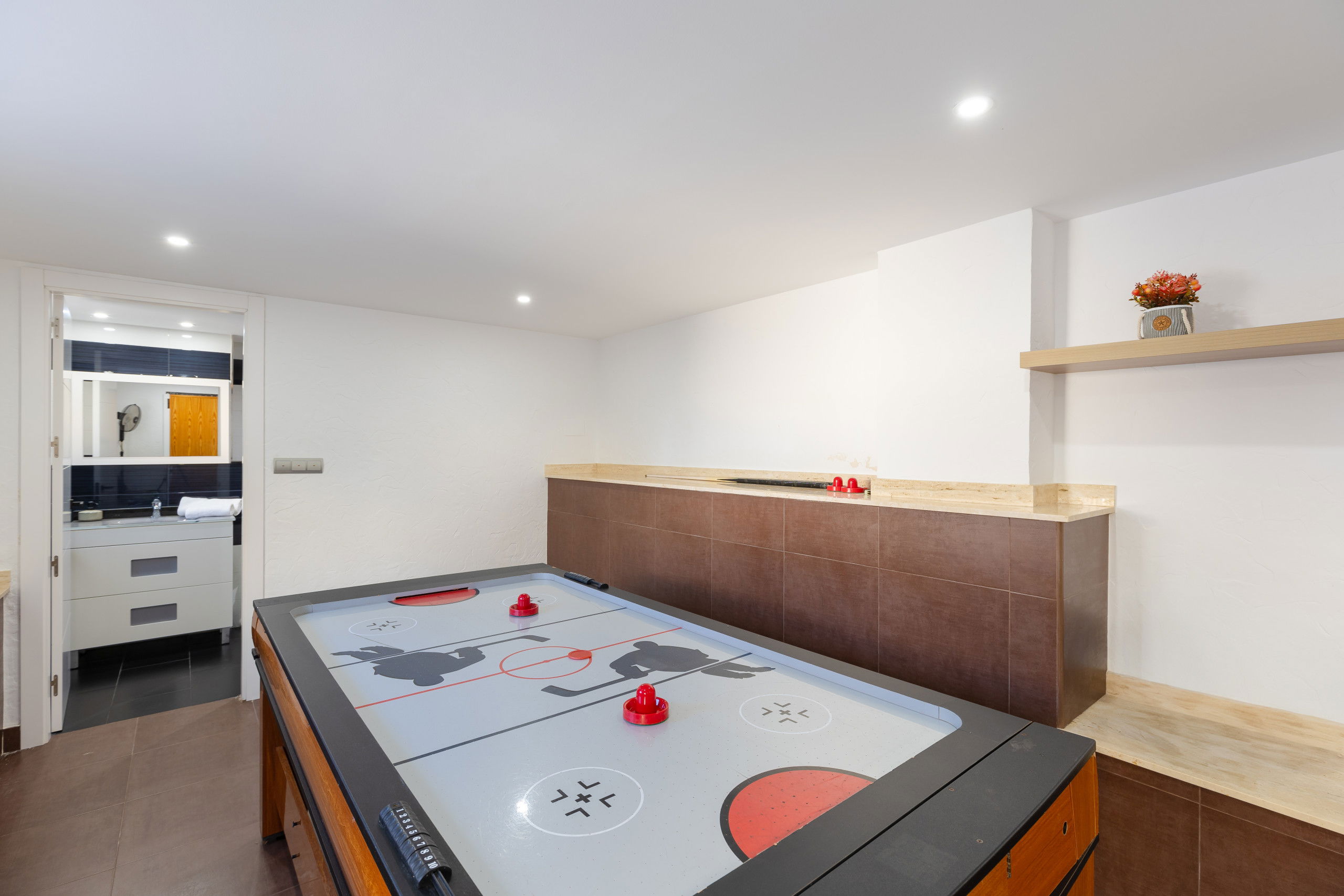 The fully equipped kitchen will allow you to prepare delicious meals that you can enjoy in the indoor dining room or outdoors in the barbecue area. After a tasty meal, you can relax and enjoy the sunny terrace next to the private pool. Evenings can be spent entertaining friends and family in the covered games area, which includes a pool table and other games.