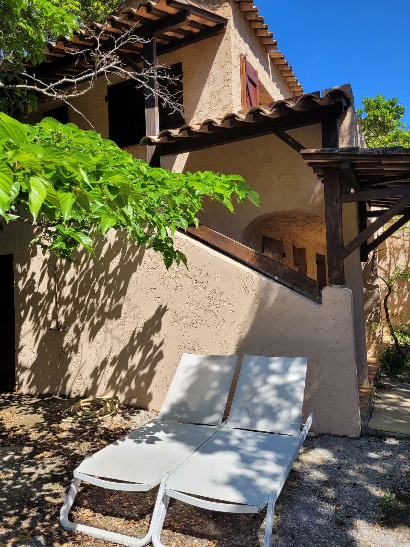 In a typically Mediterranean environment, this mazet with garden has two distinct levels. It offers on the ground floor two bedrooms with two single beds, a bathroom with toilet and upstairs accessible by an external staircase, a living room with convertible sofa and a kitchenette.