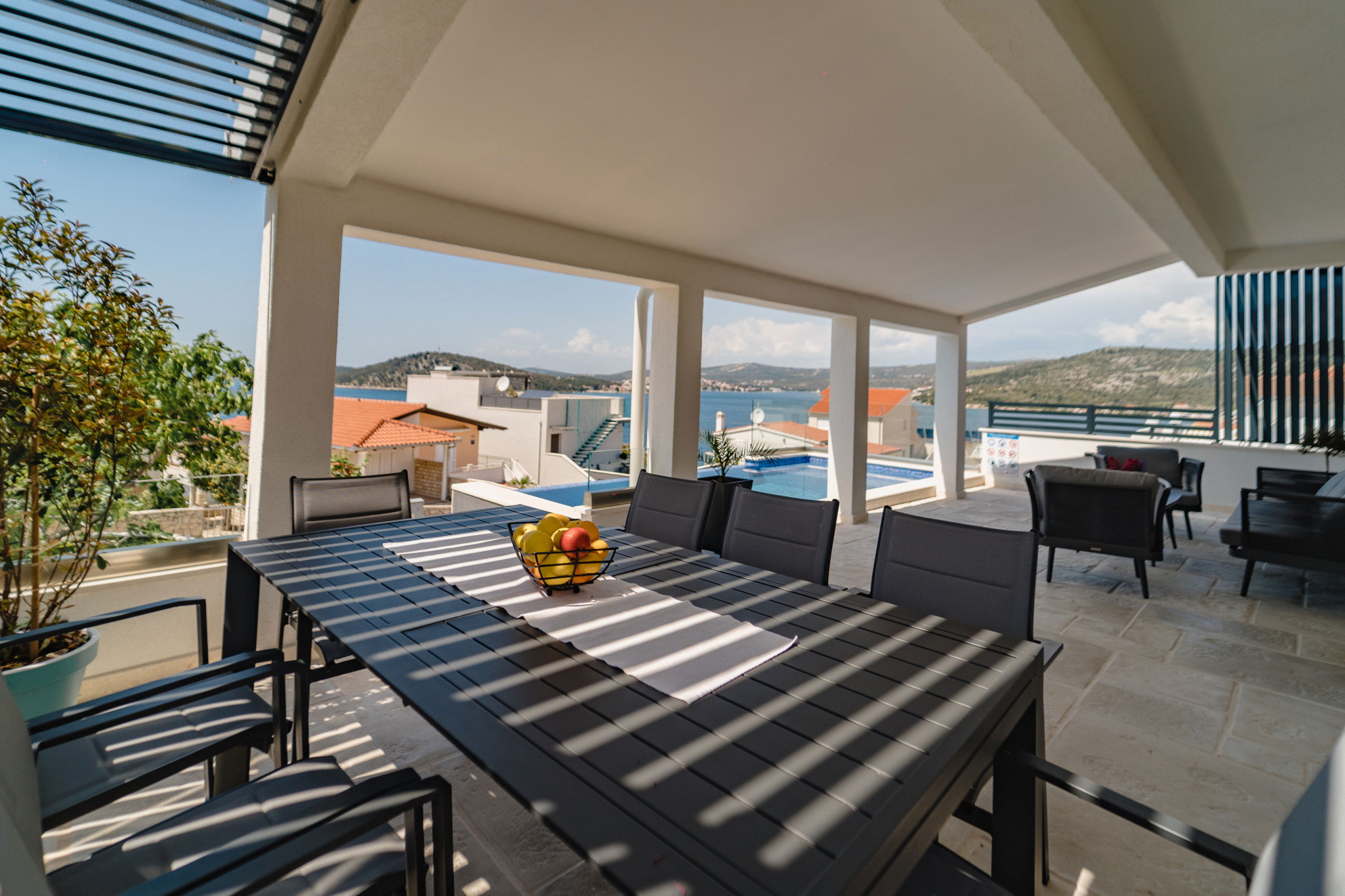 The villa is conveniently located near essential amenities, with a supermarket just 50 metres away and restaurants within 300 metres. The nearest rock beach is 70 kilometres distant, and Split Airport is approximately 30 kilometres away, providing good accessibility for travellers.