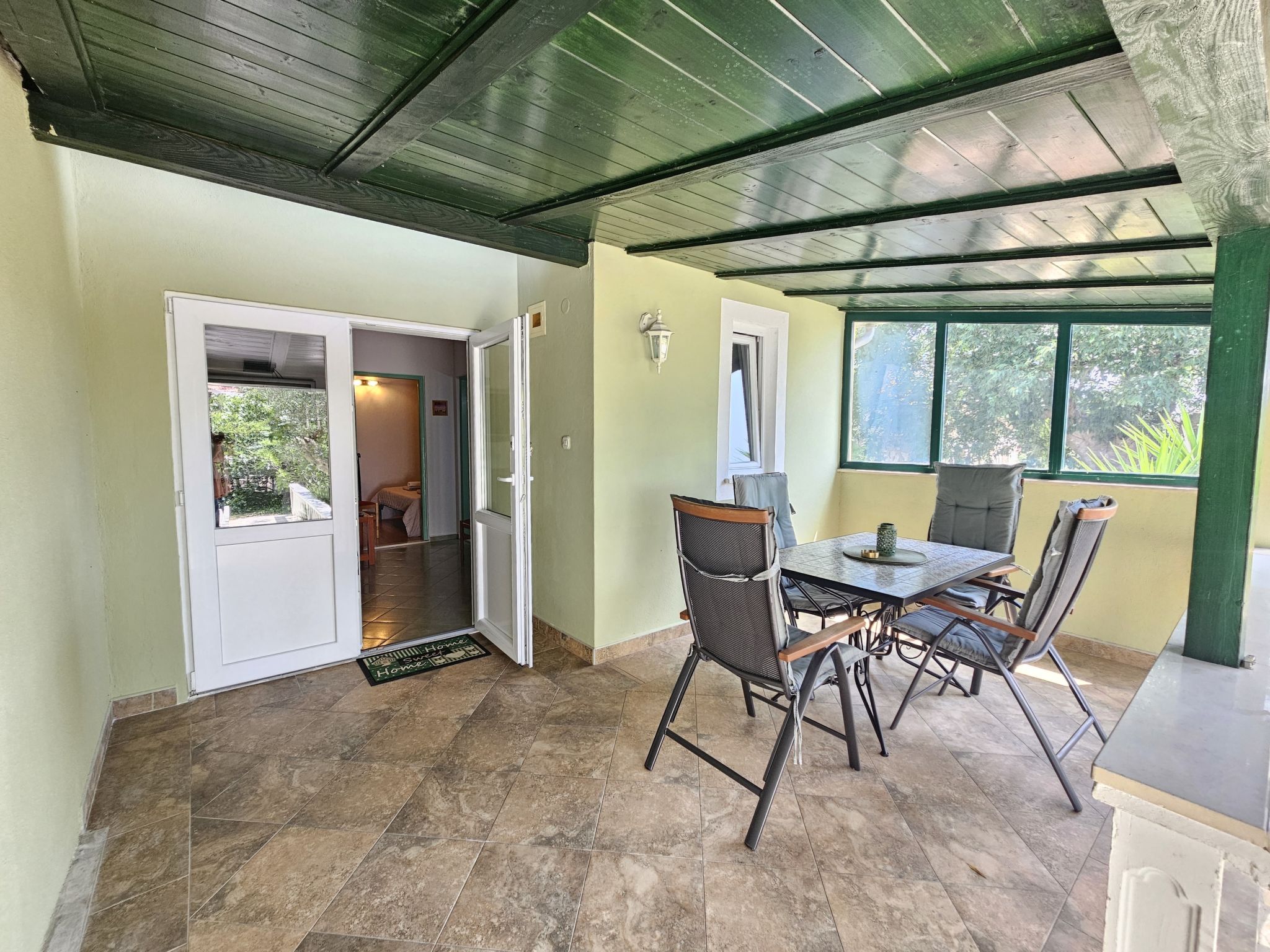 "Camp Marko", 2-room house 30 m2. Living/dining room with 1 sofabed, satellite TV and air conditioning. Exit to the terrace. 1 room with 1 bed and 1 double bed. Open kitchen (2 hot plates, oven, 2 gas rings, toaster, kettle, electric coffee machine). Shower/WC. No heating option. Terrace roofed. Terrace furniture. Facilities: Internet (WiFi, free). Maximum 1 pet/ dog allowed.
