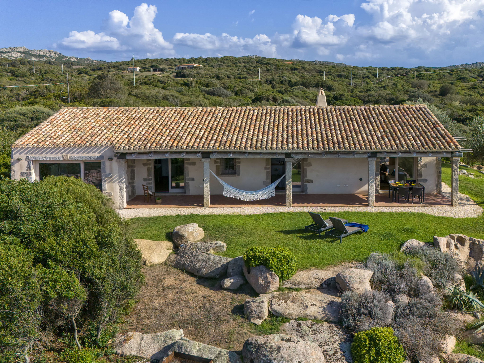 Cosy, comfortable country house "Stazzo Serafini", detached, built in 2016, surrounded by fields. On the outskirts, 3.5 km from the centre of Rena Majore, in a secluded, quiet, sunny position, 4 km from the sea, 4 km from the beach. Private: natural state property, lawn and wildlife garden, natural garden (fenced), parking at the house. Grocery 3.5 km, restaurant 3.5 km, bar 3.5 km, bus stop 3.5 km, sandy beach "Rena Majore" 4.5 km. Sports harbour 11 km. Nearby attractions: Santa Teresa di Gallura 10 km, Palau 30 km, Olbia 55 km, Porto Cervo 47 km. Please note: car recommended.