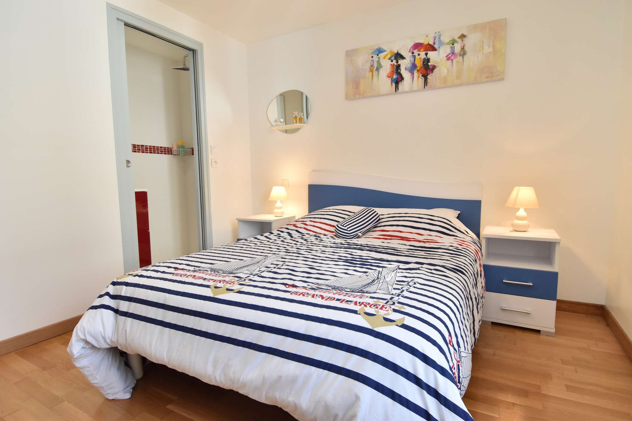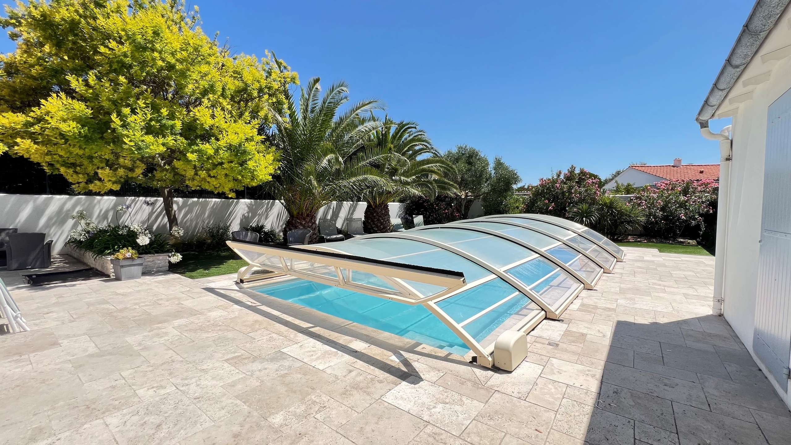 Superb single storey villa near the beach. Quiet wooded garden, with 9x4m heated swimming pool protected by a dome, deckchairs and garden furniture. Patio with an outdoor kitchen, barbecue and shower. The kitchen is open to the living room equipped with sofas, TV and WIFI. On the night side, you will find 4 bedrooms and their 4 private bathrooms (including 2 in the annex). PARKING - WIFI - END OF STAY CLEANING AND LINEN MANDATORY (Bed linen, hand towel, bath mat, tea towels)