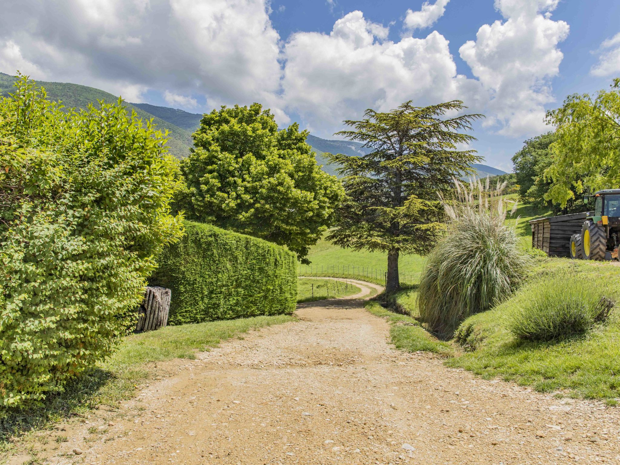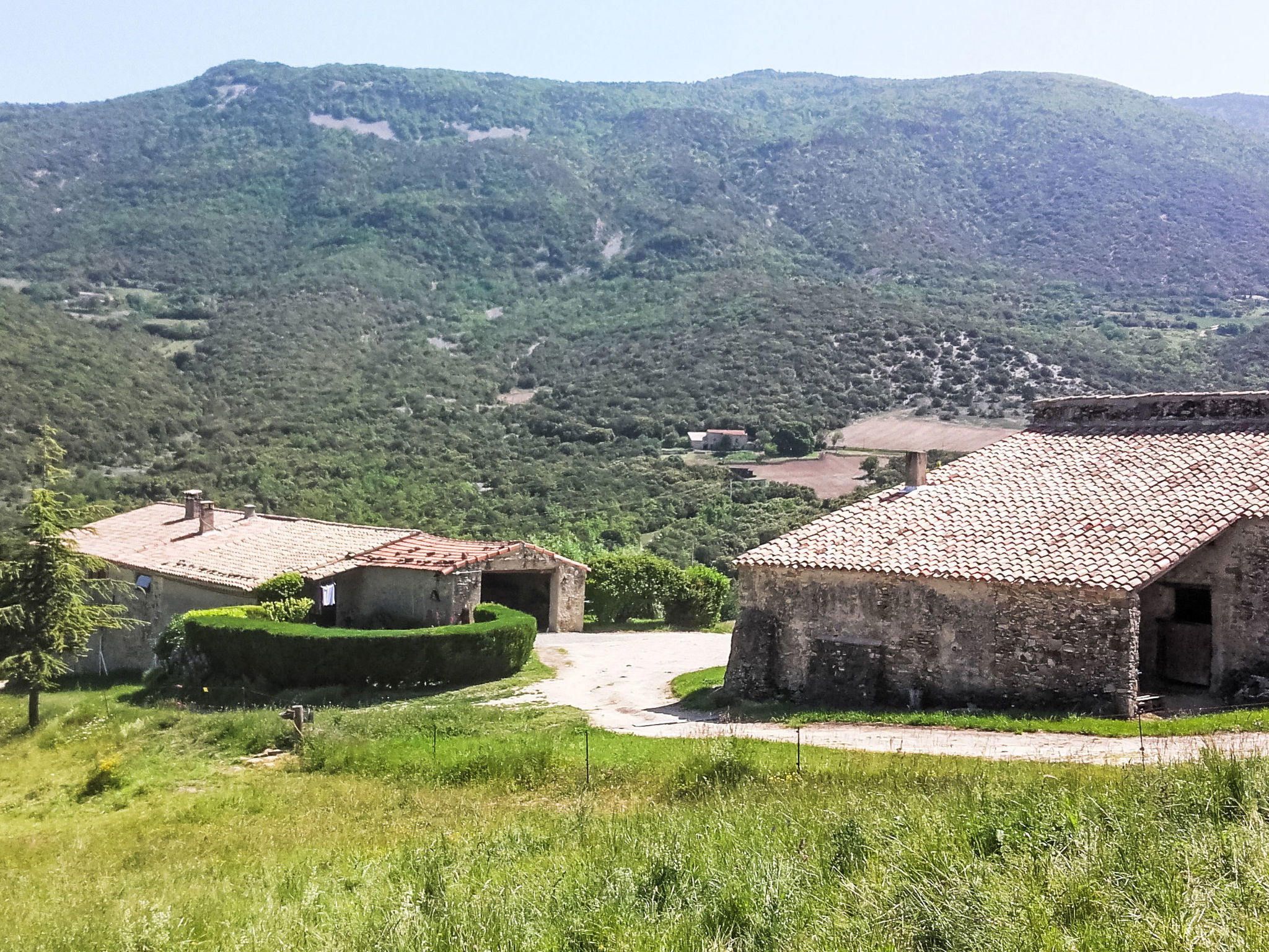 Protection dog on the property (in a fenced park) cosy large working farm "Le Grand Ubac", 500 m a.s.l., surrounded by meadows and fields. 3.3 km from the centre of Roche Saint-Secret, 10 km from the centre of Taulignan, 37 km from the centre of Montélimar, in a secluded, sunny, elevated position on a slope, 500 m from the edge of the forest, 3.5 km from the river, in the countryside. For shared use: natural state property 80 ha, lawn, pond. Private: garden 50 m2 lawn. 500 m long bumpy motor access (via unmade road). Grocery 3.3 km, supermarket 13 km, restaurant 3.3 km, bakery 3.3 km, bicycle rental 13 km, bus stop "Taulignan" 9 km, bathing lake "Taulignan" 10 km. Golf course (9 hole) 28 km, walking paths from the house 100 m. Nearby attractions: site d'escalade à proximité, Château et Village de Grignan 11 km, Nyons 16 km, Vaison-la-Romaine 26 km. Hiking paths: Parc Régional des baronnies Provençales 16 km, La Forêt de Saou 21 km, Le Mont Ventoux 39 km. On the estate animal husbandry. Please note: Owner lives in separate semi-detached house. The owner has a dog.