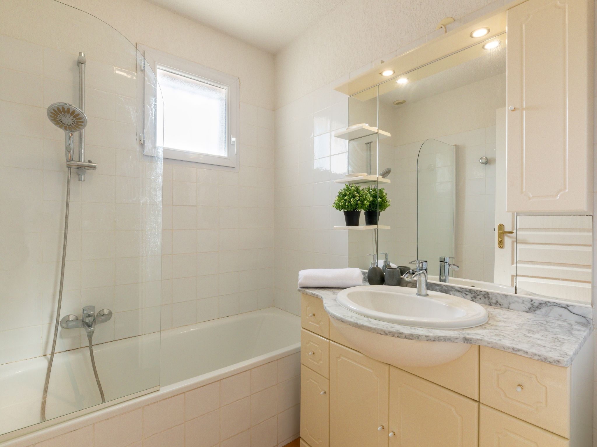 4-room villa 140 m2 on 2 levels, south facing position. Beautiful furnishings: dining room with TV (flat screen). Exit to the garden, to the terrace, to the swimming pool. Open kitchen (oven, dishwasher, 4 ceramic glass hob hotplates, toaster, kettle, microwave, electric coffee machine). Exit to the garden, to the terrace. Sep. WC. Upper floor: 1 room with 2 beds (90 cm, length 190 cm). 1 room with 1 french bed (160 cm, length 190 cm). 1 room with 1 french bed (160 cm, length 200 cm), shower. Exit to the balcony. Bathroom, sep. WC. Electric heating, air-conditioning. Terrace, garden 500 m2. Terrace furniture, deck chairs. Facilities: washing machine, children's high chair, baby cot for up to 2 year olds. Internet (WiFi, free). Parking. Please note: non-smokers only. Maximum 1 pet/ dog allowed. Smoke alarm. 83107000200QT