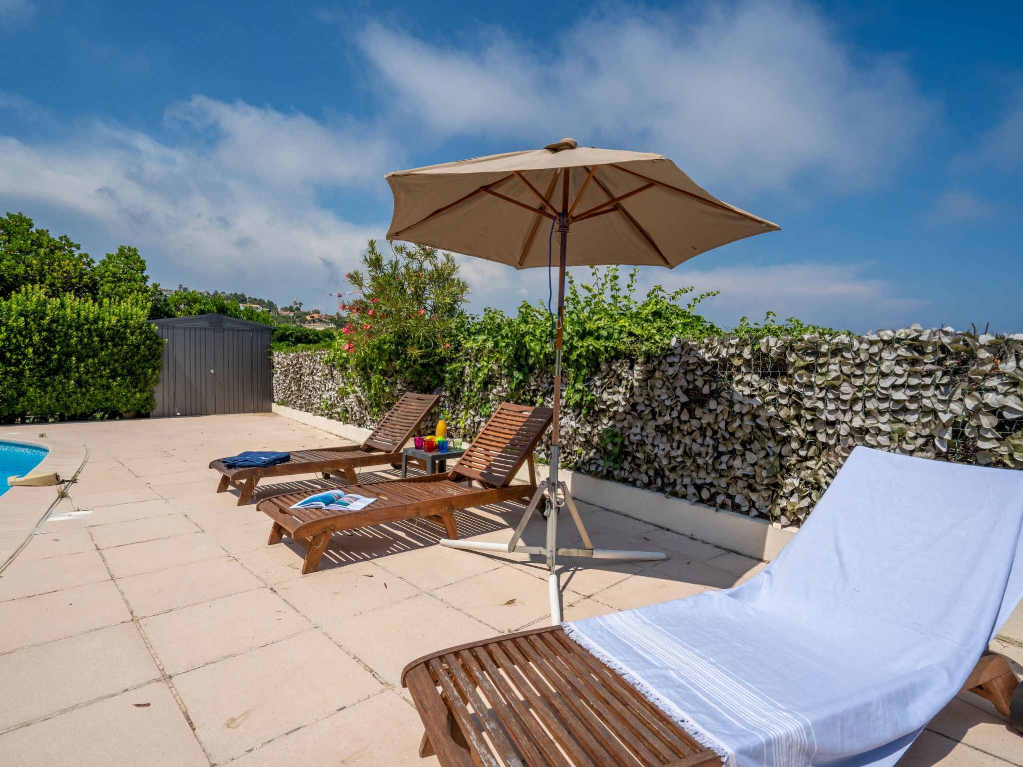 7-room villa 168 m2 on 3 levels, east facing position. Comfortable furnishings: dining room with TV, air conditioning and electric shutters. Exit to the terrace. 1 room with Dressing room with 1 french bed (1 x 160 cm, length 200 cm), air conditioning and electric shutters. Open kitchen (oven, dishwasher, 4 ceramic glass hob hotplates, toaster, kettle, microwave, freezer, electric coffee machine) with electric shutters. Exit to the terrace. Shower, sep. WC. Heating. On the lower ground floor: walk-through room with curtain, without window with 1 bed (90 cm, length 190 cm). 1 room with curtain, without window with 2 beds (90 cm, length 190 cm). 1 room with 1 french bed (1 x 160 cm, length 200 cm), air conditioning and electric shutters. Exit to the terrace. Shower/WC. Upper floor: entrance hall with air conditioning. Living room with TV, air conditioning and electric shutters. Exit to the balcony. 1 room with Dressing room with 1 french bed (1 x 140 cm, length 190 cm), air conditioning and electric shutters. 1 small room with 1 bed (80 cm, length 190 cm), air conditioning and electric shutters. 1 room with 1 french bed (1 x 160 cm, length 200 cm), air conditioning and electric shutters. Bath/shower, sep. WC. Large terrace. Terrace furniture, deck chairs (6). View of the sea. Facilities: washing machine, iron, children's high chair, baby cot, hair dryer. Internet (WiFi, free). Reserved parking (2 cars). Please note: suitable for families. Non-smokers only. 1 pet/ dog allowed. TV only FR. Smoke alarm. 83107000218NA