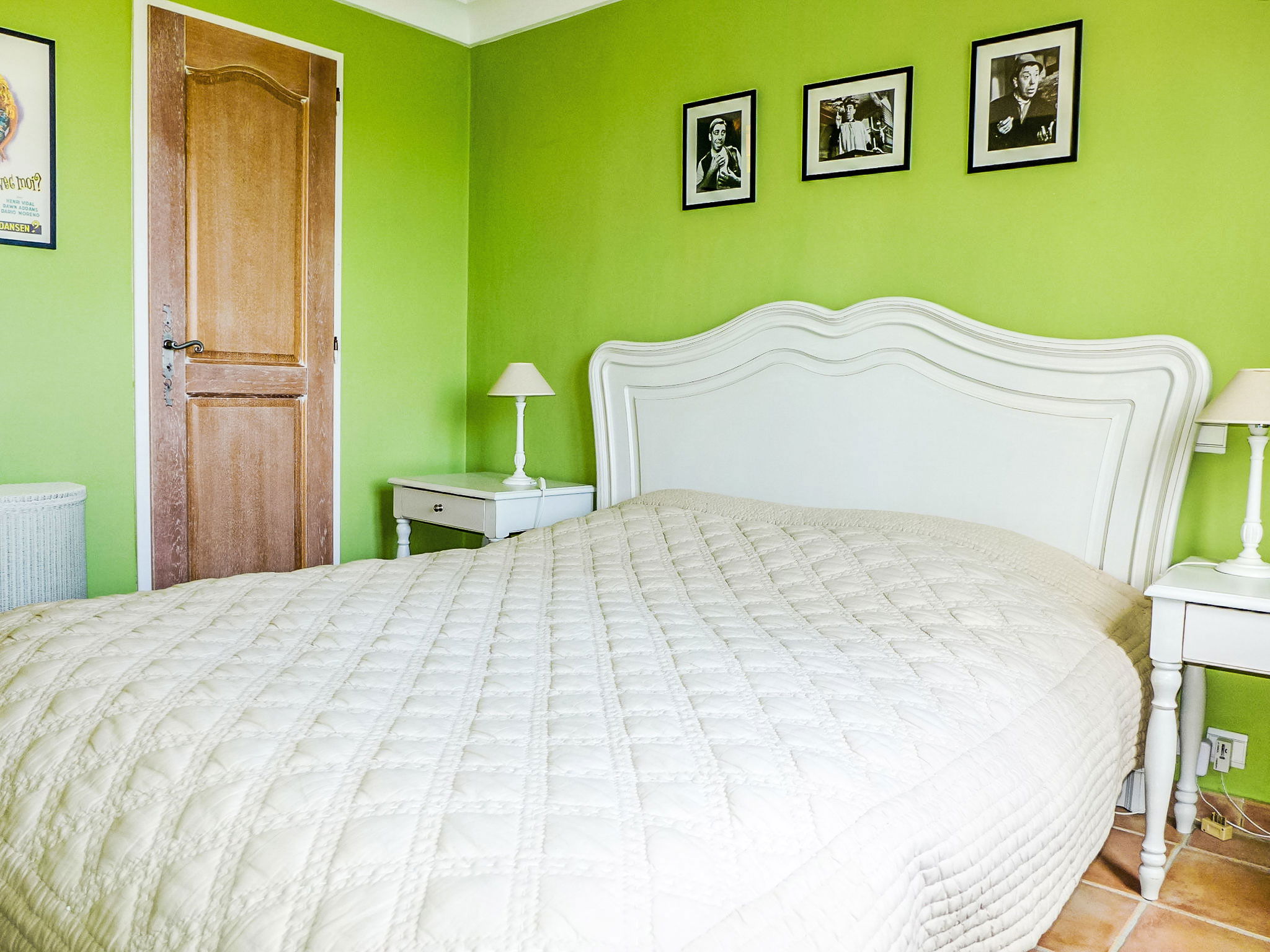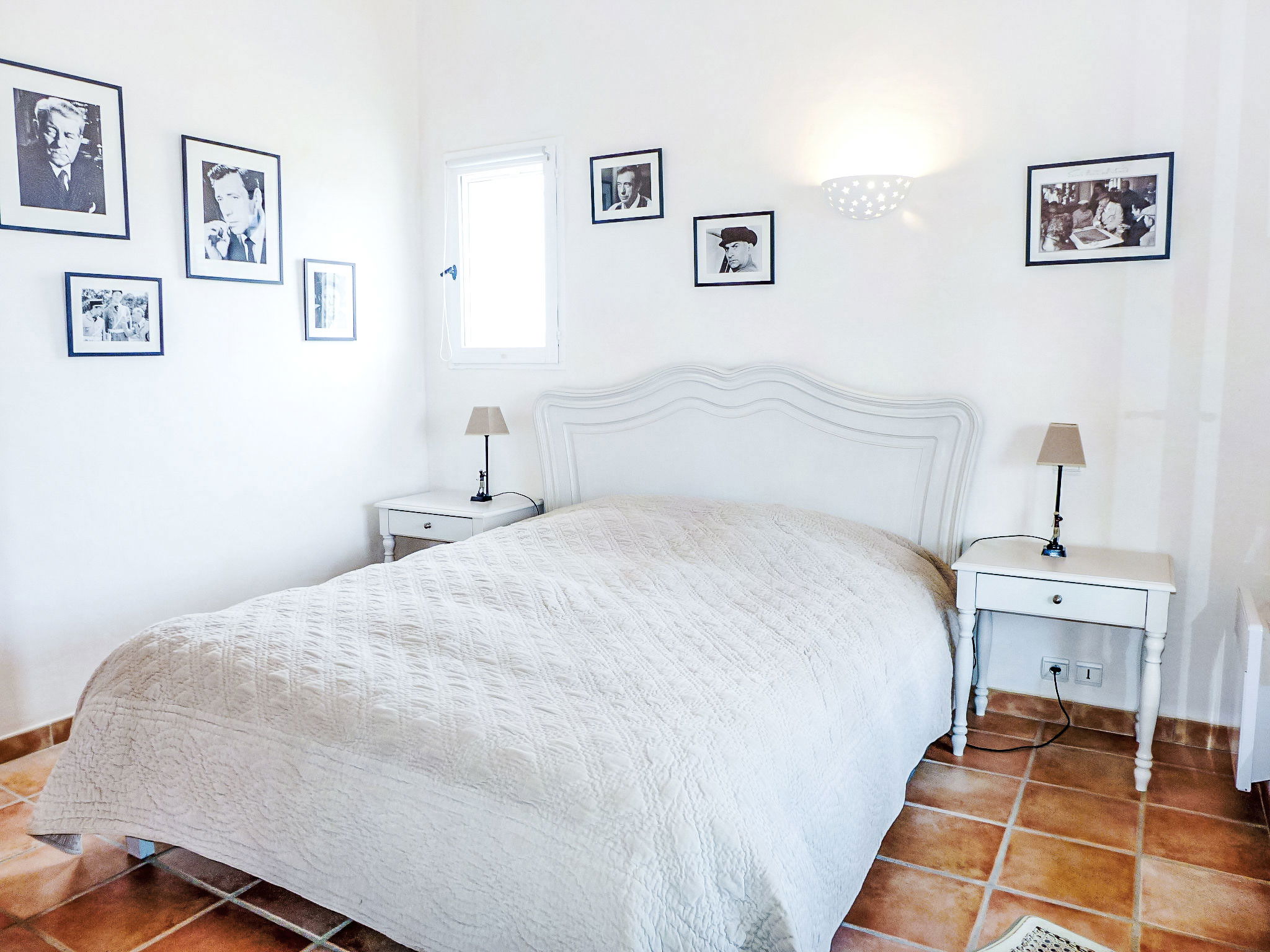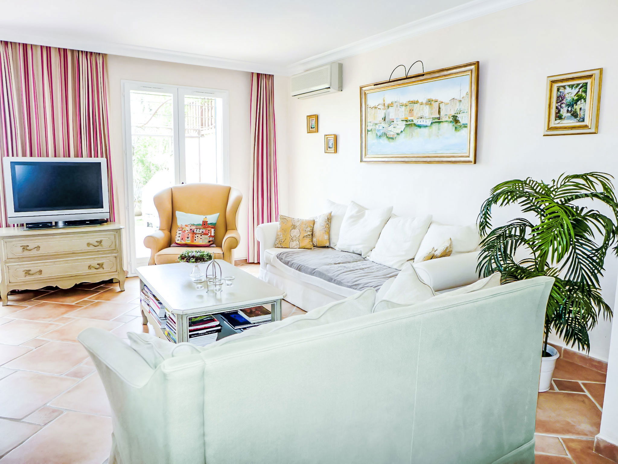 5-room terraced house 130 m2 on 3 levels. Comfortable and beautiful furnishings: living/dining room with TV (flat screen), air conditioning. Exit to the garden, to the terrace. Open kitchen (oven, dishwasher, 4 ceramic glass hob hotplates, toaster, kettle, microwave, freezer, electric coffee machine). Sep. WC. Upper floor: 1 room with 1 french bed (1 x 160 cm, length 200 cm), fan. Exit to the balcony. 1 room with 1 french bed (1 x 160 cm, length 200 cm), shower/WC. Bathroom. 2nd upper floor: 1 room with 1 french bed (1 x 160 cm, length 200 cm), shower/WC and fan. 1 room with 1 french bed (1 x 160 cm, length 200 cm), shower/WC. Exit to the terrace. Balcony 2 m2, terrace 9 m2, roofed terrace 18 m2, roofed, patio 40 m2. Terrace furniture, barbecue, deck chairs (2). View of the sea. Facilities: washing machine, iron, hair dryer. Internet (WiFi, free). Please note: 1 pet/ dog allowed. Smoke alarm. 83107000272MM