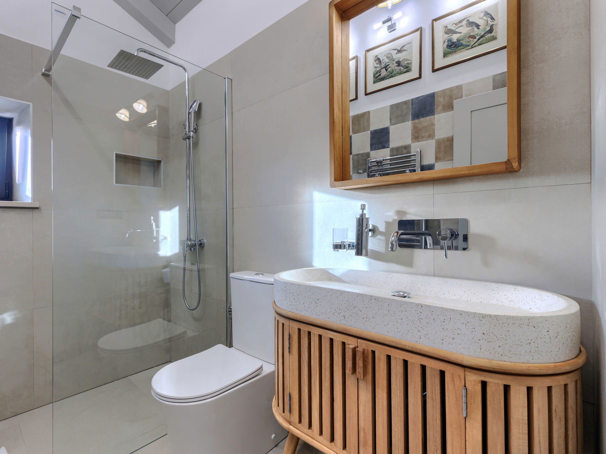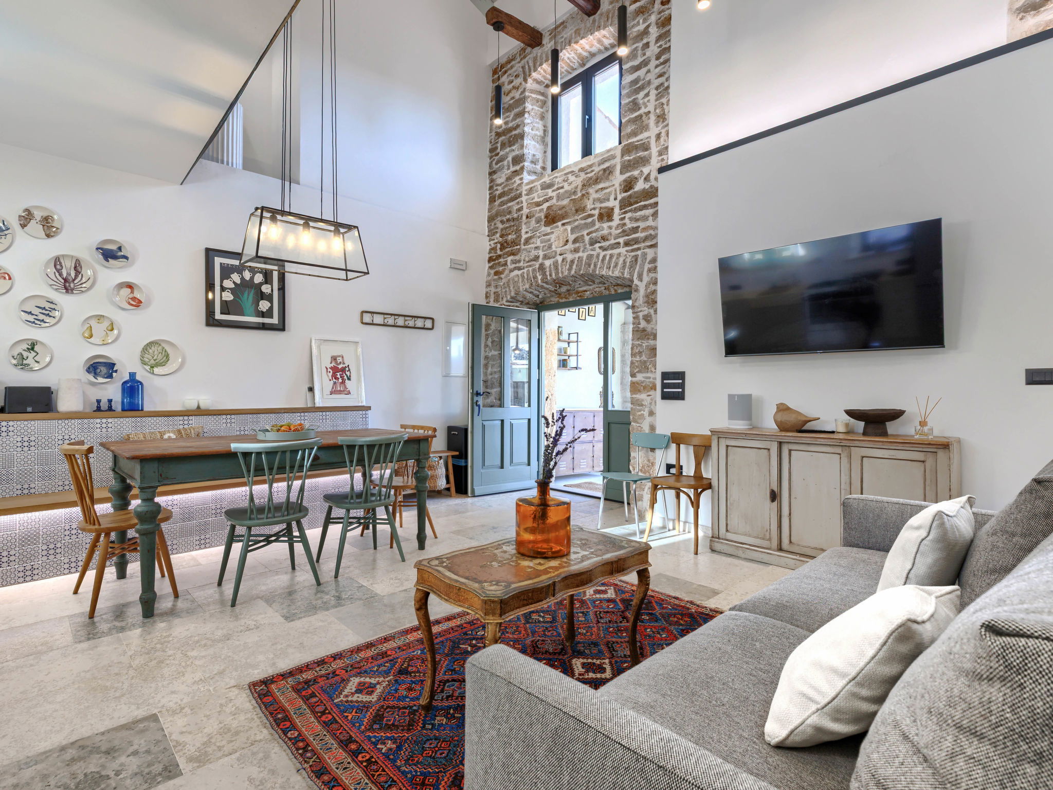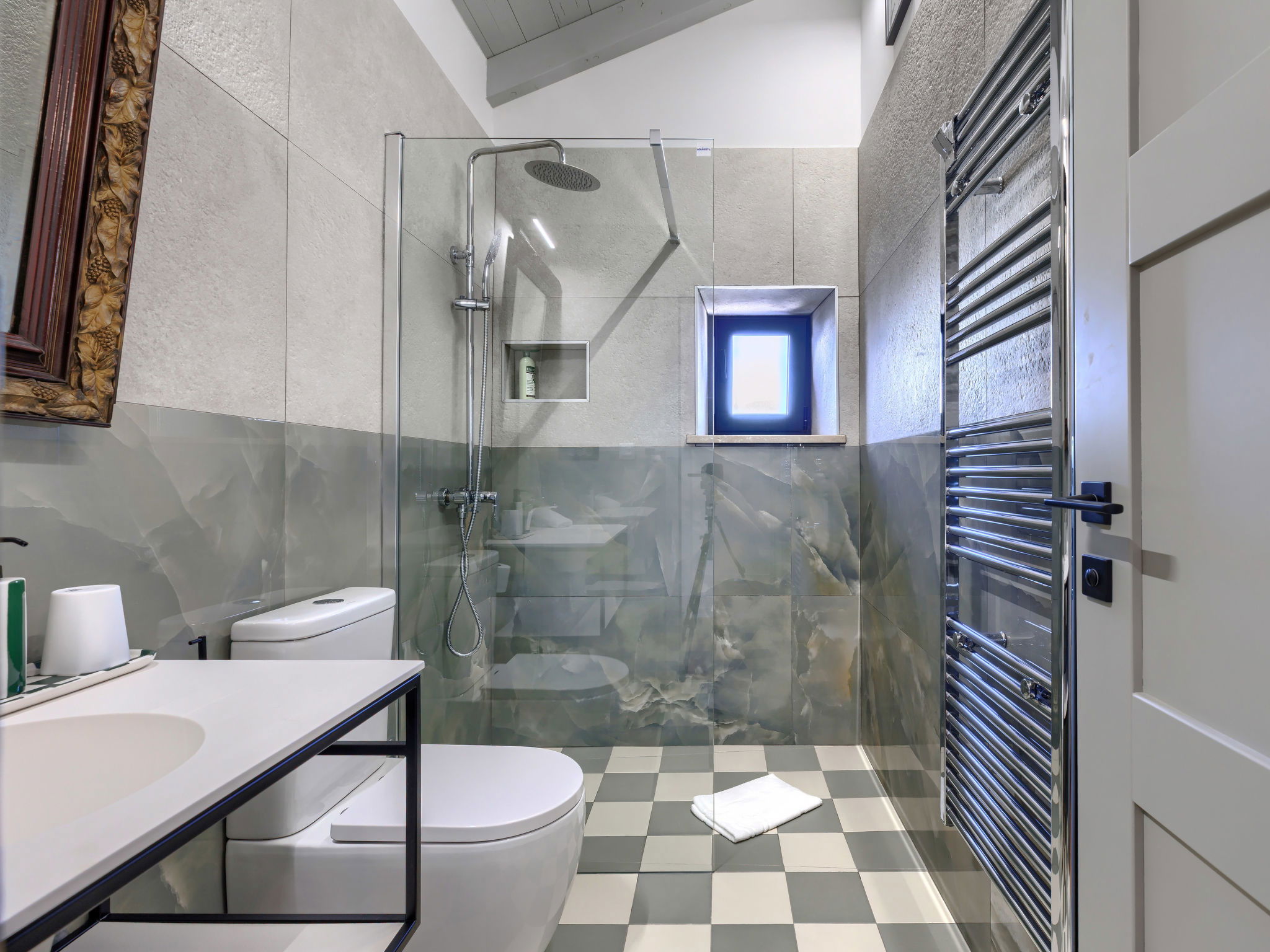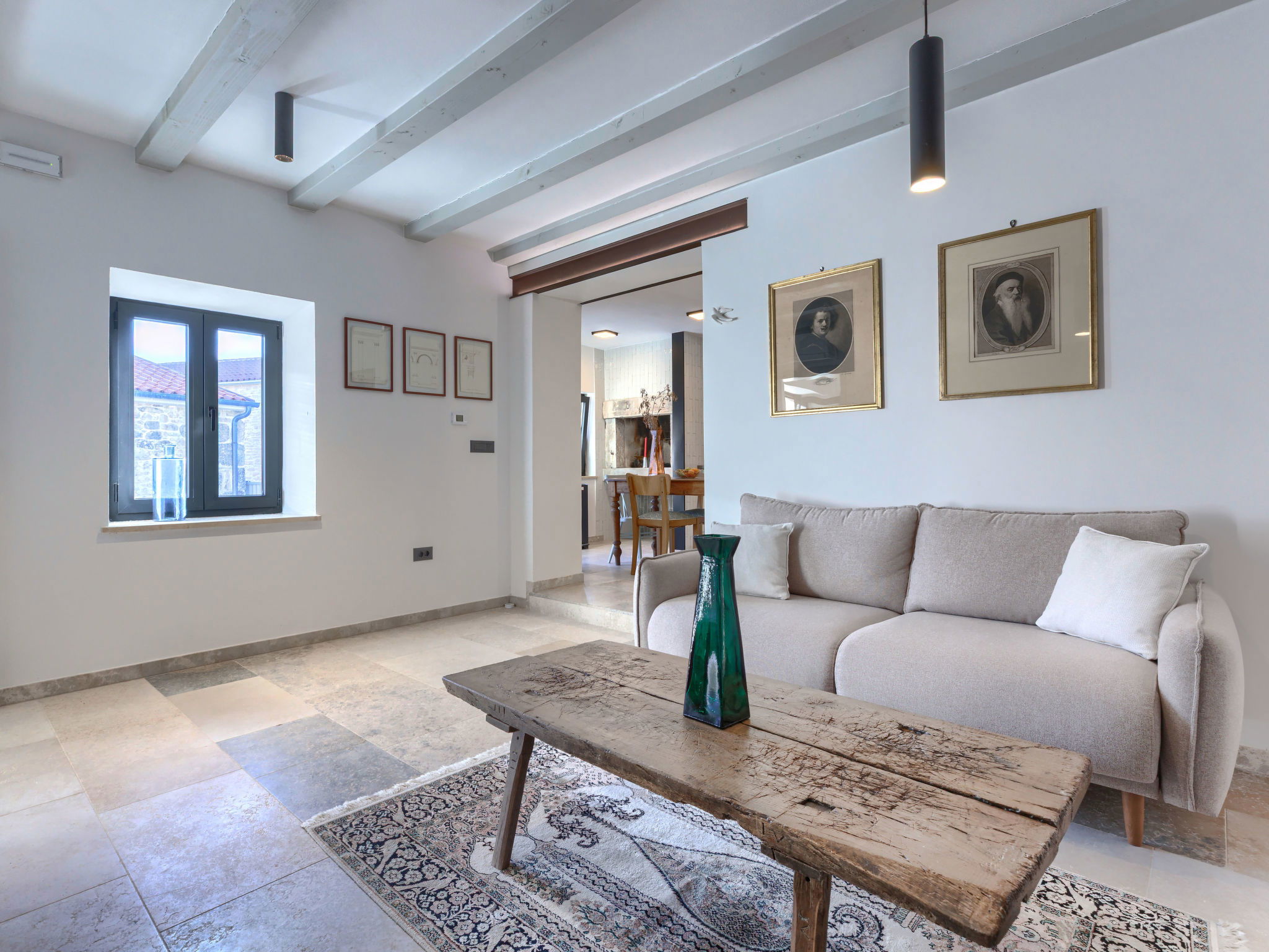 Very beautiful house "La Gioia", 2 storeys. In the hamlet Rudani 7 km from the centre of Žminj, 20 km from the sea. Private: property 750 m2 (fenced), swimming pool angular, heated (7 x 3 m, depth 140 cm, seasonal availability: 01.Apr. - 01.Nov.) with internal staircase and salt-electrolysis pool-cleaning system. Outdoor shower, terrace (20 m2), garden furniture, barbecue. In the house: internet access, air conditioning, washing machine. Parking at the house on the premises. E-charging station. Supermarket 9 km, café 7 km, internet café 7 km, bus stop 10 km, pebble beach 20 km. The owner does not accept any youth groups. Please note: airfield 32 km from the property. The unit consists of 2 houses rented as one unit. Heated swimming pool (extra). It is necessary to notify us 7 days in advance if you wish to have the pool heating turned on.