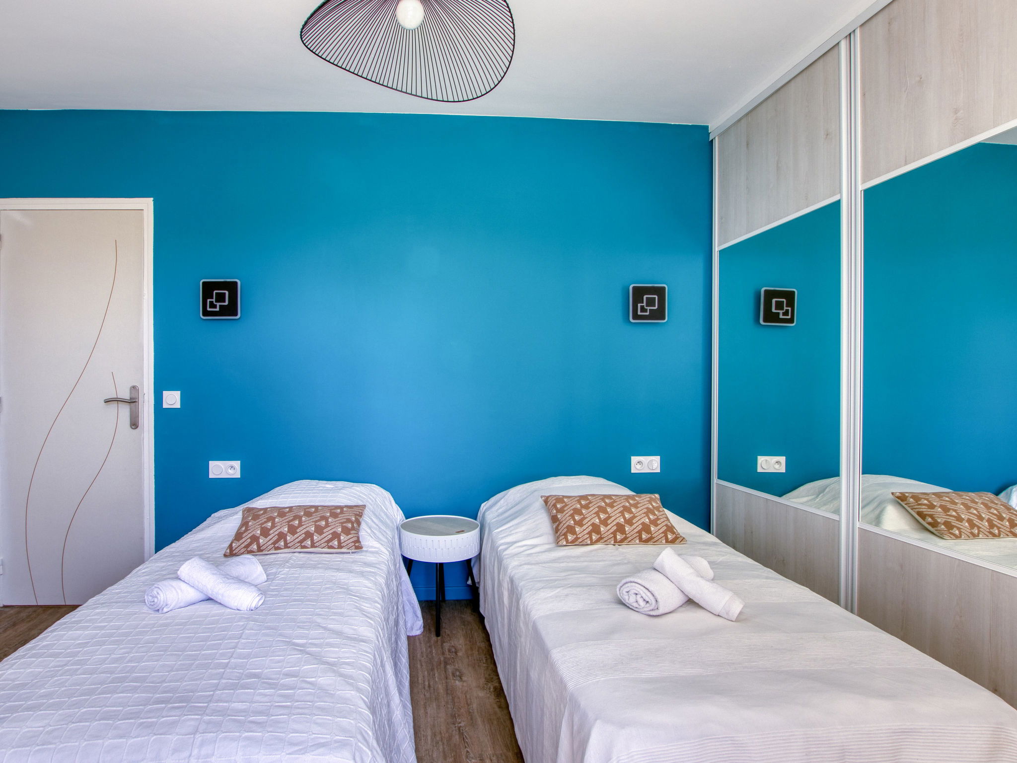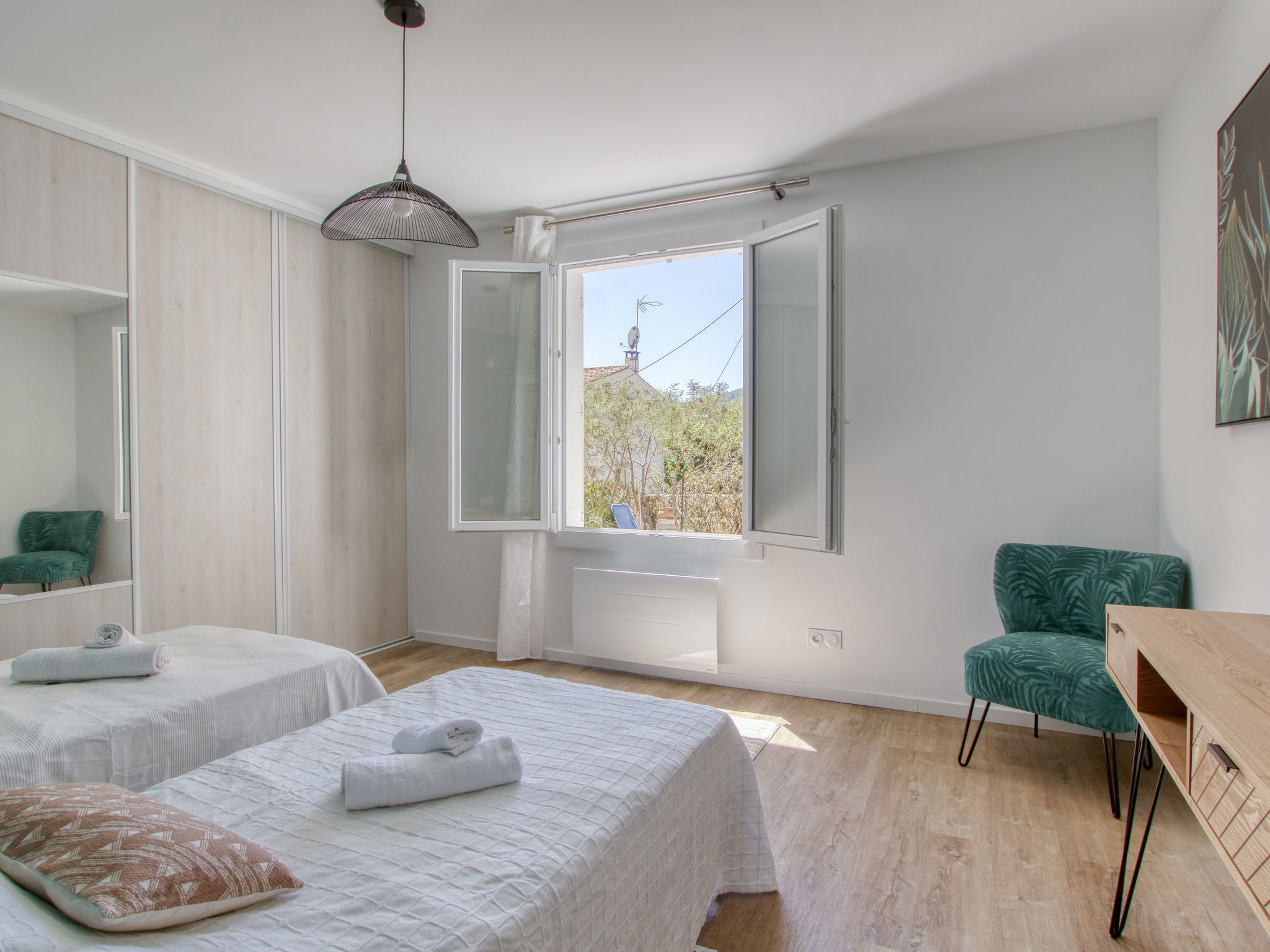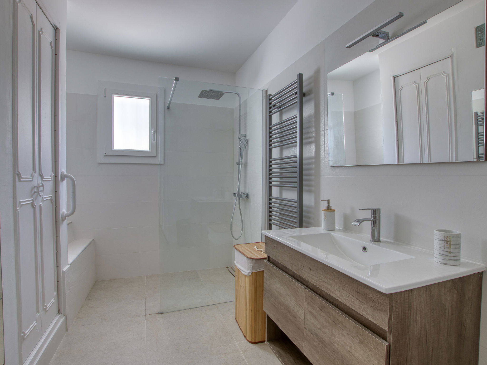 5-room villa 150 m2. Fully renovated in 2023, comfortable and beautiful furnishings: living/dining room with TV (flat screen), air conditioning. Exit to the terrace. 2 rooms, each room with 1 french bed (160 cm, length 200 cm). 2 rooms, each room with 2 beds (90 cm, length 190 cm). Kitchen (oven, dishwasher, 4 induction hot plates, toaster, kettle, microwave, freezer, electric coffee machine, Capsules for coffee machine (Senséo + filtre) extra). Exit to the terrace. Bathroom, shower, 3 sep. WC's. Electric heating, forced-air heating. Terrace 60 m2, south-west facing position, garden 115 m2. Terrace furniture, electric barbecue. Beautiful view of the sea. Facilities: washing machine, dryer. Internet (WiFi, free). Parking (3 cars). Please note: maximum 1 pet/ dog allowed. TV only FR. Smoke alarm. Offer by a private individual according to Art. 155, IV of CGI. 8311200127120