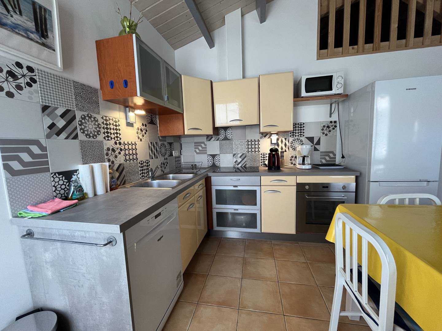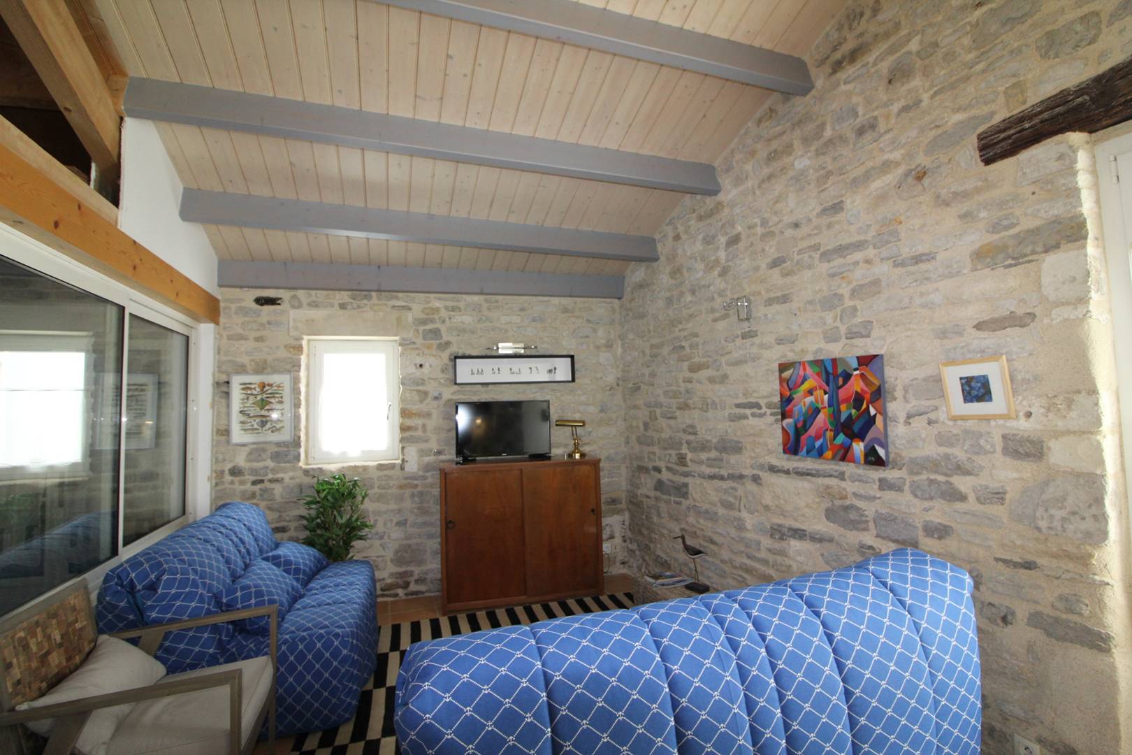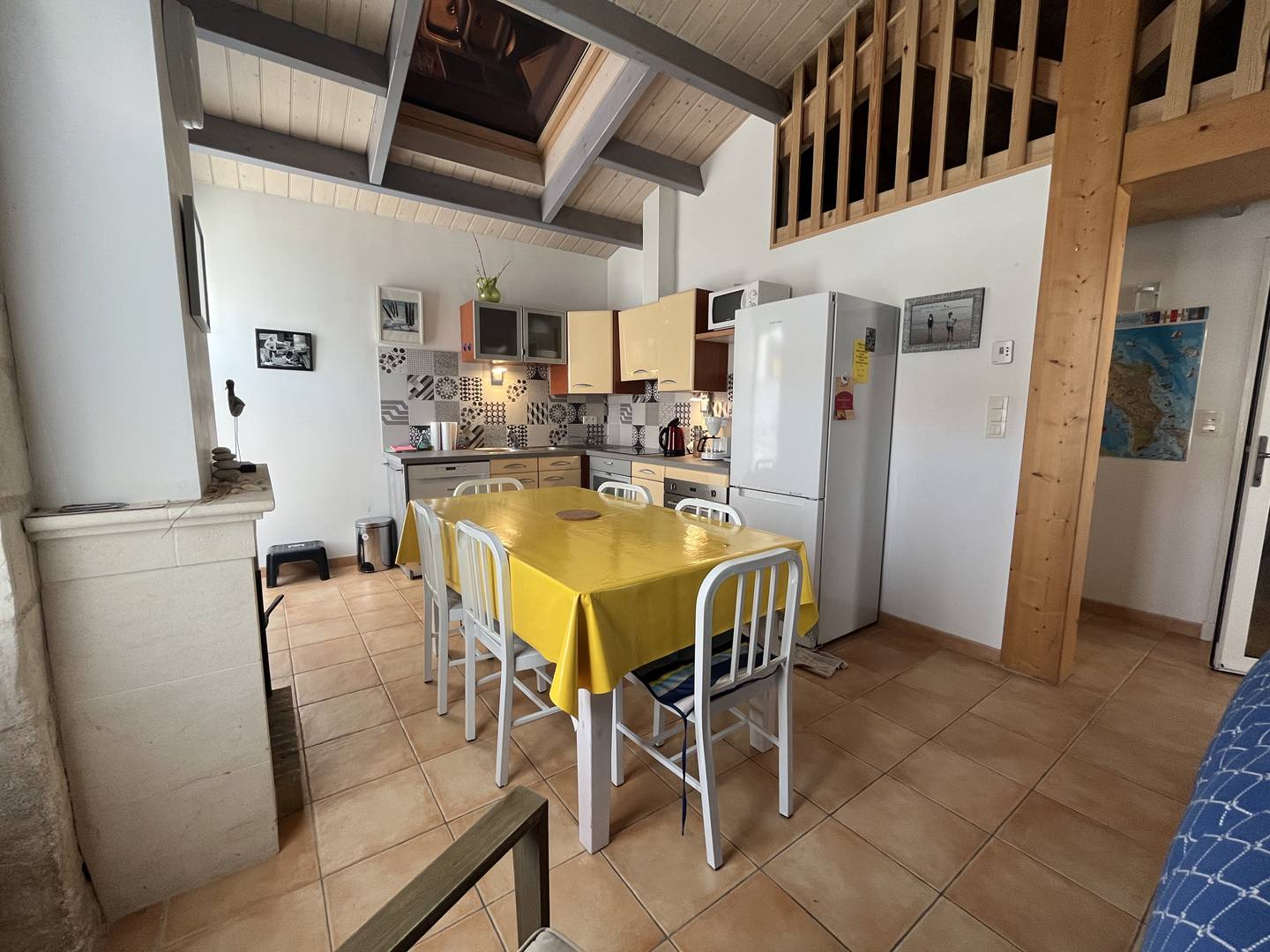 In the heart of the village, house without exterior consisting of a living room/kitchen equipped with sofa + sofa bed X 2 people, television, fridge/freezer, dishwasher, oven, microwave, induction hob, table, chairs, a bedroom with a double bed (140), a bathroom with WC and washing machine - drying clothes.