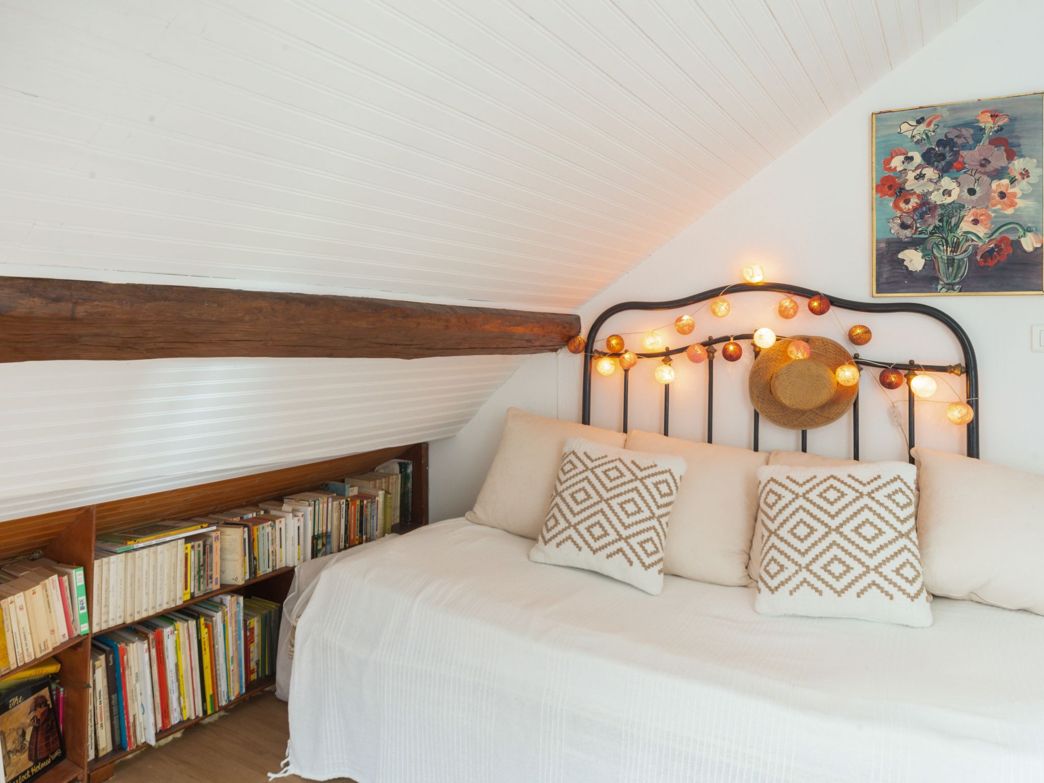 4-room house 150 m2 on 2 levels. Comfortable and antique furnishings: living/dining room with open-hearth fireplace and TV (flat screen). Kitchen (oven, dishwasher, 3 induction hot plates, toaster, kettle, microwave, electric coffee machine, Capsules for coffee machine (Nespresso) extra) with dining table. Shower/WC, sep. WC. Electric heating. Upper floor: 1 room with sloping ceilings with 1 double bed (2 x 85 cm, length 190 cm), separate WC. 1 room with sloping ceilings with 2 beds (90 cm, length 190 cm). 1 room with sloping ceilings with 1 double bed (2 x 90 cm, length 195 cm). Electric heating. Terrace furniture, barbecue, deck chairs (4). Facilities: washing machine, baby cot, hair dryer. Internet (WiFi, free). Parking (fenced). Please note: suitable for families. Maximum 2 pets/ dogs allowed. Smoke alarm.