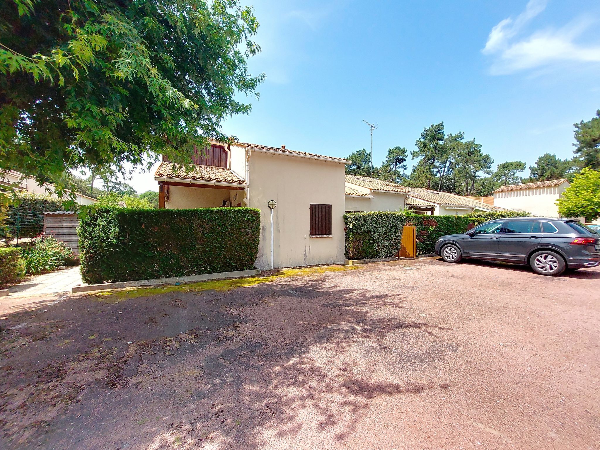 Complex of small terraced houses residence "Jardins de l'Océan". Outside the resort, 1.5 km from the centre of Saint Georges de Didonne, 150 m from the sea, 150 m from the beach. Parking. Shop 1.5 km, grocery 1.5 km, supermarket 2 km, restaurant 1.5 km, bakery 1.5 km, café 1.5 km, bus stop "Créa" 1.5 km, railway station "Royan" 5 km, sandy beach "Saint Georges de Didonne" 150 m, park "Luna Park (Juillet-Août)" 27 km, indoor swimming pool 5 km, thermal baths "Thalassothérapie Thalzur Royan" 8 km, lake D'Enlias - St Georges de didonne 3 km. Sports harbour 6 km, golf course (18 hole) 16 km, sailing school 1.6 km, tennis 2 km, minigolf 1 km, riding stable 17 km, cycle lane 150 m. Nearby attractions: Parc de l'Estuaire 4 km, Zoo de La Palmyre 23 km, Centre aquatique Iléo - Ile d'Oléron 53 km, Fort Boyard - Fouras 62 km, Aéroport La Rochelle - Ile de Ré 85 km, Aéroport Bordeaux - Merignac 126 km. Please note: the keys‘ handover takes place by the agency in Vaux sur Mer, 8 km. Additional accommodations can be booked. Food store 300 m (July and August).