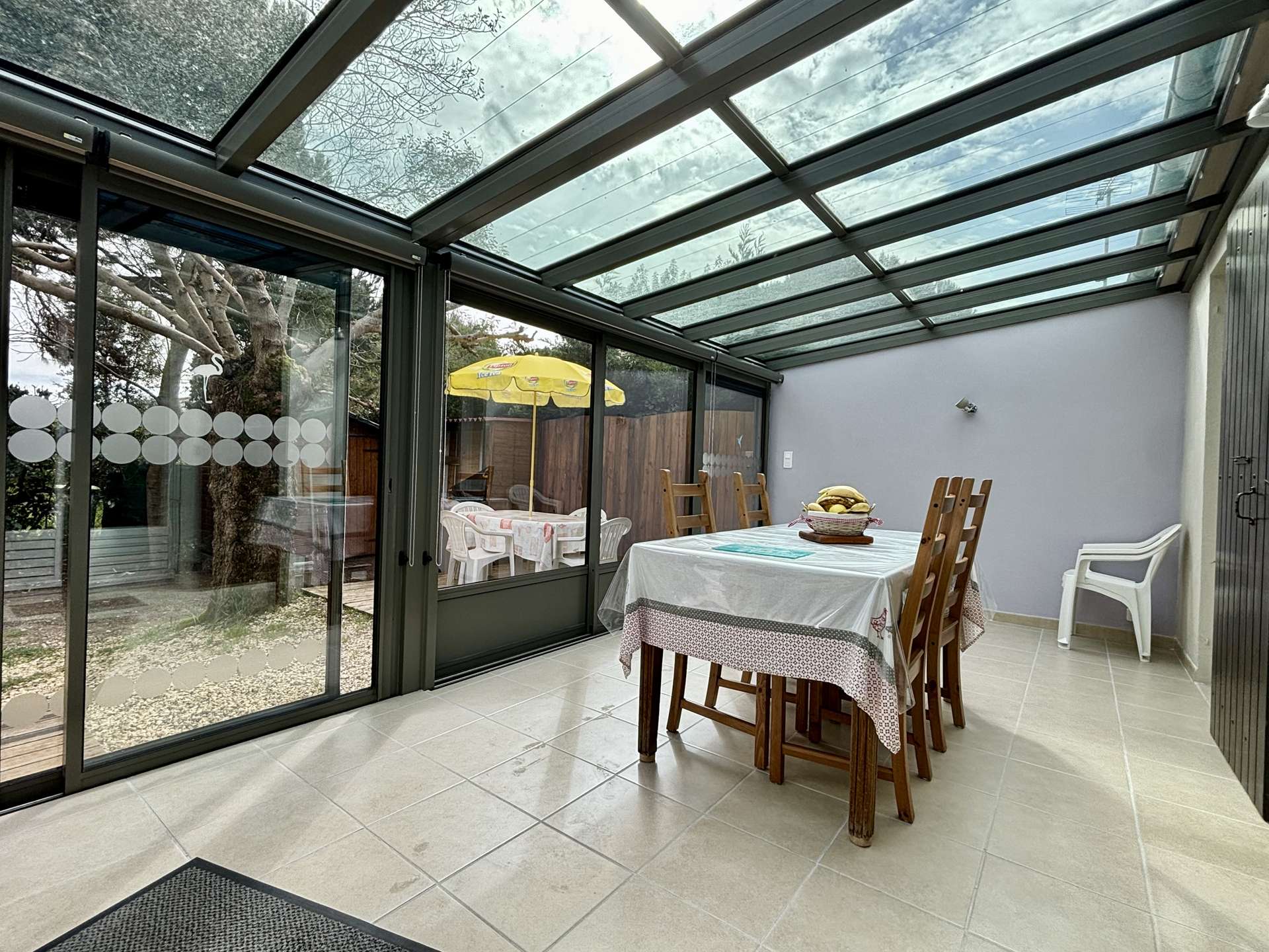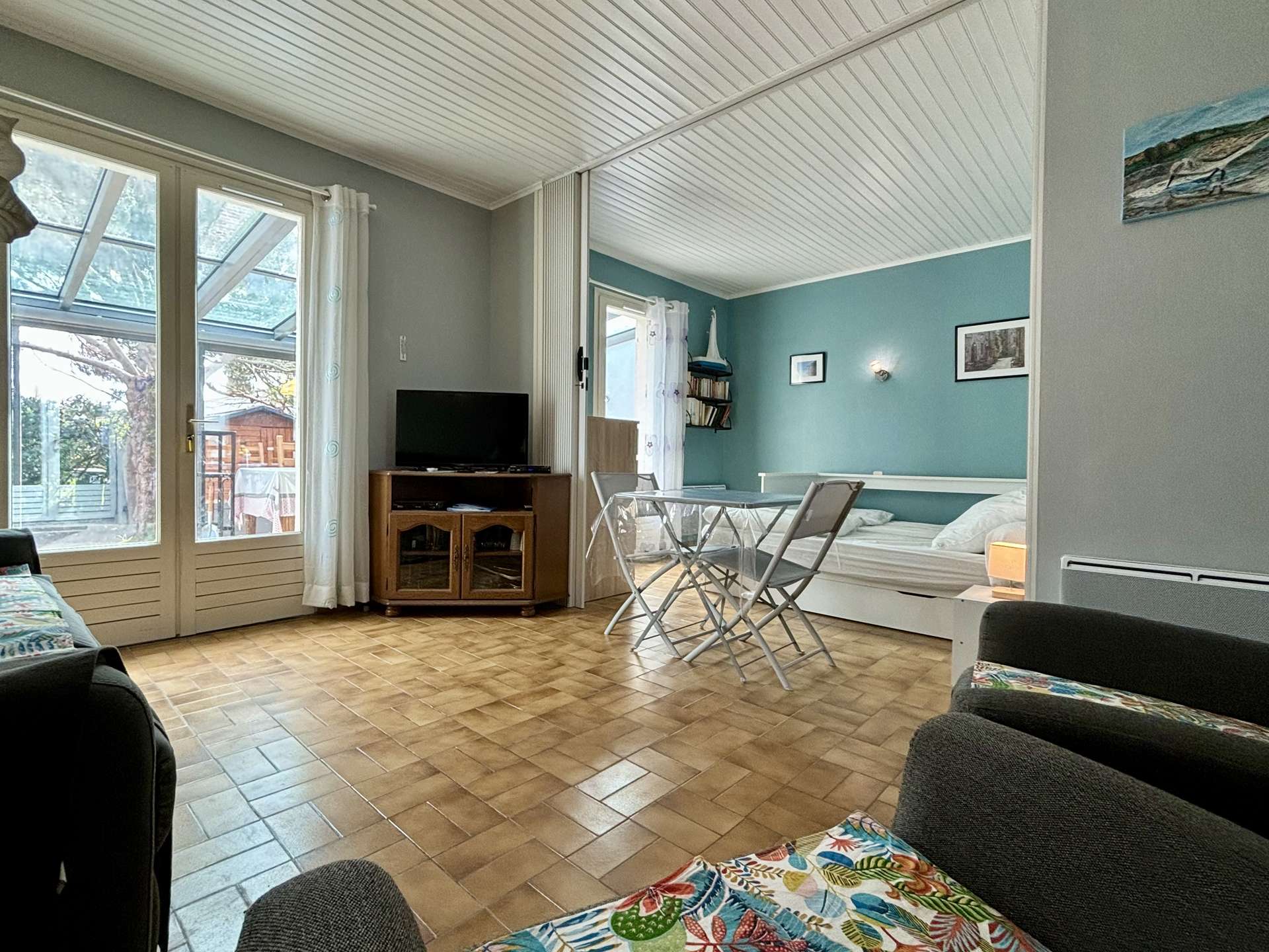 Maison de vacances située à proximité immédiate des pistes cyclables et de la plage des Sables-Vignier se composant d'une pièce de vie avec coin salon, télévision écran plat/WIFI, d'une cuisine entièrement équipée et aménagée, d'un coin nuit avec lit gigogne deux couchages (90), d'une véranda lumineuse avec salle à manger, d'une chambre avec deux couchages (140) avec accès sur l'extérieur et d'une salle d'eau avec douche desservant WC indépendant. En extérieur, jardin entièrement clos, barbecue en dur, mobilier de jardin, parasol.