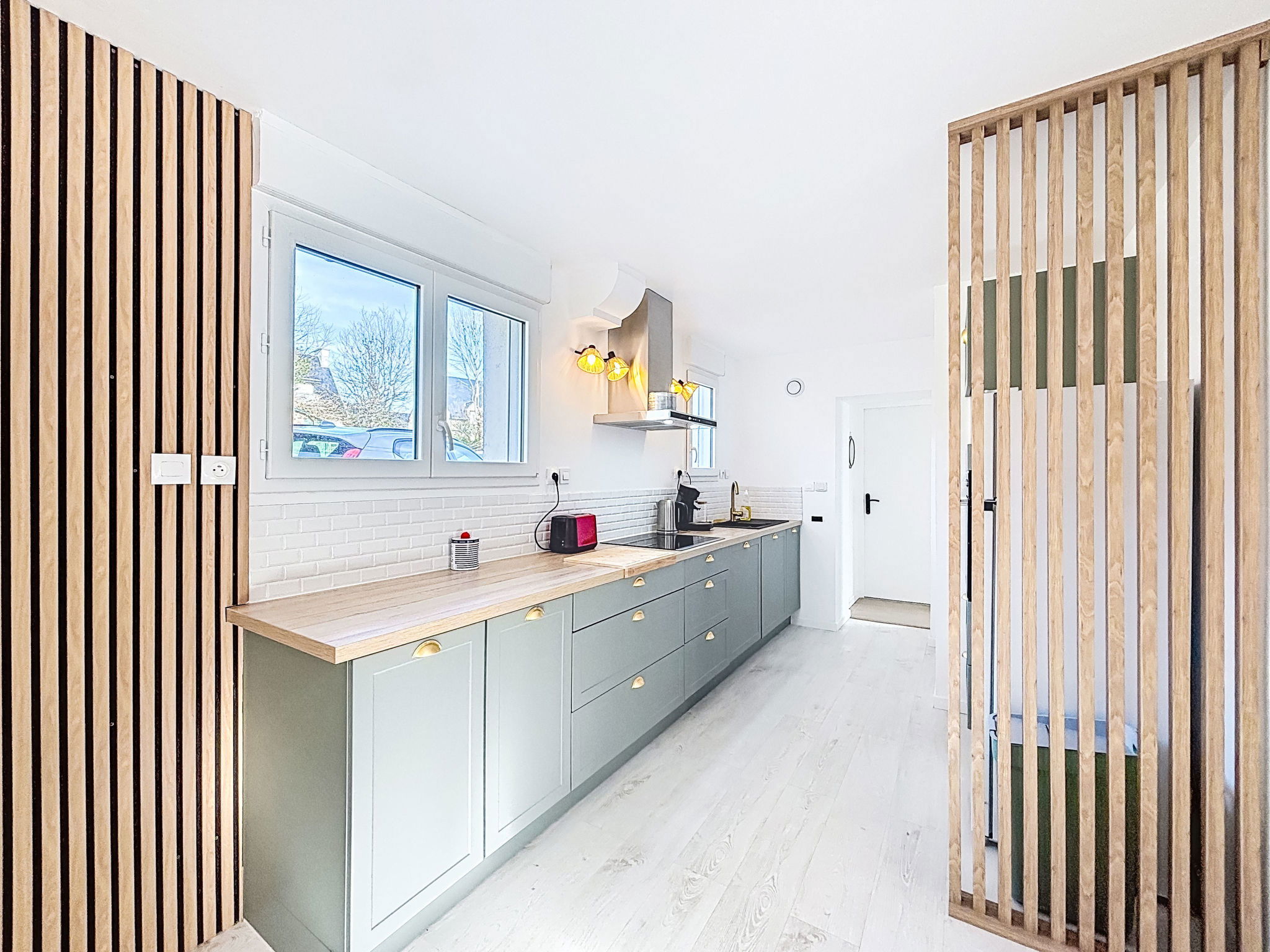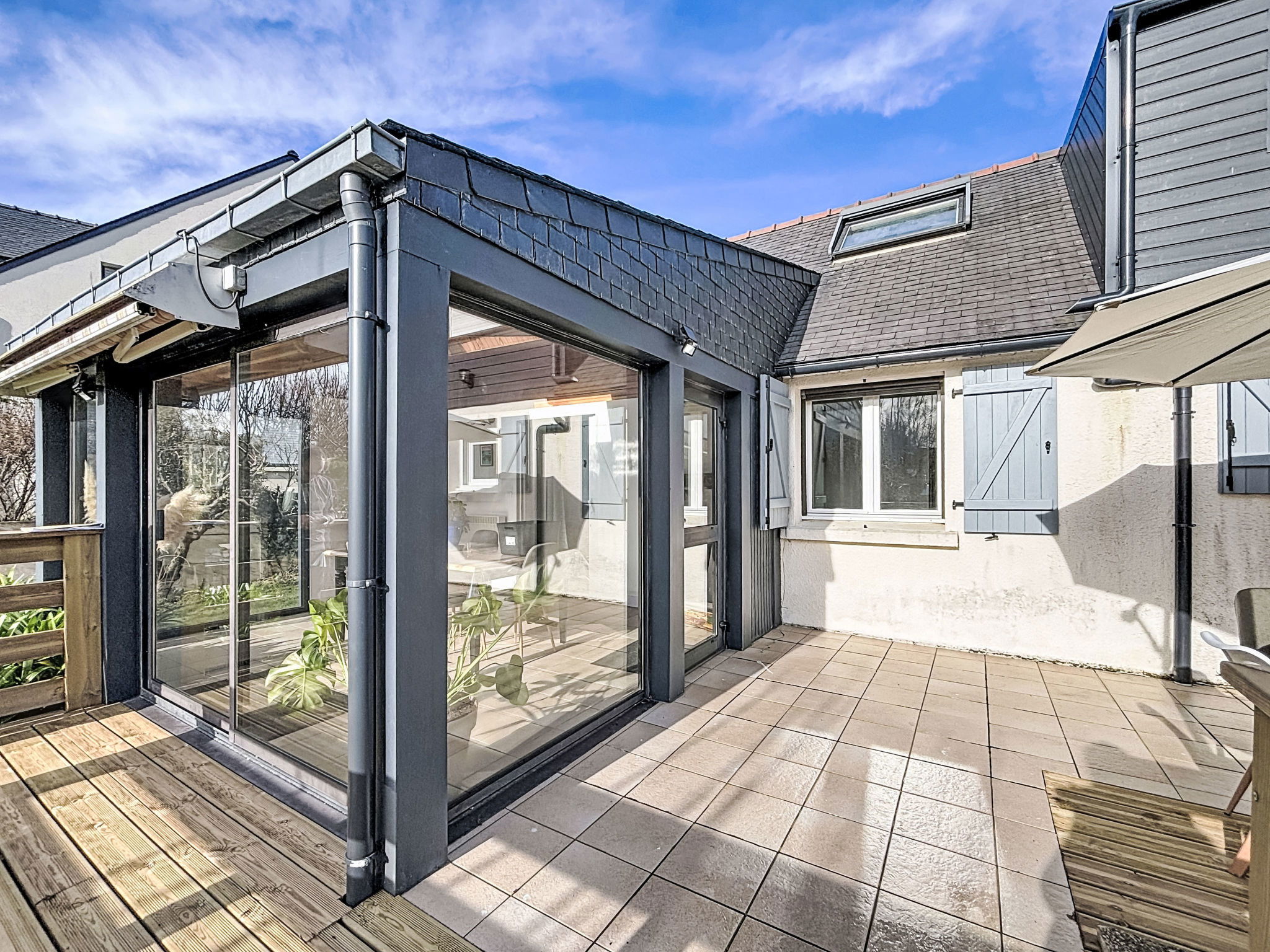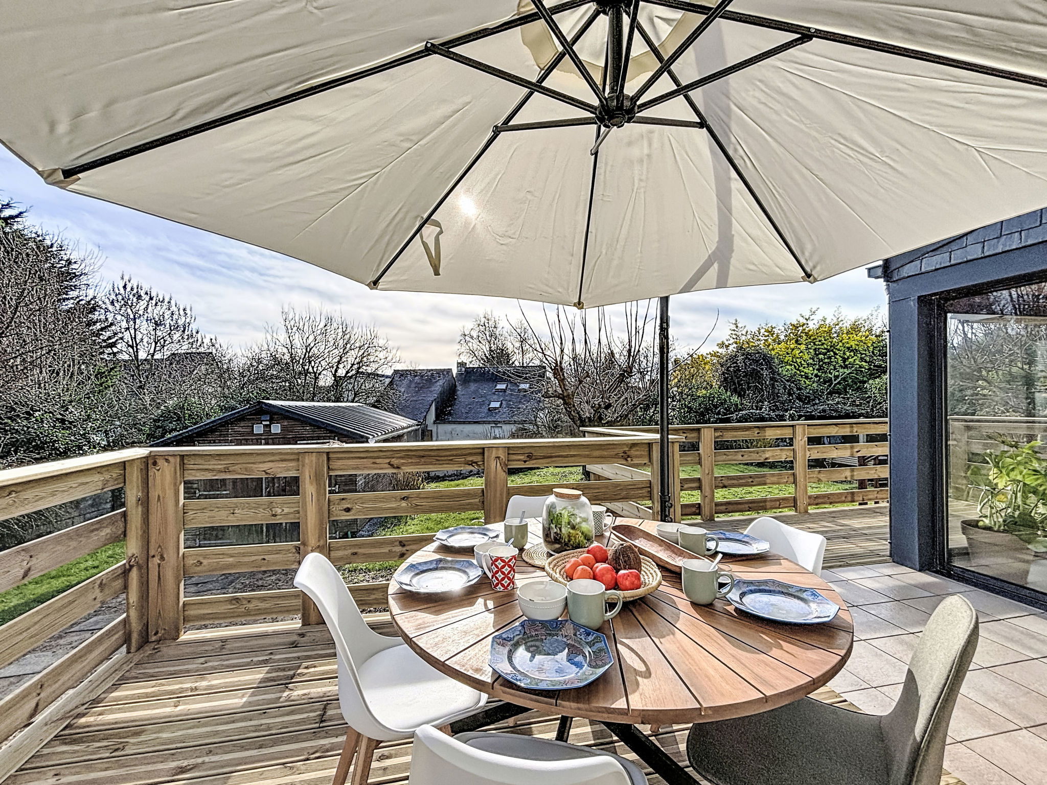 "Maison de Kergoff", 4-room house 90 m2. Comfortable furnishings: living/dining room with TV (flat screen). Exit to the veranda. 1 room with 1 french bed (1 x 140 cm, length 190 cm). Kitchen (oven, dishwasher, 3 induction hot plates, toaster, kettle, freezer, electric coffee machine, Capsules for coffee machine (Senseo) extra). Shower, sep. WC, double hand-basin. Upper floor: 1 room with 2 beds (90 cm, length 190 cm). 1 room with 1 french bed (1 x 140 cm, length 190 cm). Sep. WC. Heating. Terrace 25 m2. Terrace furniture, barbecue. Facilities: washing machine, hair dryer. Internet (WiFi, free). Parking. Please note: non-smokers only. 1 pet/ dog allowed. Smoke alarm. Offer by a private individual according to Art. 155, IV of CGI. 56214000450FB
