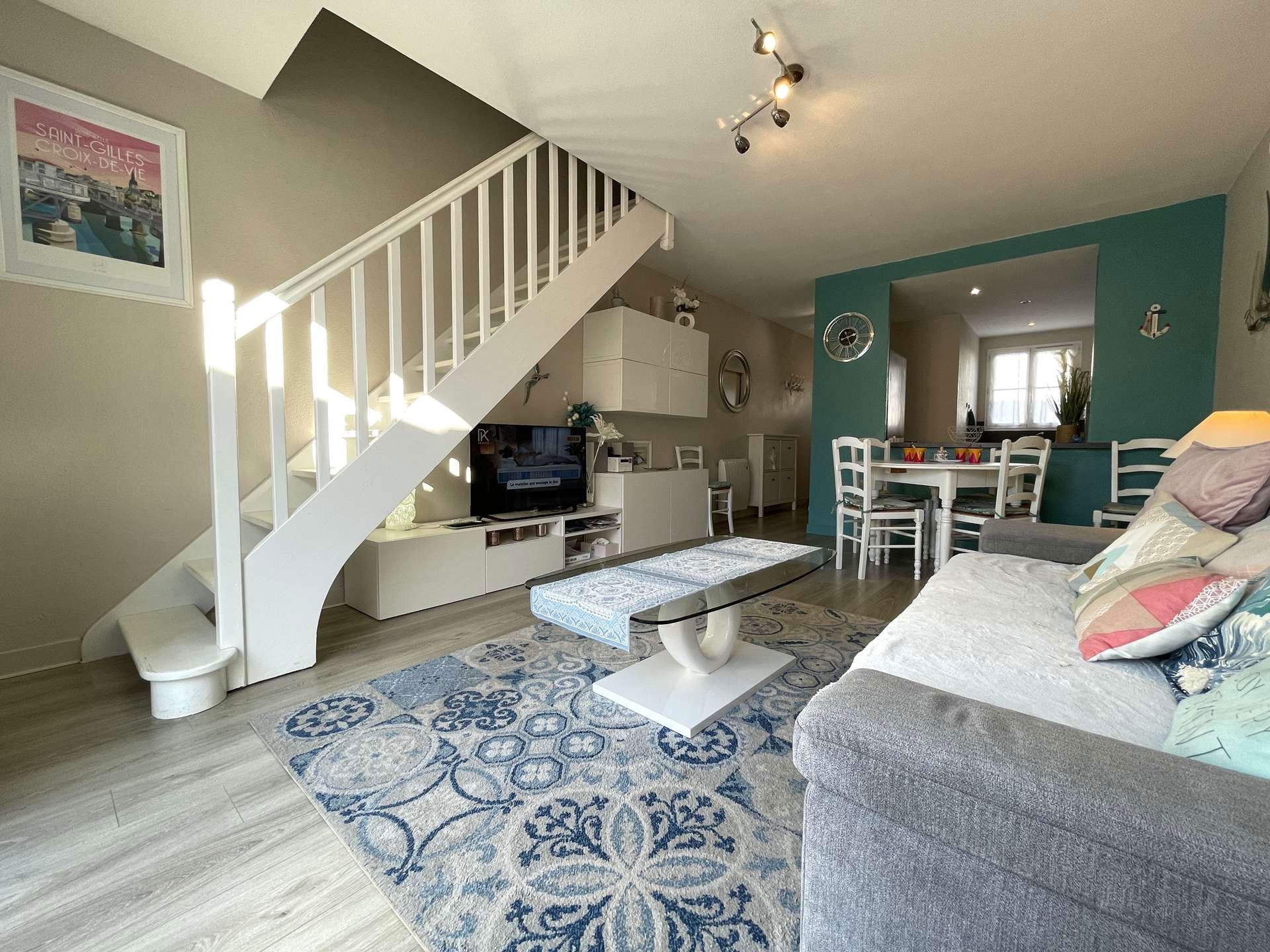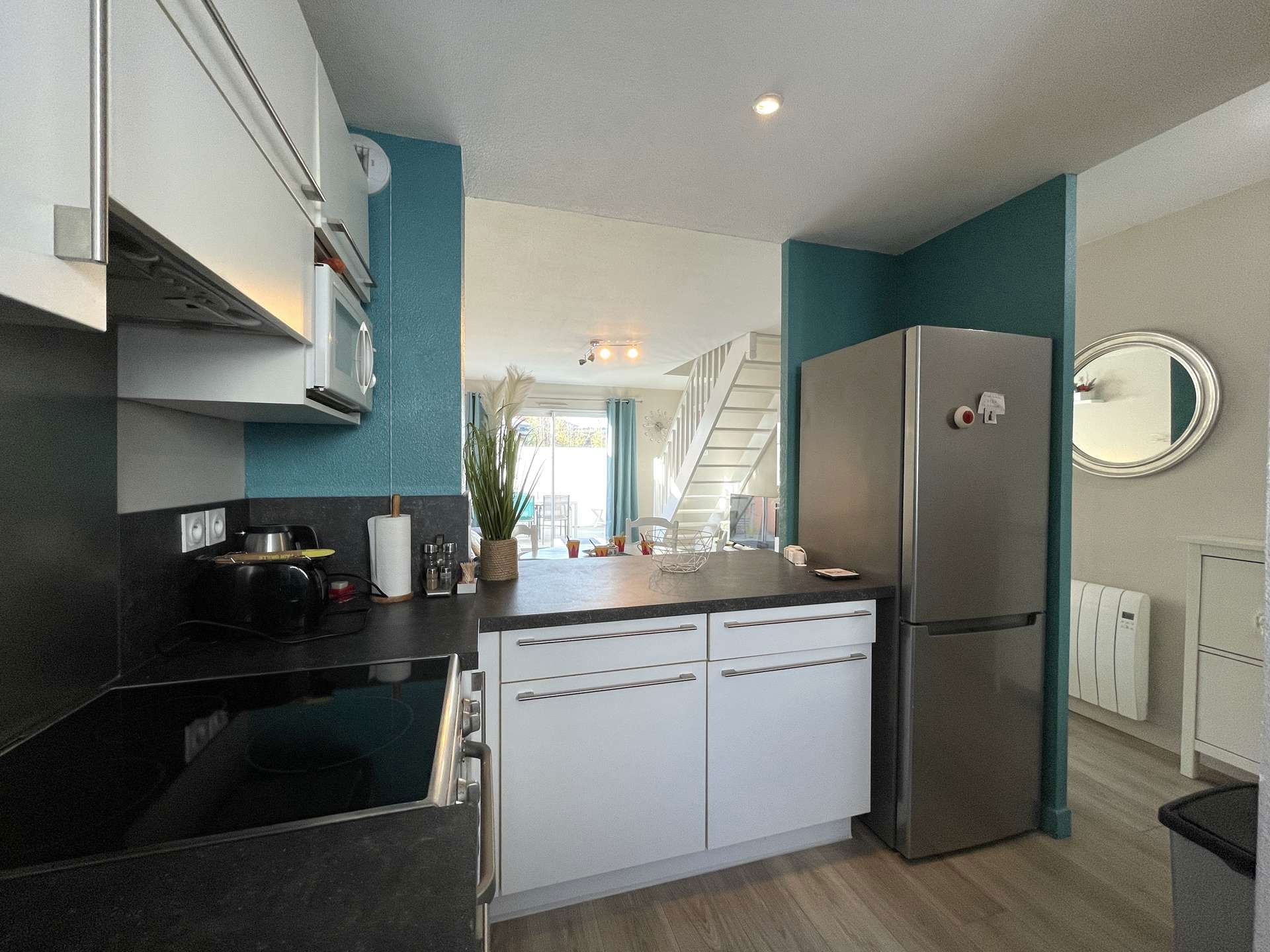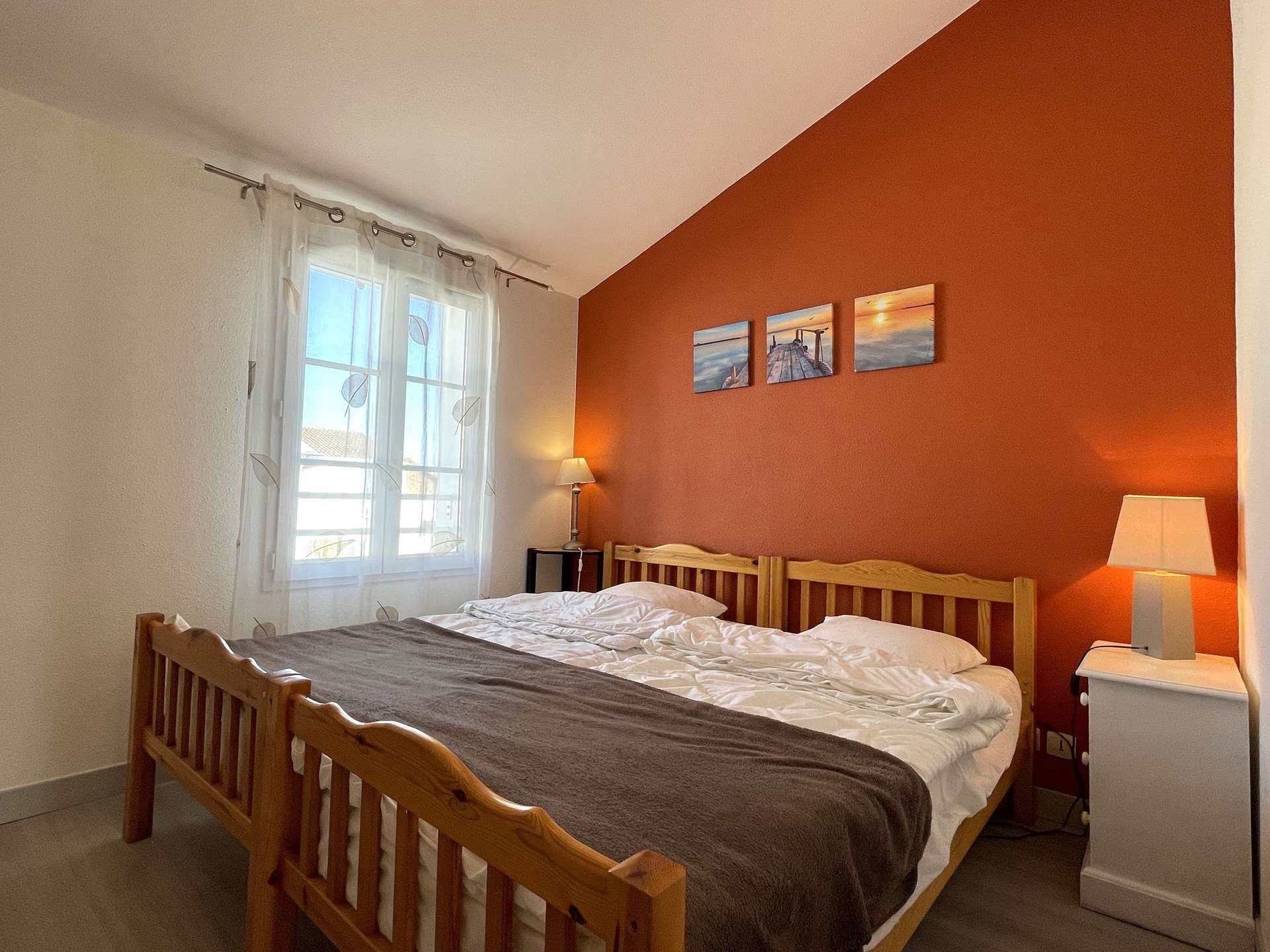 Located approximately 1km from the town center and 800m from the Grande Plage de St Gilles, this pleasant and comfortable holiday home includes on the ground floor: an entrance hall, a fitted kitchen area (fridge/freezer, dishwasher, dishwasher). linen), a living room with a television and a convertible sofa for two people, a toilet. Upstairs: two bedrooms with a double bed and two single beds, a bathroom with toilet, a hallway with cupboard/wardrobe.