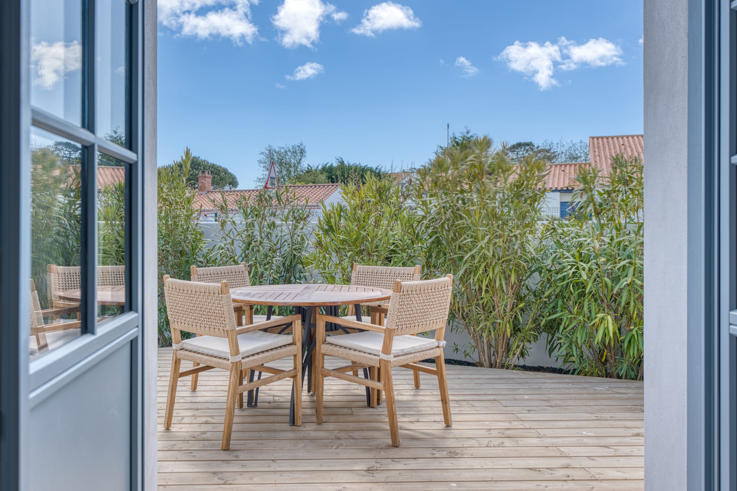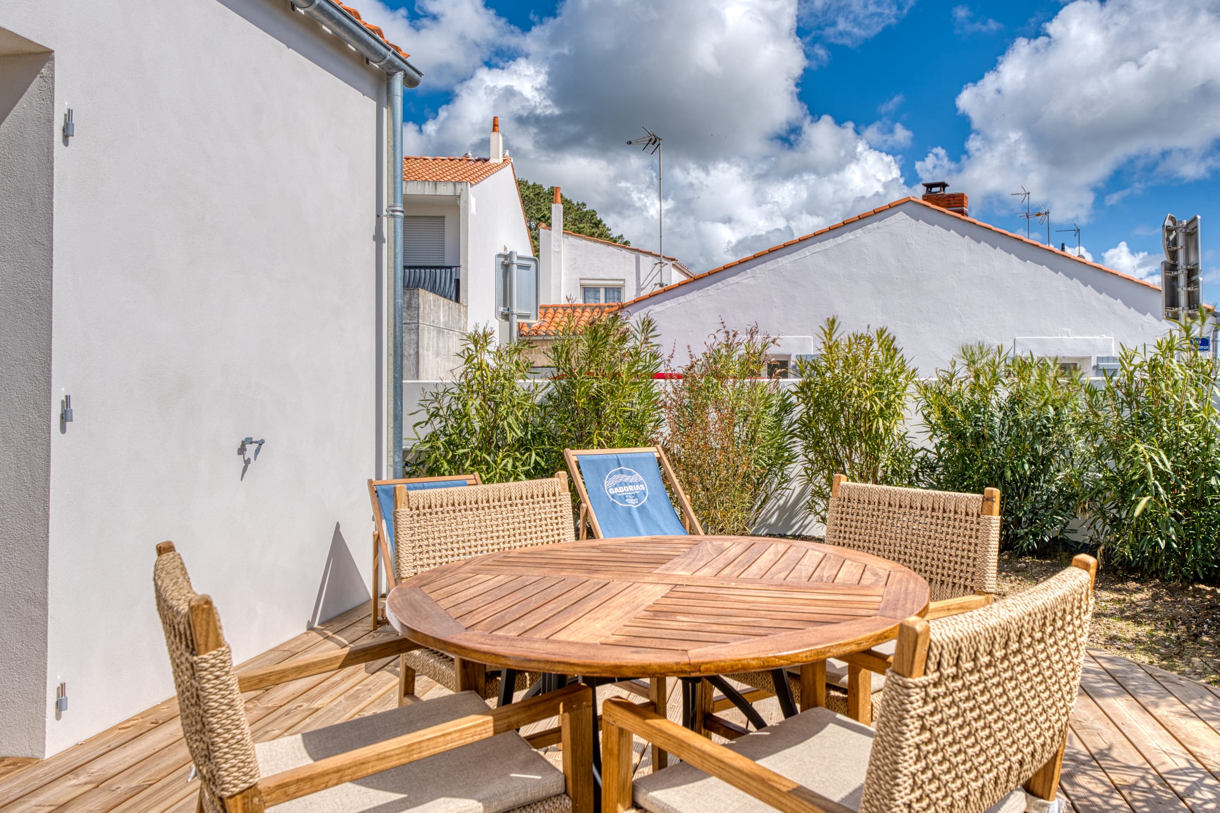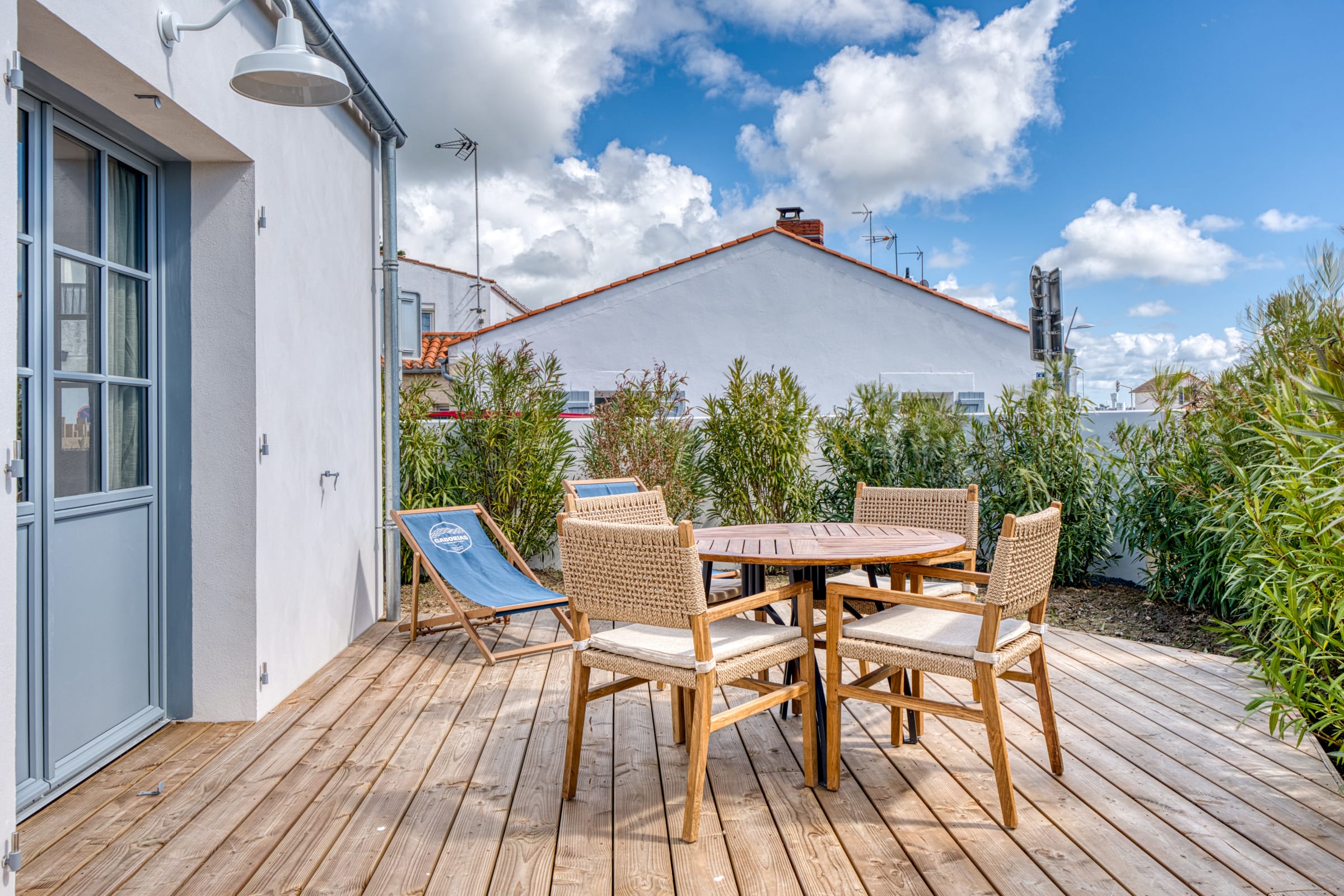 The true gem of this small townhouse is its intimate and beautifully landscaped outdoor space. You will discover a dining area to enjoy your outdoor lunches and dinners, as well as a relaxation area equipped with deckchairs and a parasol. But the absolute privilege remains its private spa (hot tub): being able to slip into it at the end of the day to relax your muscles after a long walk along the harbor is an unforgettable experience!