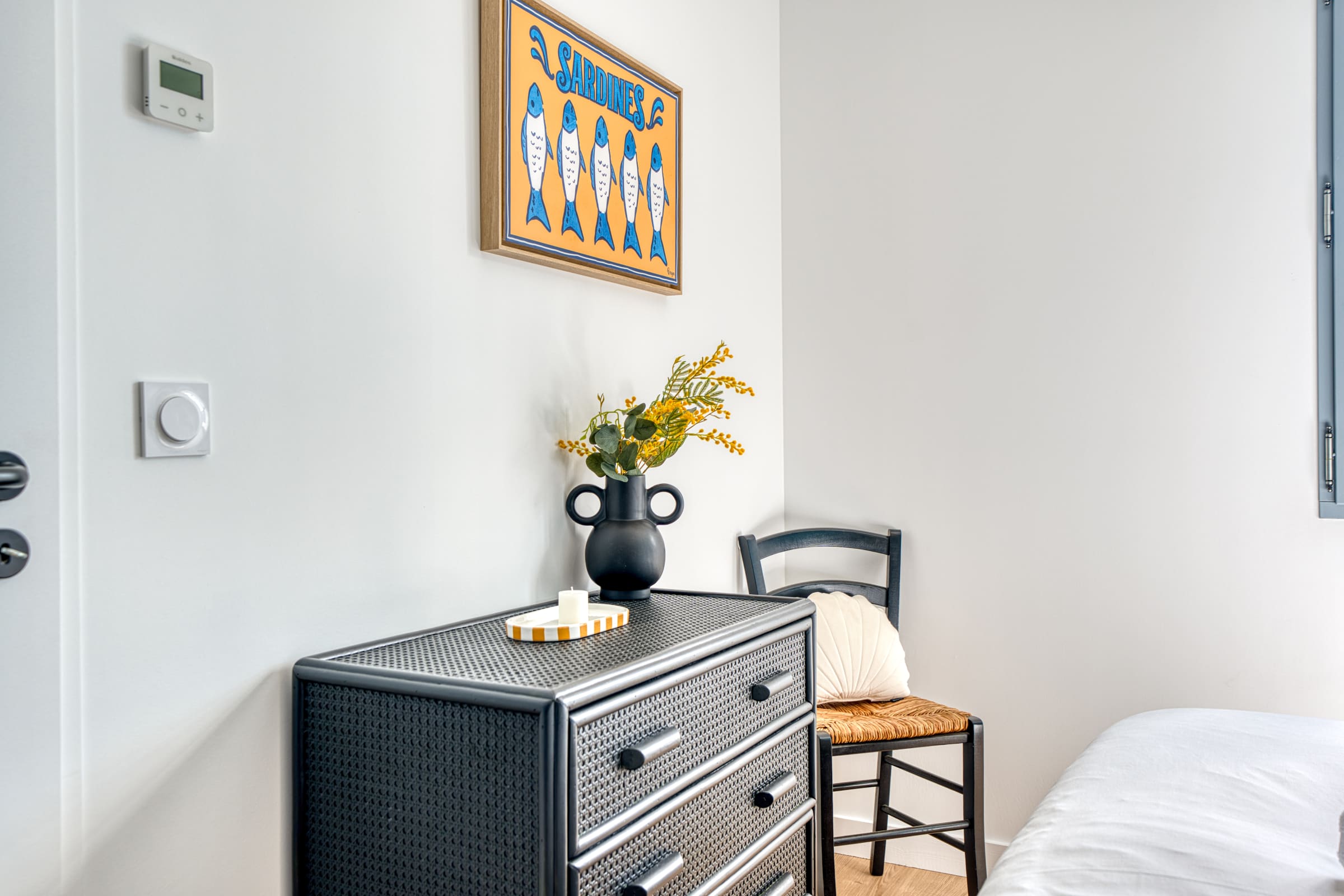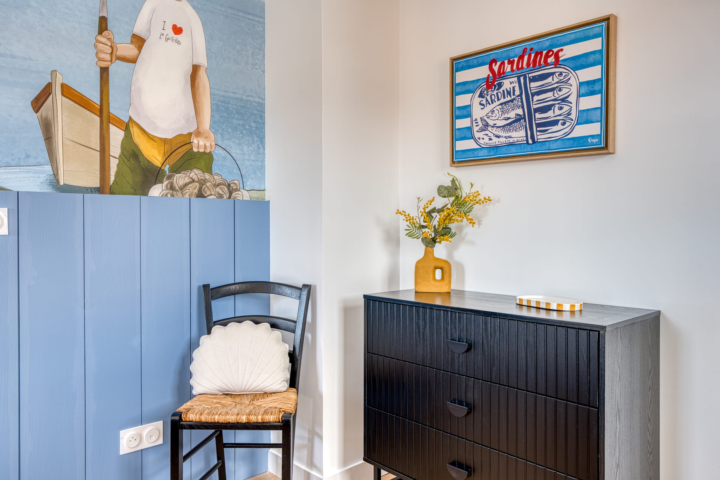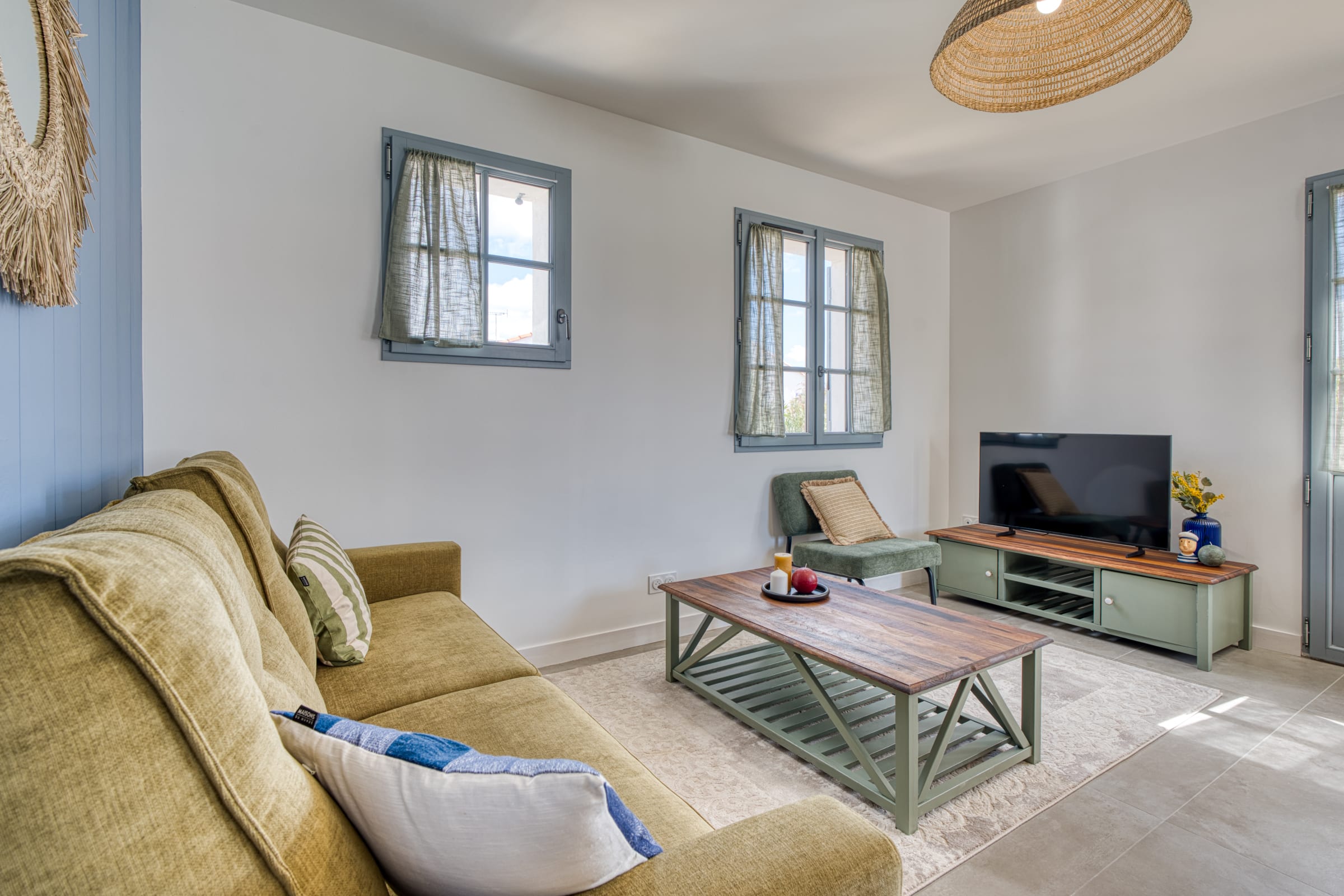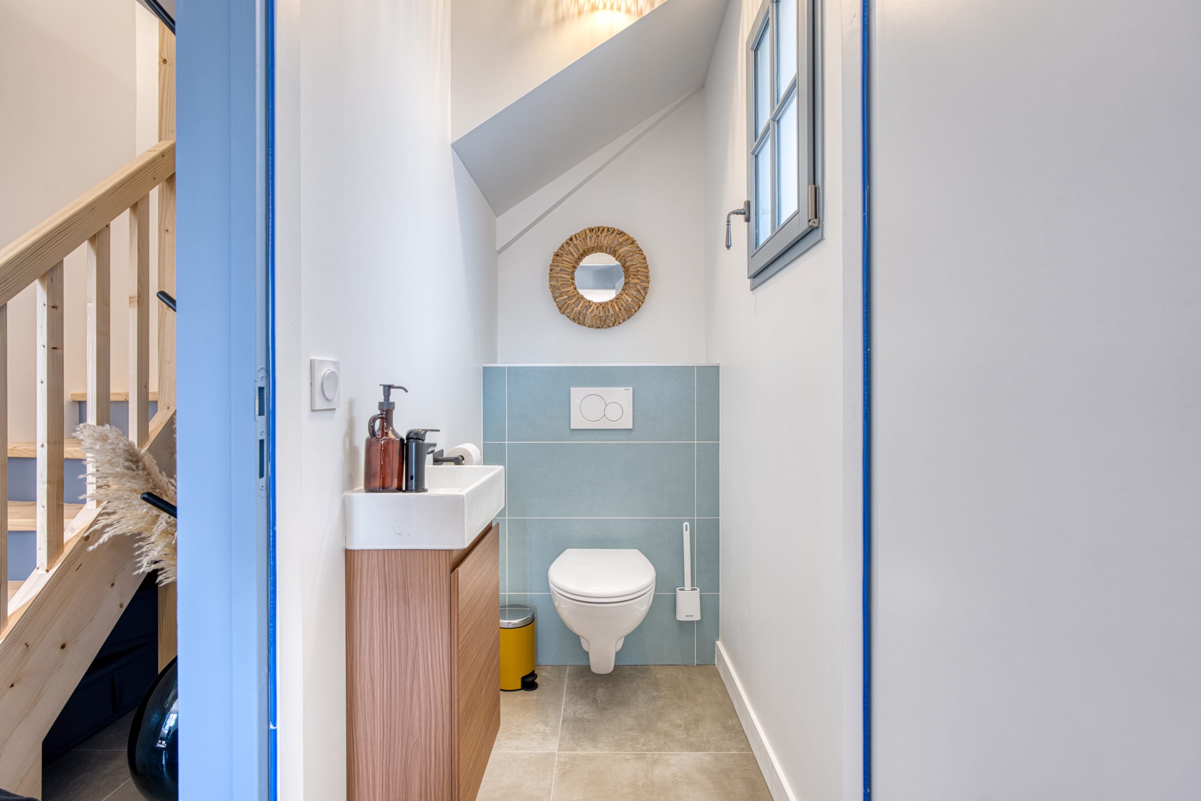 Right from the doorstep, the ground floor reveals a warm and functional living area. The living room, equipped with a smart TV and Wi-Fi connection, offers a comfortable relaxation space. It opens onto a lovely, fully equipped kitchen designed to make your stay easier: you will find everything you need for your breakfasts (Nespresso coffee machine, kettle, toaster), a dishwasher as well as a washing machine seamlessly integrated. To top it all off, raclette and fondue sets are at your disposal for gourmet and convivial evenings after a day at the beach!