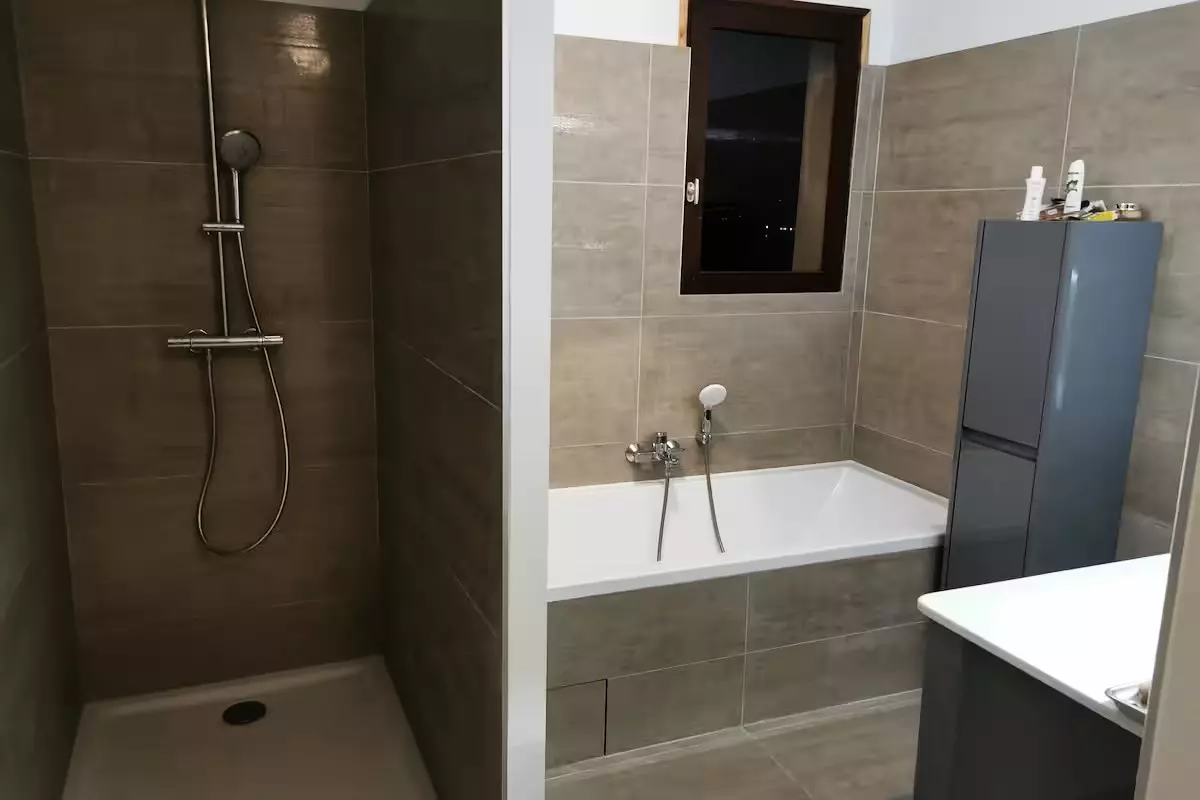 - 1 air-conditioned bedroom with a double bed and a bathroom: bathtub and separate shower. 1 separate toilet