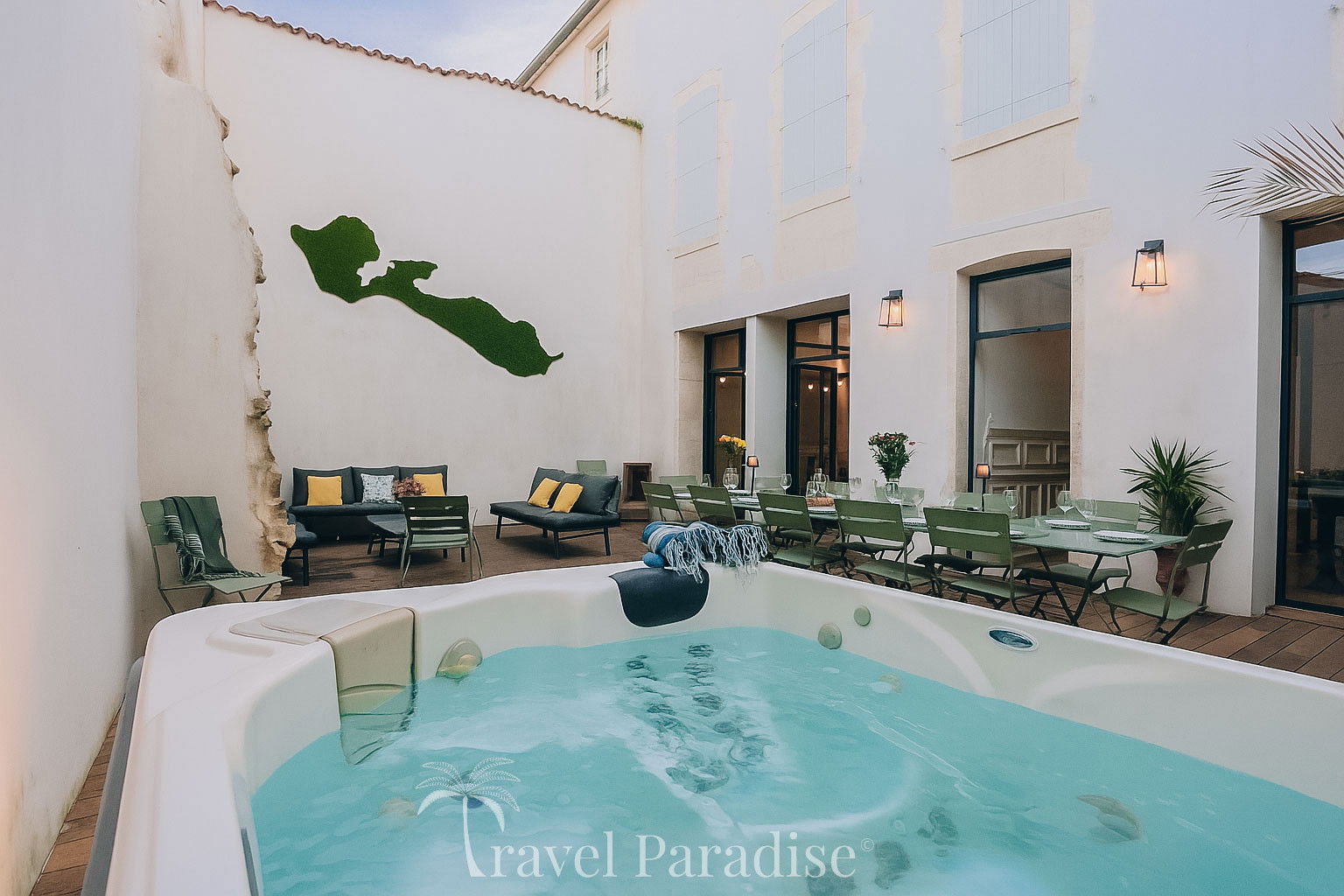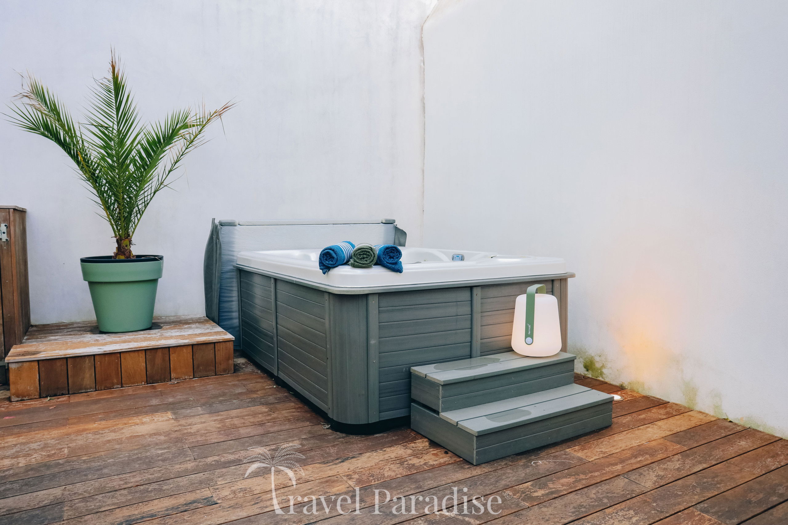 Outside, a courtyard without overlooking neighbours houses a spa, and a dining area with a plancha perfect for your summer evenings.