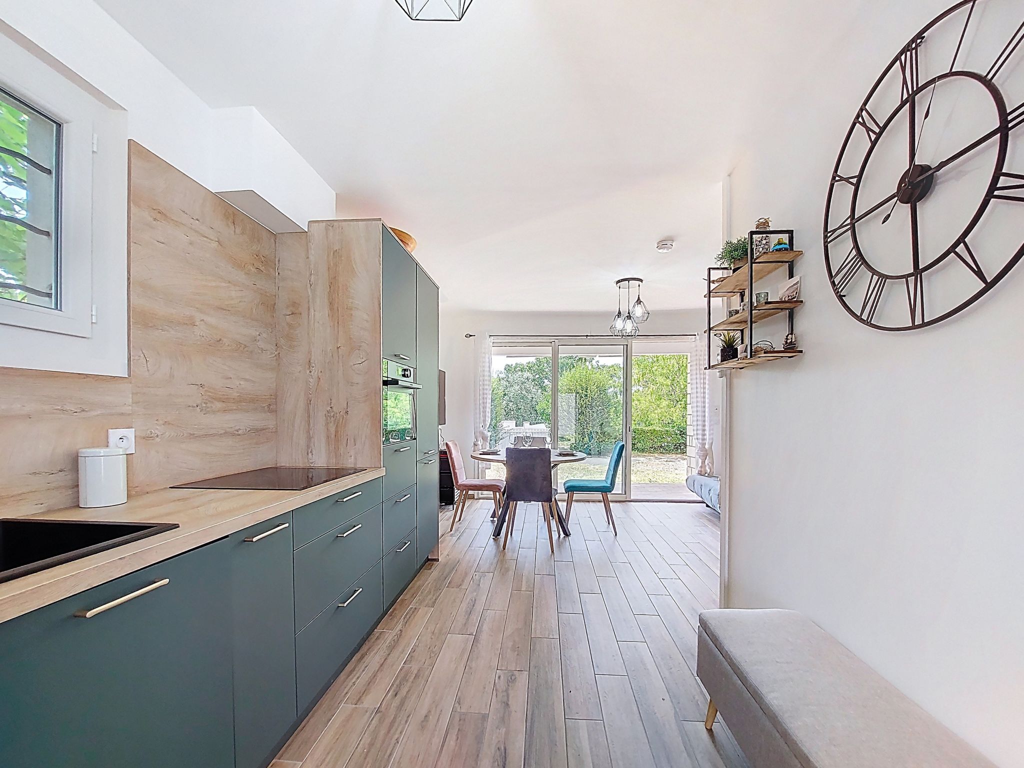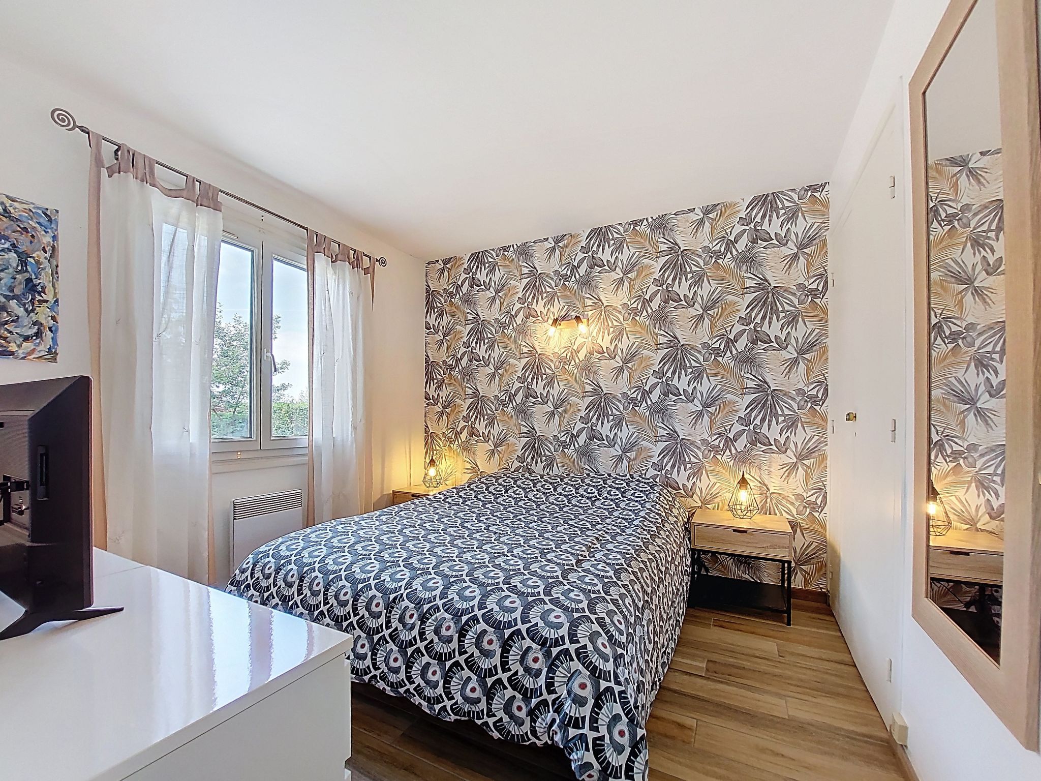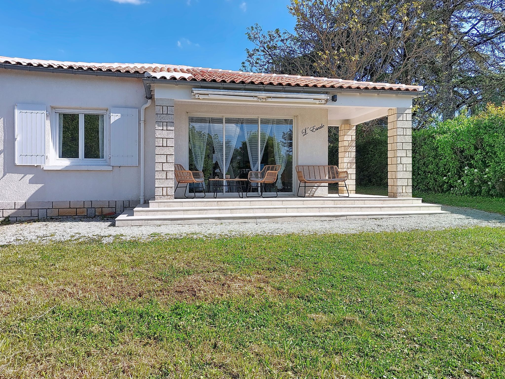 3-room house 60 m2, east facing position. Bright, cosy furnishings: living room with TV (flat screen). Exit to the garden, to the terrace. 1 room with 1 french bed (1 x 160 cm, length 190 cm), TV (flat screen). 1 room with 1 bed (90 cm, length 190 cm), 1 x 2 bunk beds (90 cm, length 190 cm). Open kitchen (dishwasher, 3 induction hot plates, toaster, kettle, freezer, electric coffee machine, combination microwave). Shower/WC. Air-conditioning. Terrace 8 m2, garden 650 m2. Terrace furniture. Facilities: washing machine. Internet (WiFi, free). Parking (2 cars). Please note: non-smoking house. Maximum 1 small pet/ dog allowed. Smoke alarm. Offer by a private individual according to Art. 155, IV of CGI.