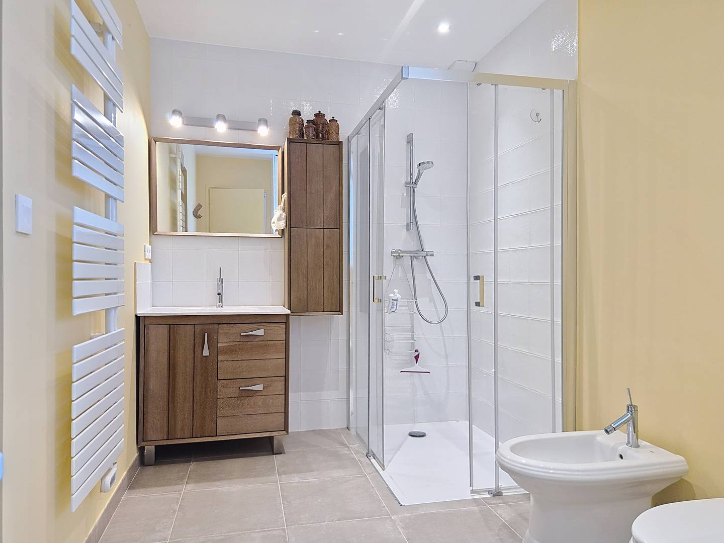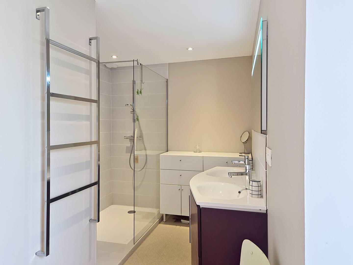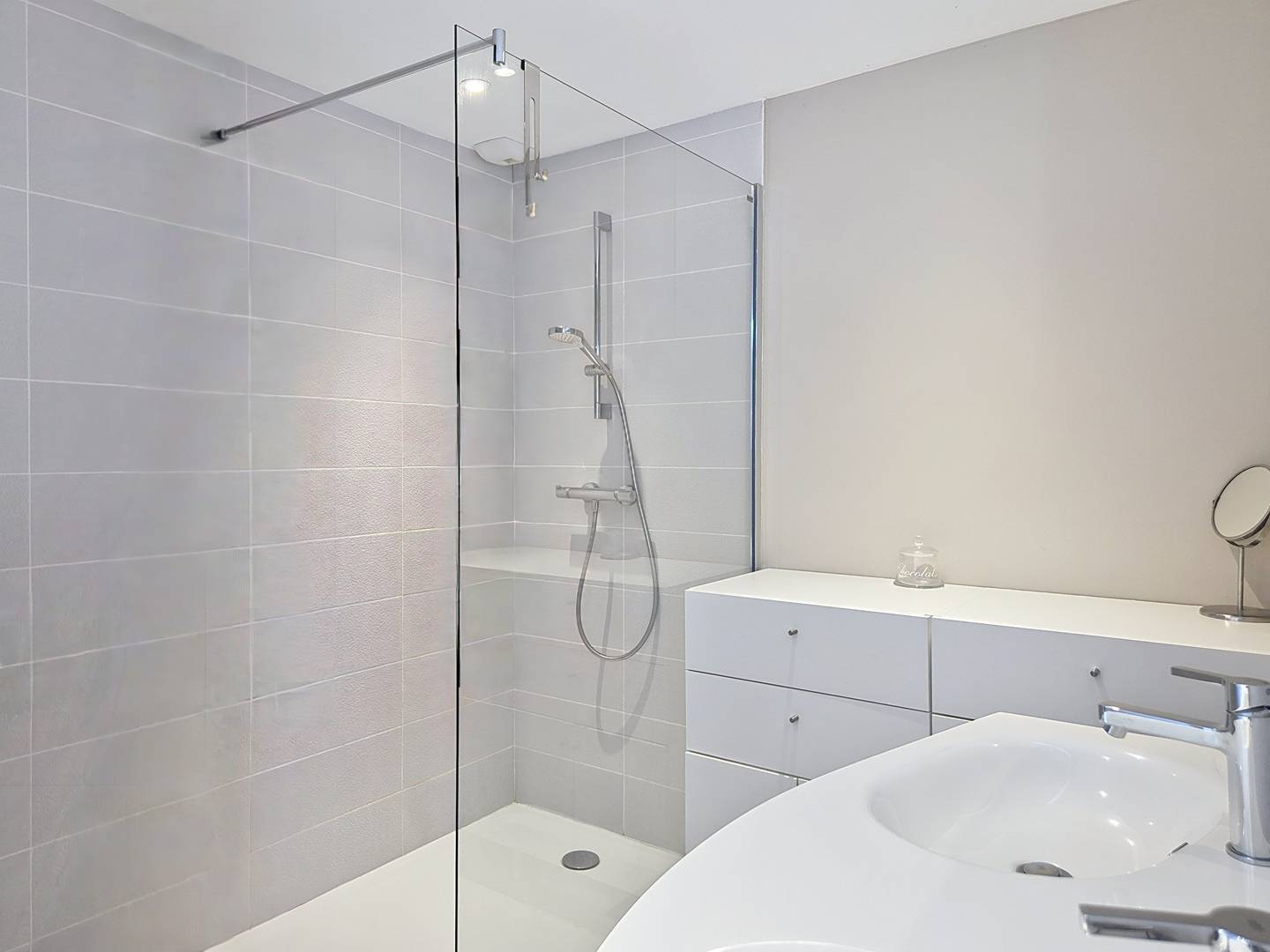 - Shower room with large walk-in shower and double washbasin
