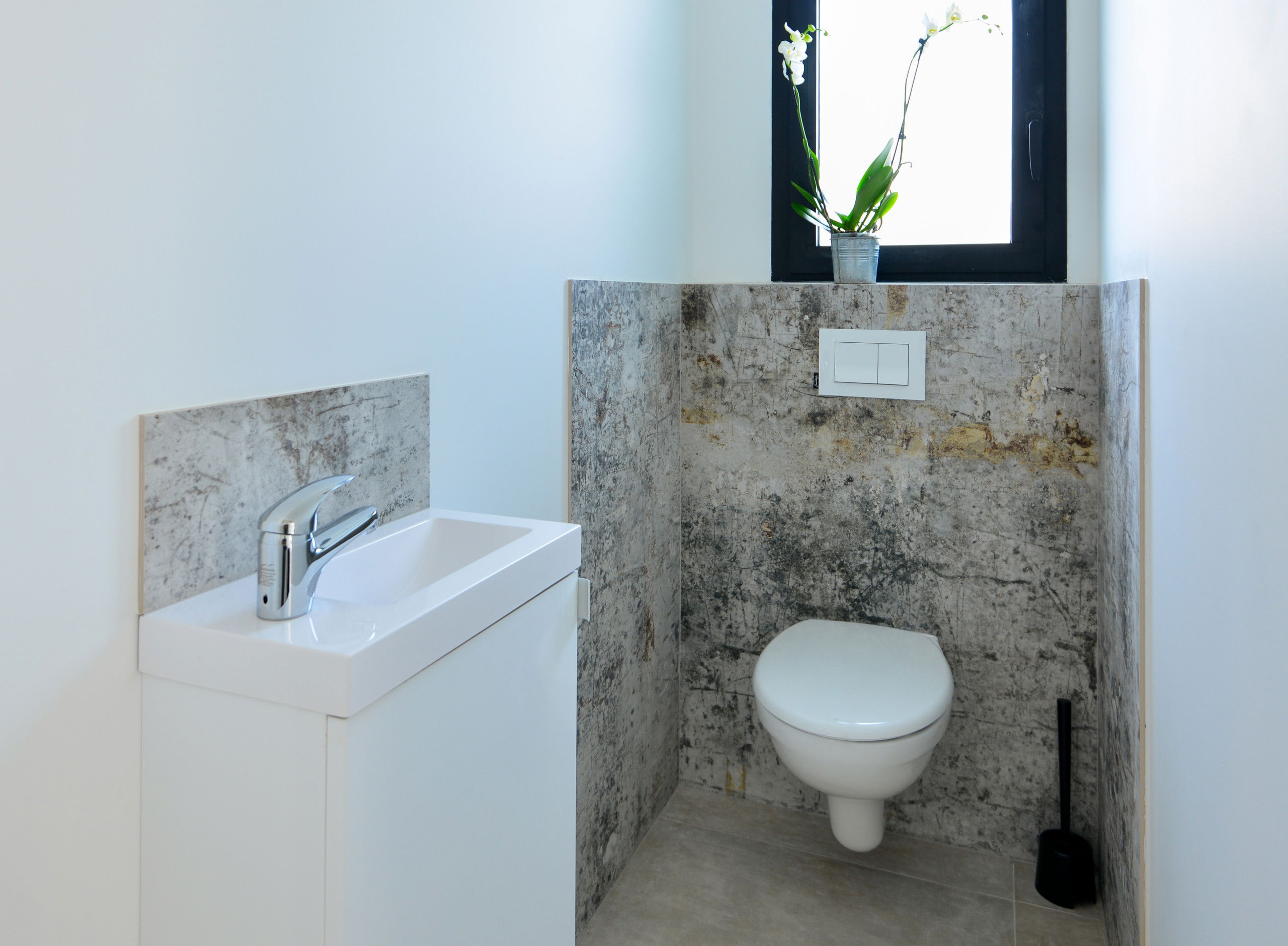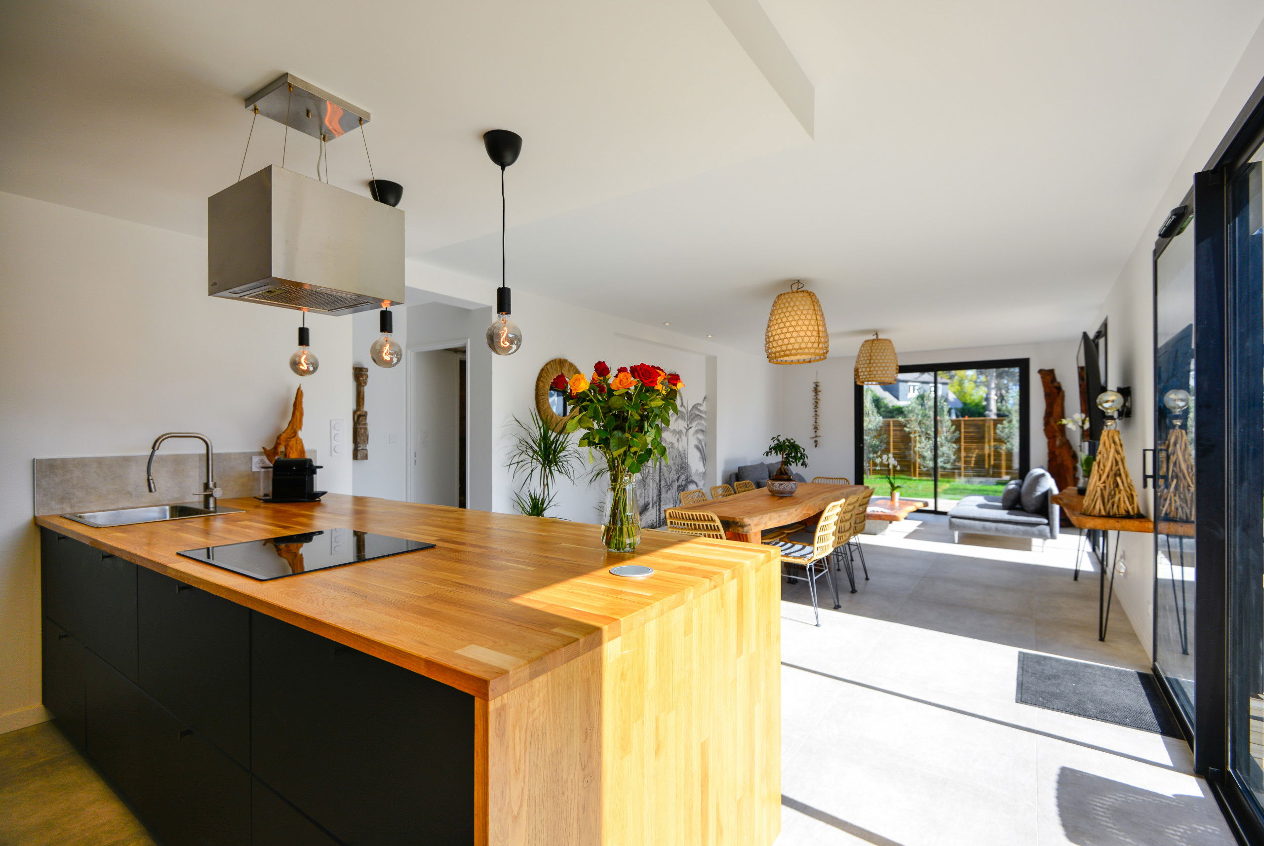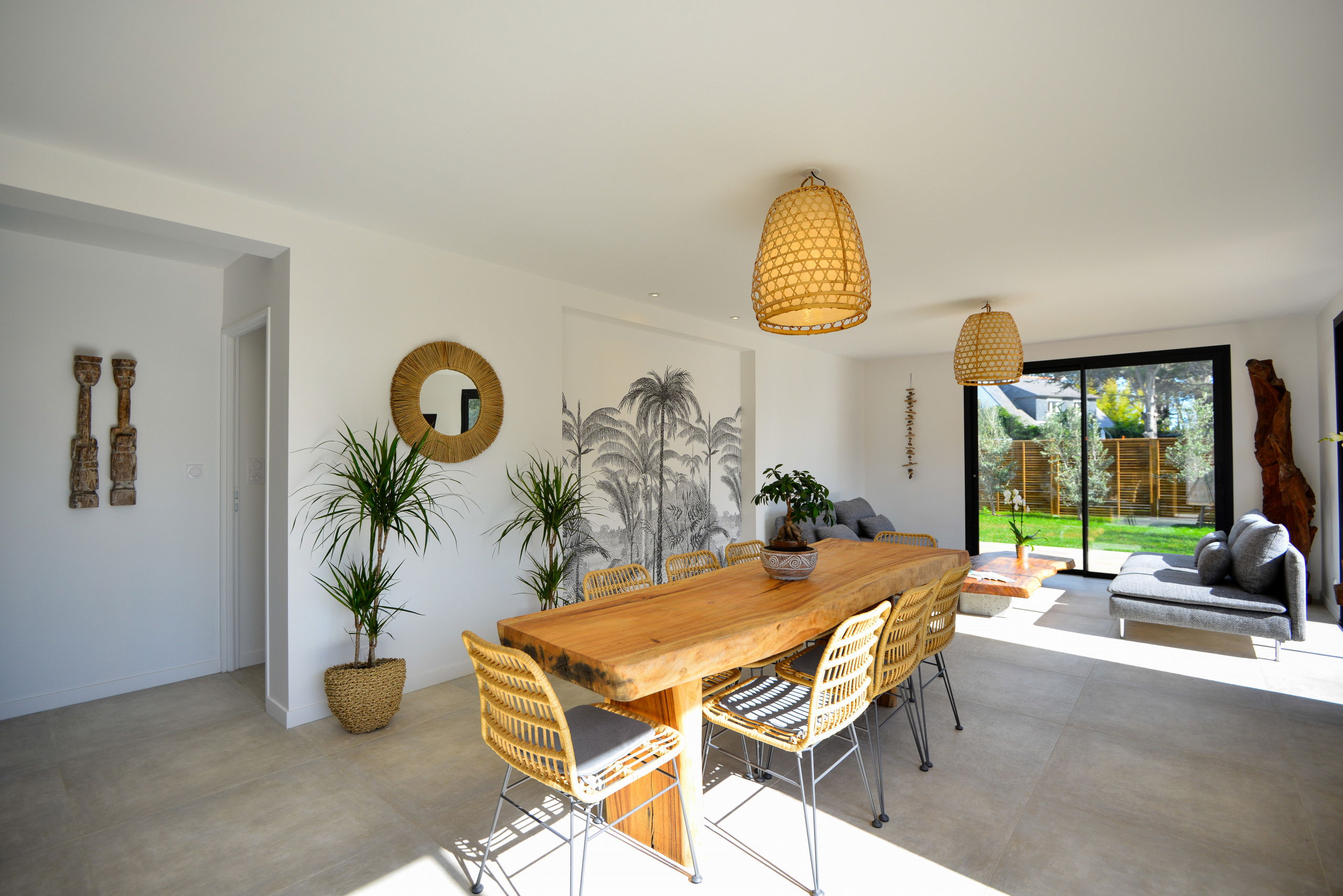 Far from the road, the environment of this designer villa is quiet, residential and wooded.