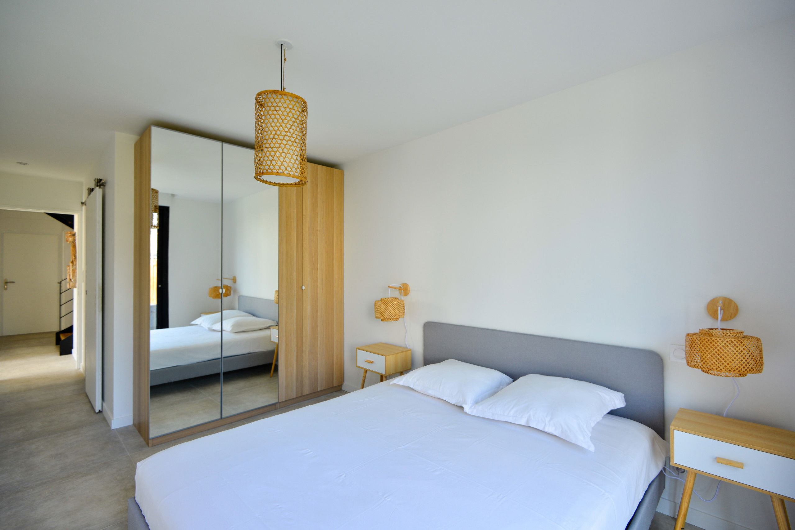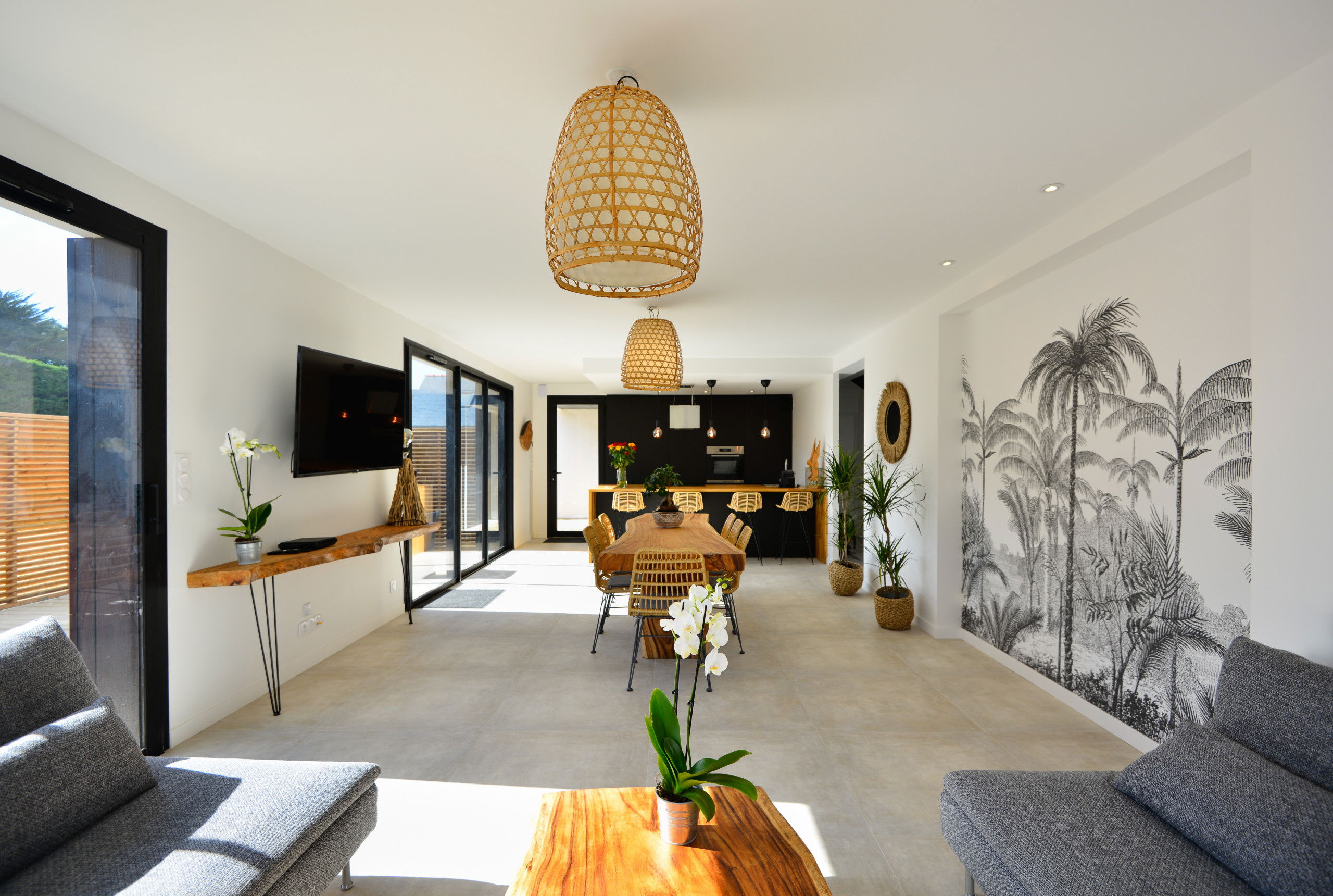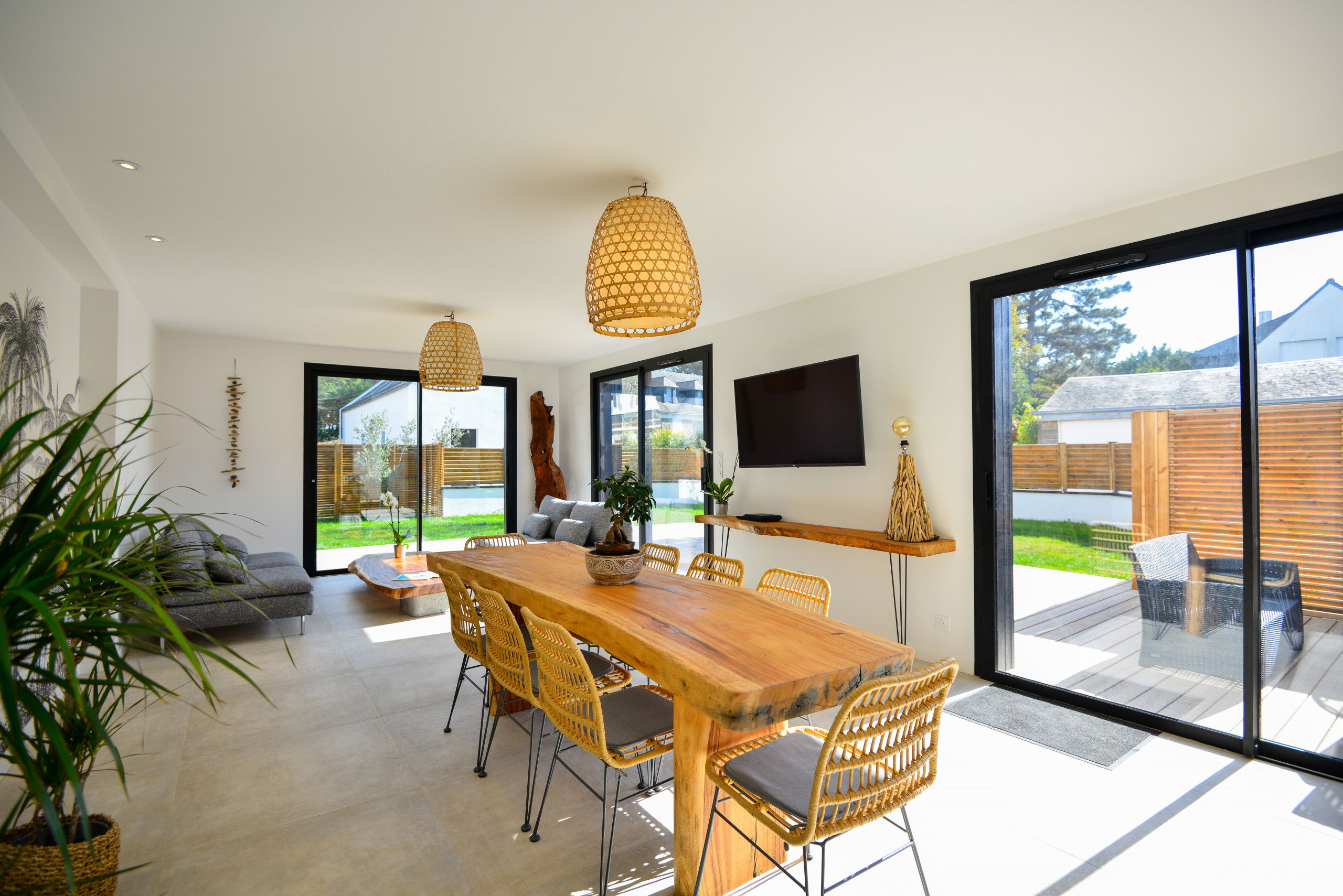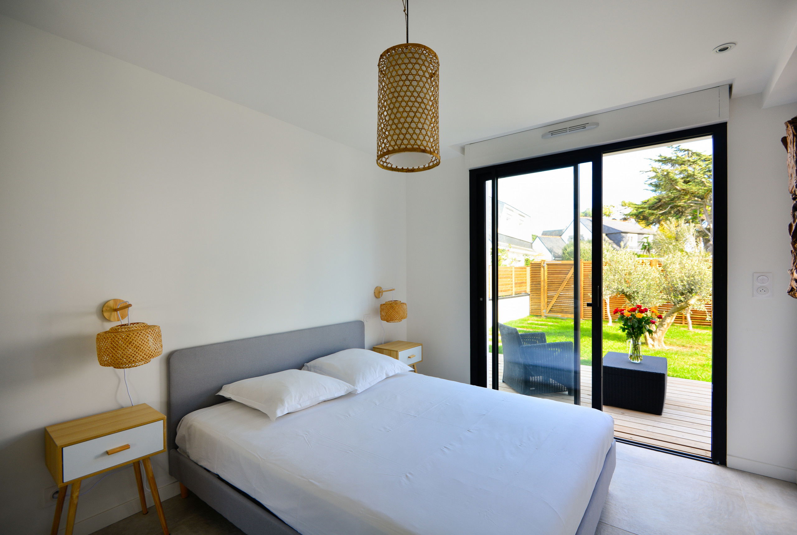 Architect's house next to the beach, Villa YIN is equipped with all modern comforts: each of the 4 bedrooms has its own bathroom (with toilet) and a Queensize bed ; you will enjoy a comfortable and spacious living room, with a large connected TV flat screen (Netflix possible), southern exposure, design decoration, nature and wood, free parking and wifi, Nespresso) this atypical contemporary villa offers a change of scenery and tranquility... and private access to the Bay of Quiberon!