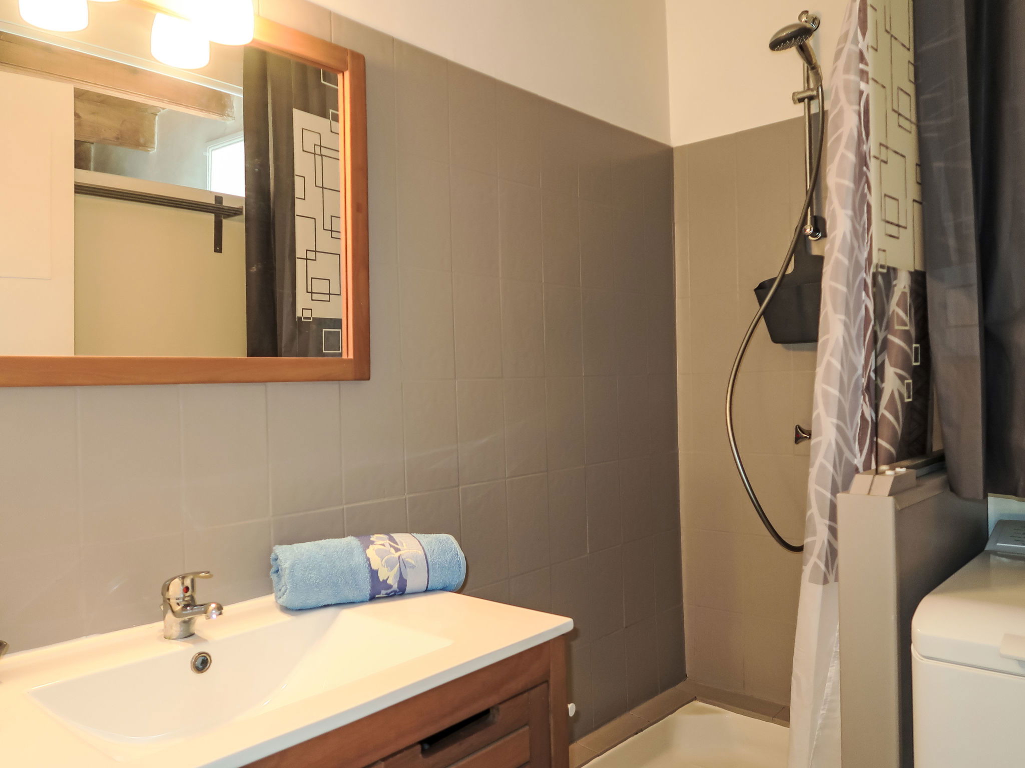 "Ker Lolis", 3-room terraced house 70 m2 on 3 levels. Cosy furnishings: kitchen (oven, 3 ceramic glass hob hotplates, toaster, kettle, freezer, electric coffee machine) with dining table. Exit to the terrace. Sep. WC. Upper floor: living room with TV (flat screen). Shower. Electric heating. 2nd upper floor: 1 open small room with sloping ceilings with curtain with 1 french bed (140 cm, length 190 cm). 1 room with 2 beds (90 cm, length 190 cm). Terrace, south facing position. Terrace furniture, barbecue. Facilities: washing machine, baby cot for up to 2 year olds (extra). Internet (WiFi, free). Please note: non-smoking house. 1 small pet/ dog allowed. Smoke alarm. Offer by a private individual according to Art. 155, IV of CGI.