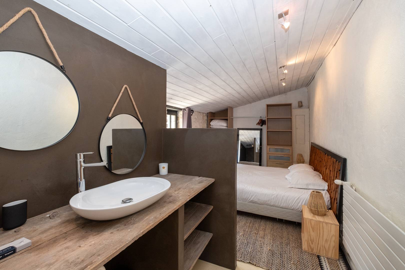 * Bedroom 1 - Upstairs: (steep staircase without railing): master suite (180cm bed) with master bathroom, 1 separate toilet