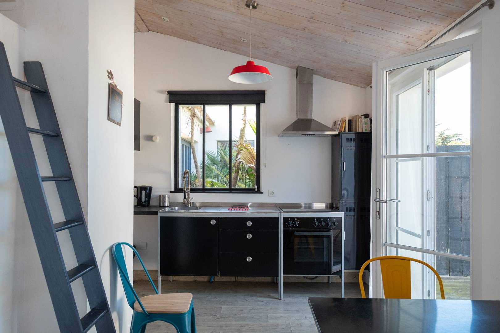 Double bedroom and two 90 cm beds on the mezzanine - access by a ladder (unsecured for small children)