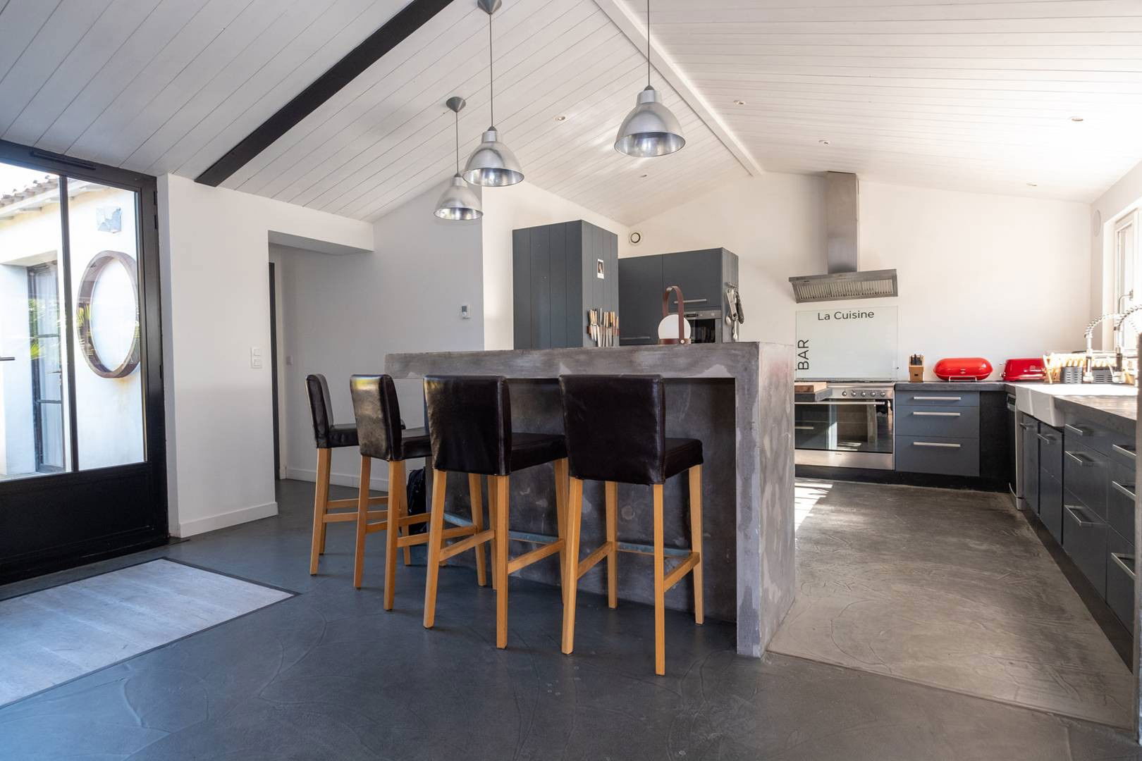 - Open kitchen and bar stools