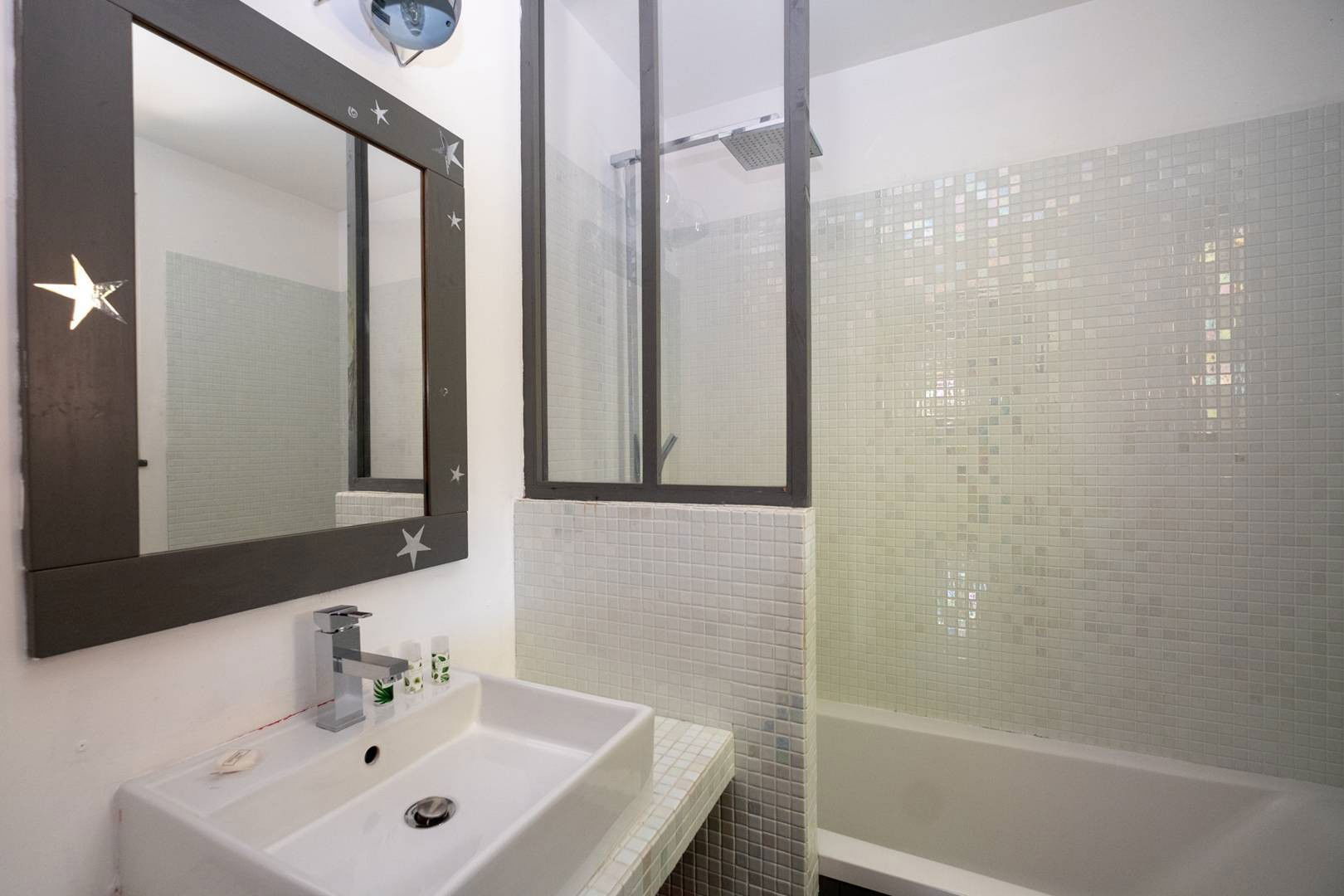 - East wing: two double bedrooms opening onto a private courtyard (one also has an additional bunk bed and a shower, the other a bathtub) Ideal wing for a family of 5 people . An independent shared WC.