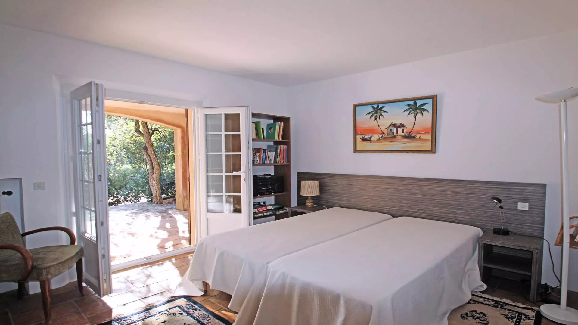 - Air-conditioned bedroom 2: 2x80 (or 160) beds with bathroom, closet, terrace opening onto the garden