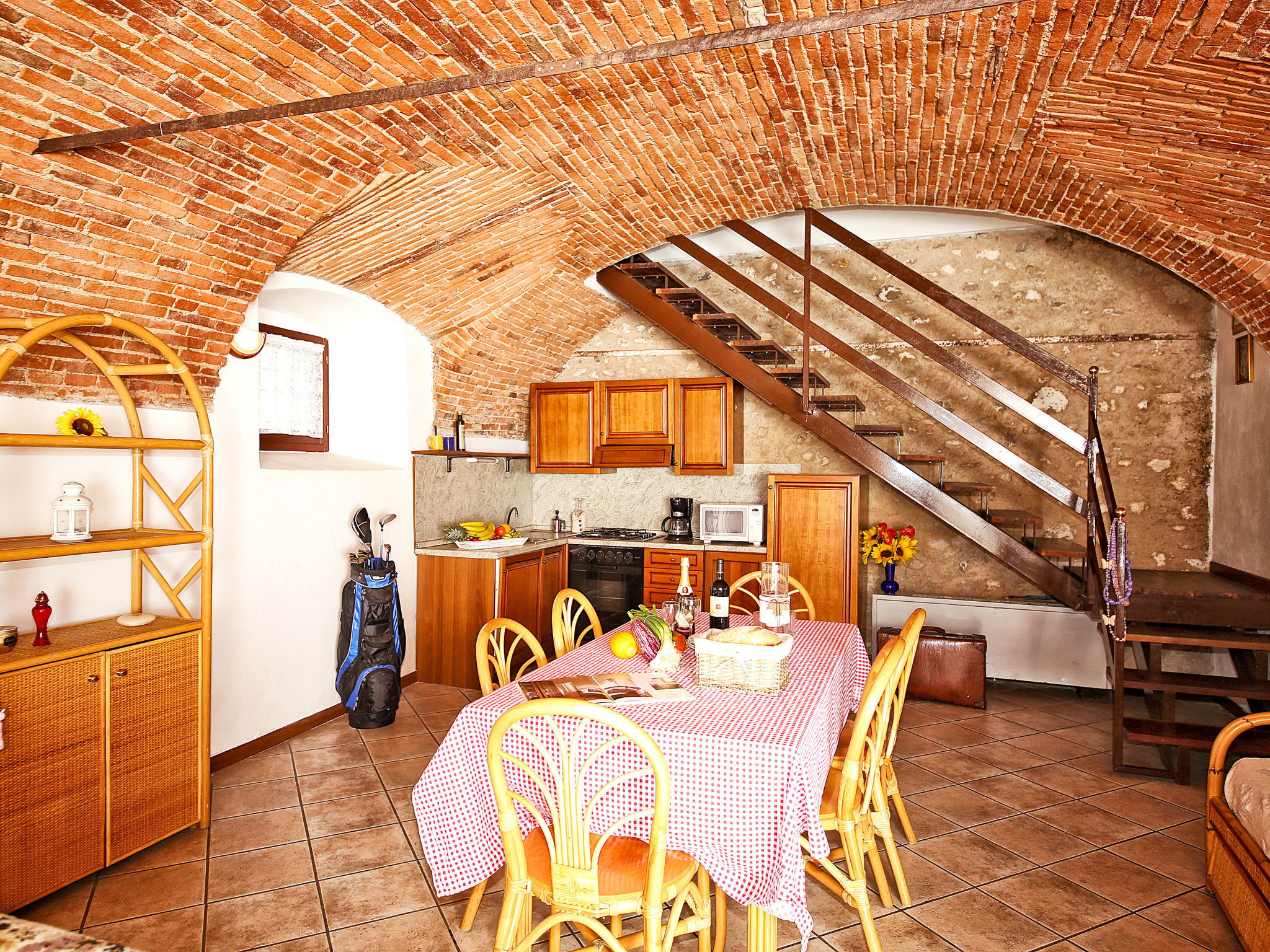 "Villetta", 3-room house 80 m2 on 2 levels. Comfortable and rustic furnishings: living/sleeping room with 1 sofabed, 1 pull-out bed, dining table and satellite TV. Open kitchen (dishwasher, 4 gas rings, kettle, microwave, electric coffee machine). Upper floor: 2 double bedrooms. Exit to the balcony. Shower/bidet/WC. Gas heating, air-conditioning (extra). Balcony, patio. Balcony furniture. View of the garden. Facilities: safe. Internet (WiFi, free). Parking, garage on the property. Maximum 1 pet/ dog allowed. IT017170B5OY8KGT49