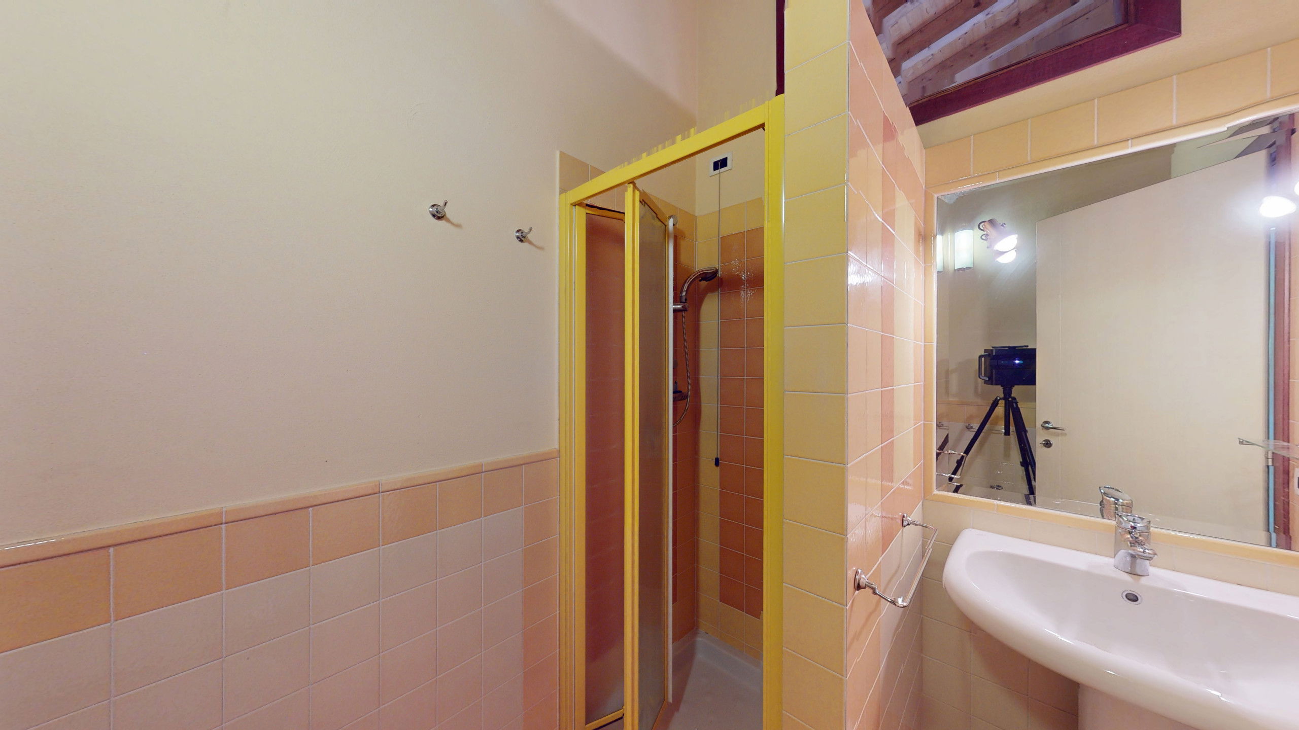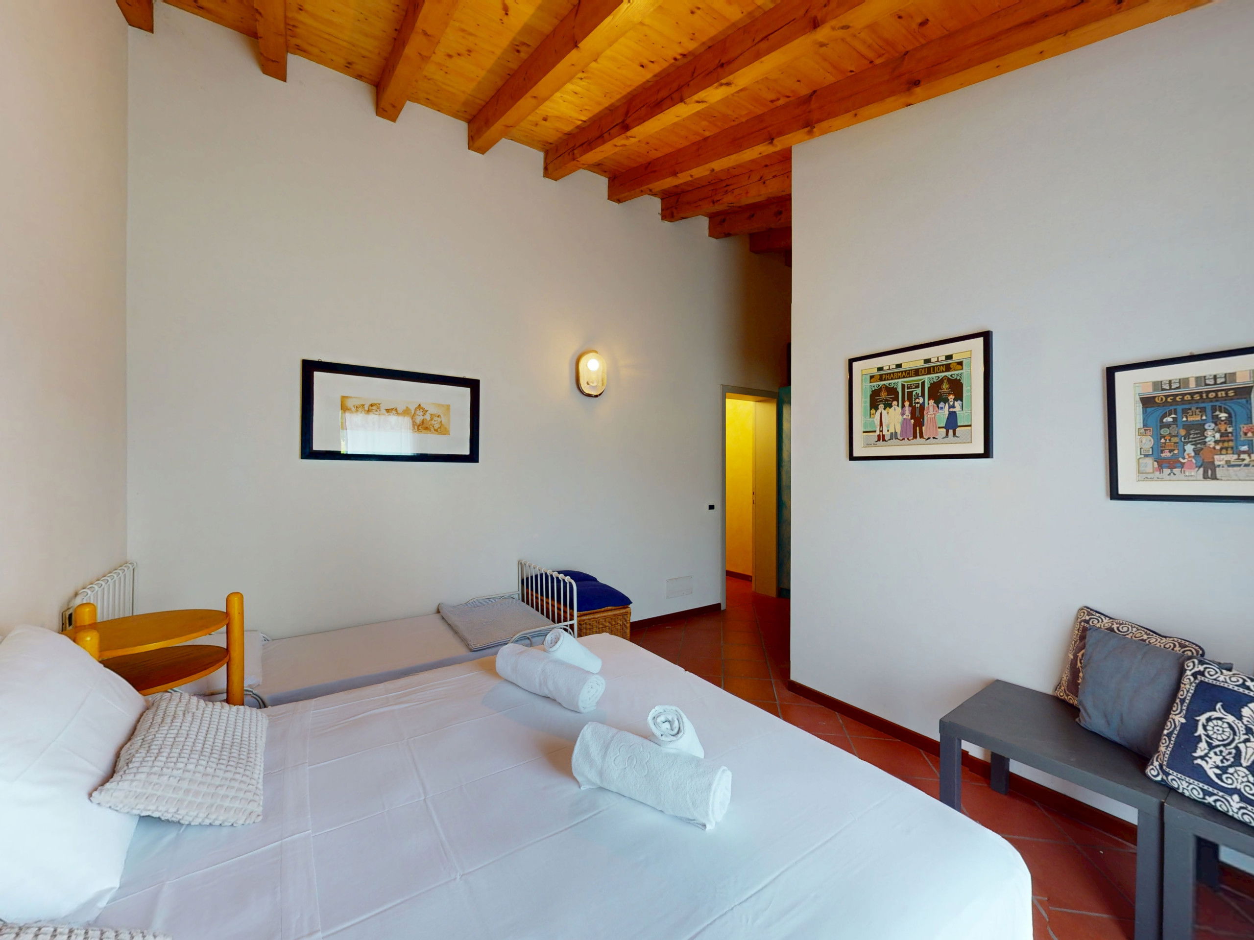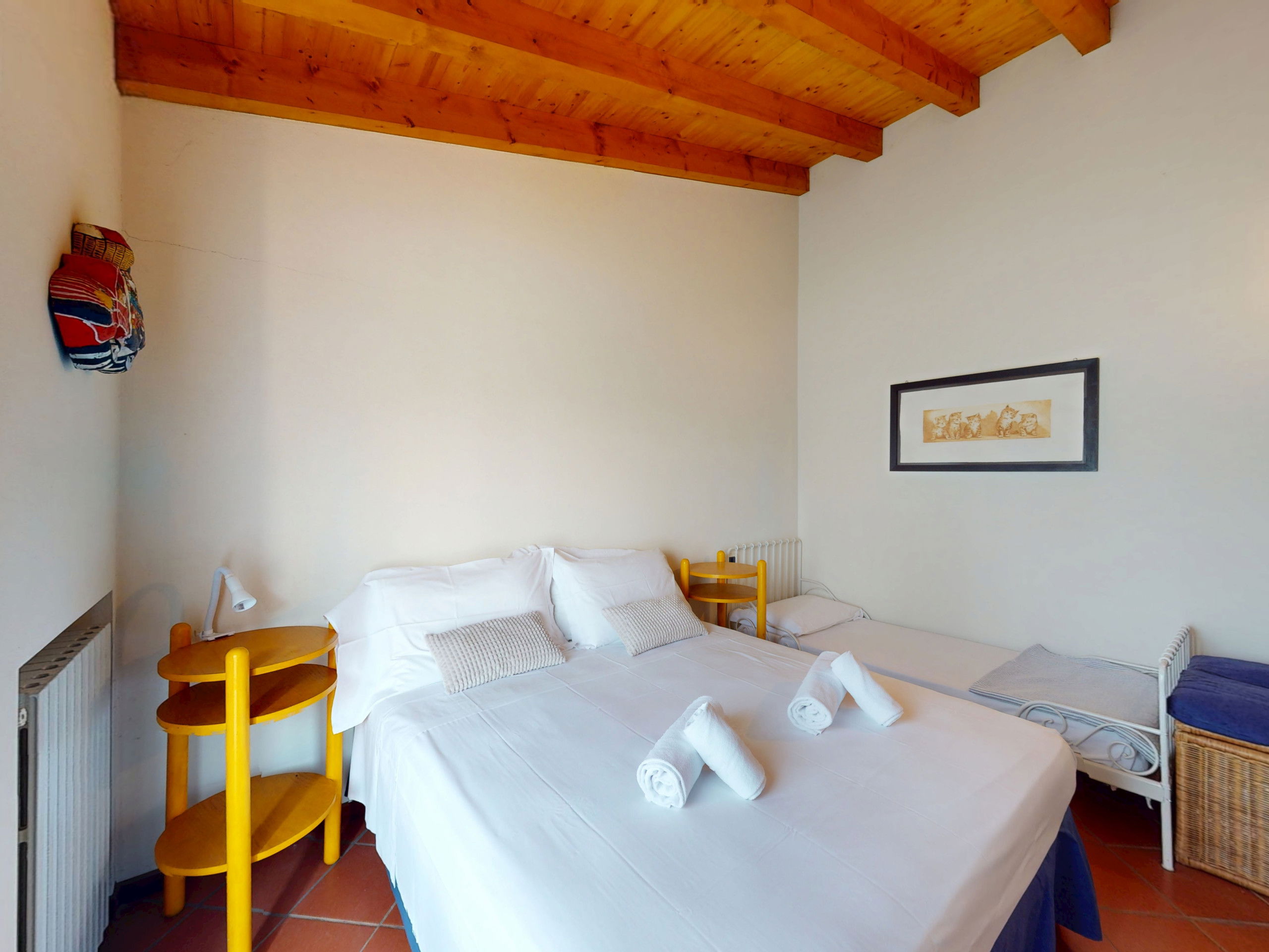 All on one level, the dwelling opens onto spacious and bright environments, enhanced by high ceilings with exposed wooden beams that tell the most authentic Italian architectural tradition.