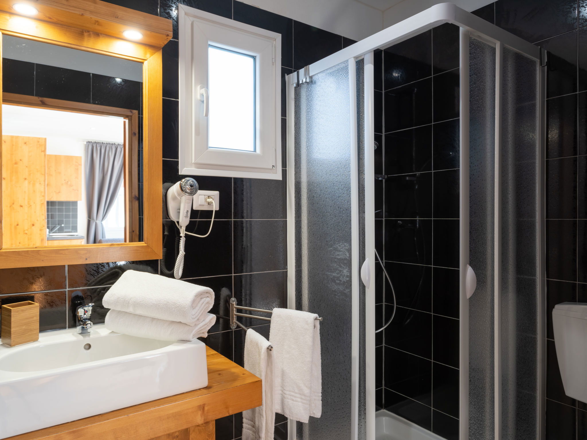 "Mandorlo ", 3-room bungalow 36 m2. Bright, modern furnishings: 1 room with 1 french bed (160 cm). 1 room with 2 beds (80 cm). Kitchen-/living room (4 gas rings, toaster, microwave, freezer, electric coffee machine) with dining table, 1 double sofabed (140 cm), satellite TV. Exit to the terrace. Shower/WC. Heating, air-conditioning. Terrace. Terrace furniture, deck chairs (2). Partial view of the sea. Facilities: children's high chair, baby cot. Internet (WiFi, free). Parking (1 car). Please note: non-smokers only. Maximum 1 pet/ dog allowed. Bed layout is flexible. There are more sleeping options available than the maximum number of people allowed which may, however, not be exceeded. IT008054B1553SB4JB