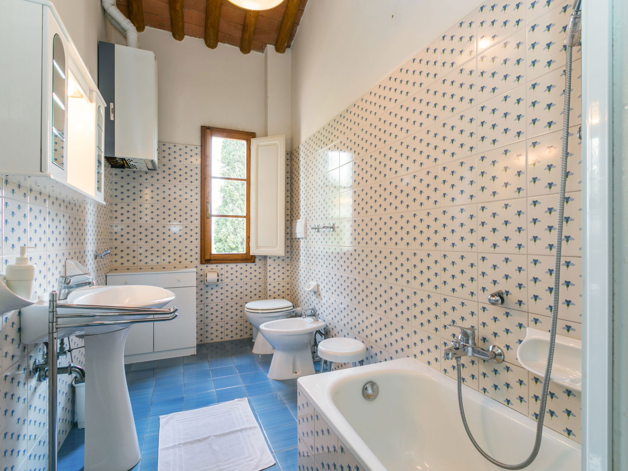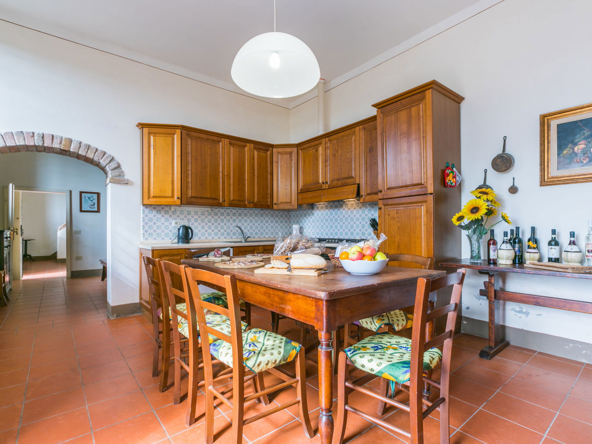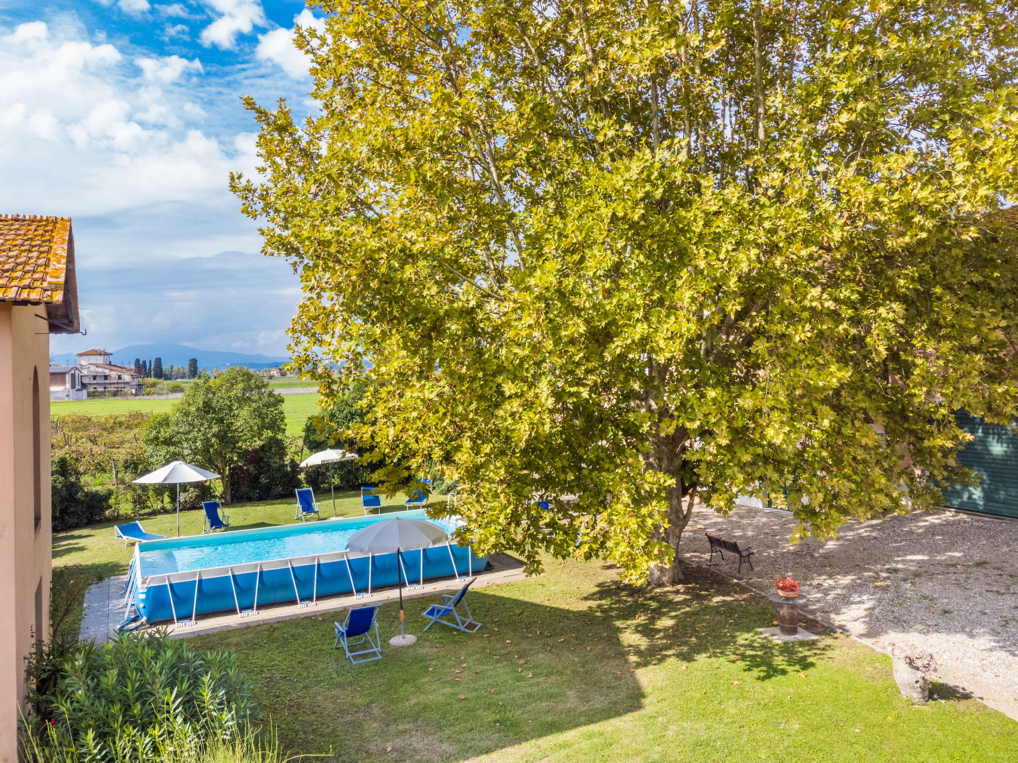 Object made of House Scaletta IT 5311.617.1 and Girasole IT 5311.607.2 booked together by the same group. Large agricultural estate "Fattoria Scaletta + Girasole", surrounded by meadows and fields. Property composed of main house and outbuilding 3 km from the centre of San Miniato, 4 km from the centre of Fucecchio, 45 km from the centre of Firenze, in a sunny position, 50 km from the sea, 50 km from the beach, in the countryside. For shared use: swimming pool (above ground) (4 x 8 m, depth 90 cm, seasonal availability: 15.May. - 15.Oct.). Outdoor shower, pool maintenance by the owner/gardener. Private: property 5'000 m2 (fenced) with wildlife garden and trees, meadow, courtyard, swimming pool (12 x 6 m, depth 120 - 140 cm, seasonal availability: 15.May. - 15.Oct.). Outdoor shower, table tennis, patio, pergola, garden furniture, barbecue, pool maintenance by the owner/gardener. Parking at the house on the premises. Shop 1 km, supermarket 1.5 km, restaurant, bar 500 m, bakery 1.5 km, bicycle rental 2 km, bus stop 50 m, railway station "S.Minato F." 500 m, sandy beach "Calambrone" 50 km. Golf course (9 hole) 2.5 km, tennis 2.5 km, riding stable 10 km, fishing possibilities 9 km. Nearby attractions: Vinci 17 km, Pisa 47 km, Lucca 50 km, San Gimignano 50 km. Hiking paths: Bacino di Roffia 1.5 km. Please note: suitable for families, baby equipment (included). Groups of teenagers on request only. Local sale of farm products. Owner uses some rooms in the house.