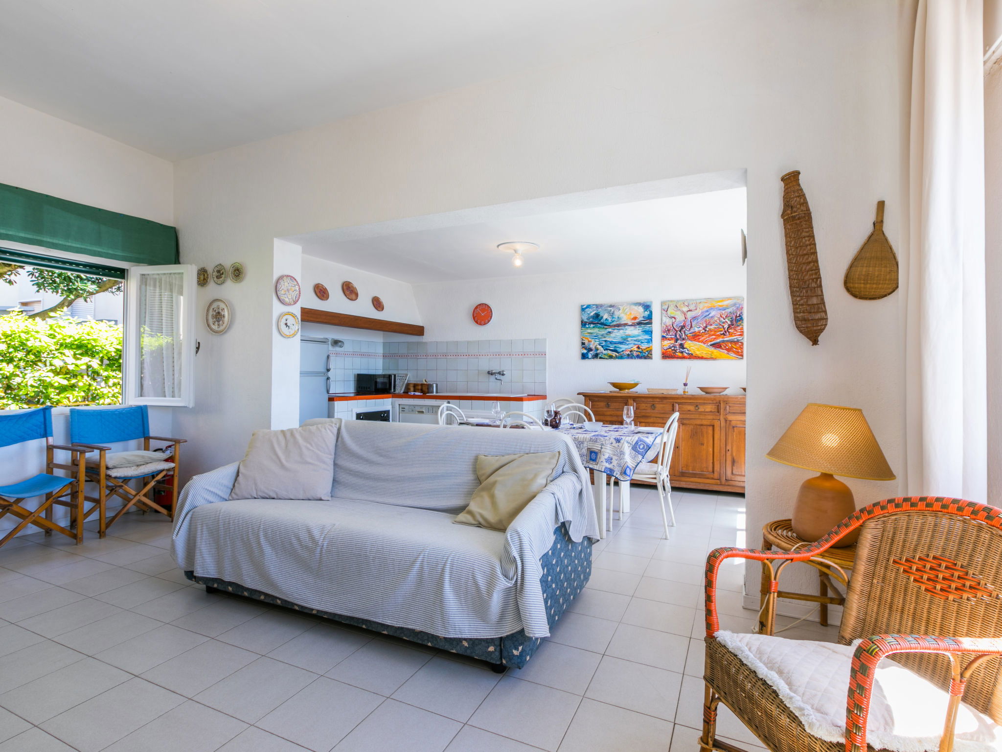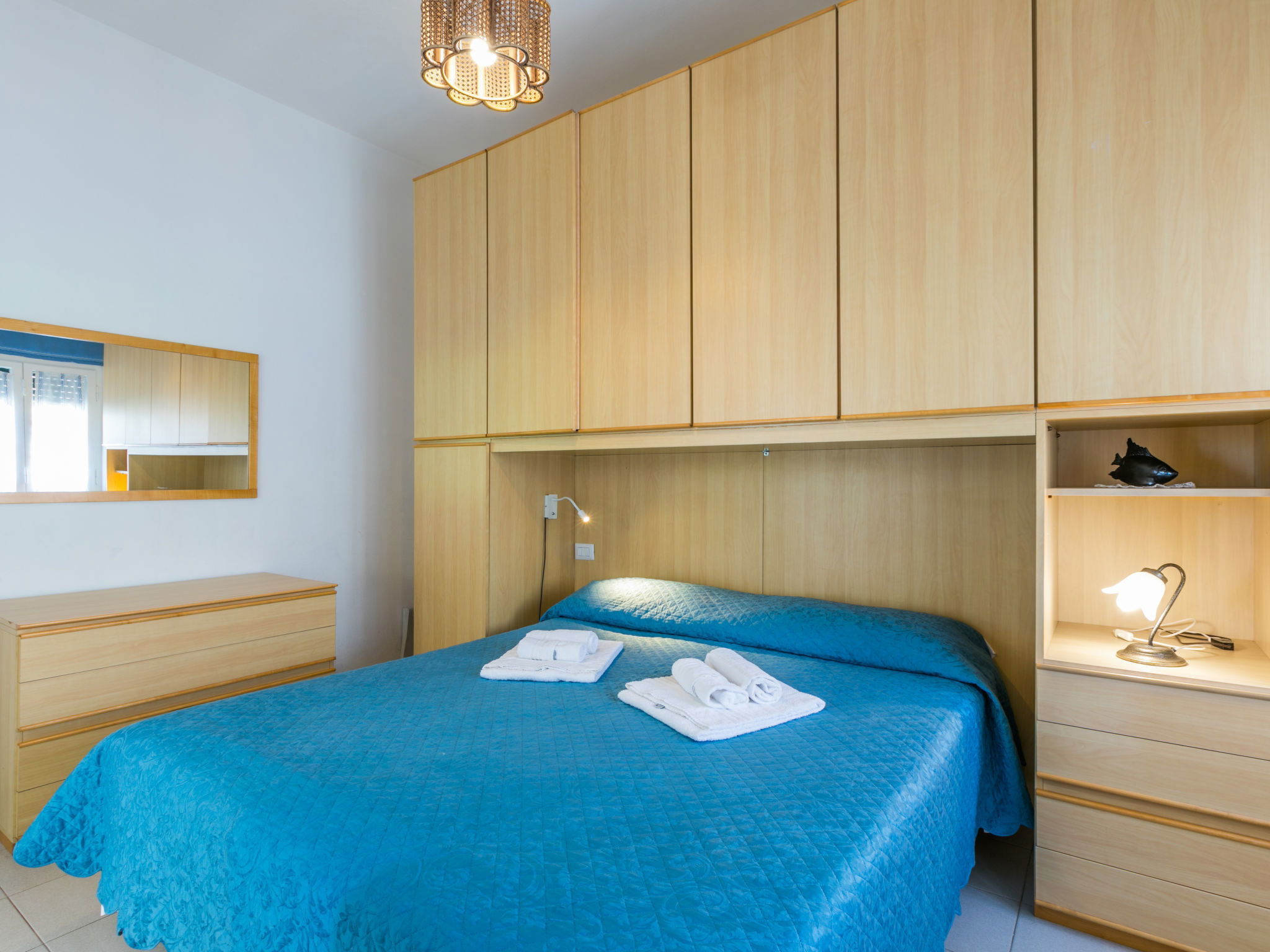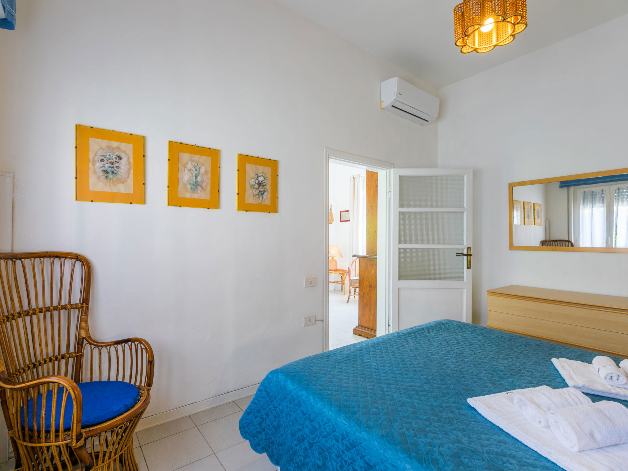 "Harbour", 2-room house 55 m2, on the ground floor. Spacious and bright, simple and practical furnishings: living/sleeping room with 1 double sofabed. Exit to the patio. 1 double bedroom with 1 double bed. Open kitchen (dishwasher, 4 ceramic glass hob hotplates, toaster, kettle, microwave) with dining table and TV. Shower/bidet/WC. Electric heating, air-conditioning. Patio. Terrace furniture. Very beautiful view of the sea and the port. Parking. Please note: maximum 1 pet/ dog allowed. Private entrance, fire extinguisher. IT049018B425WZ96NT