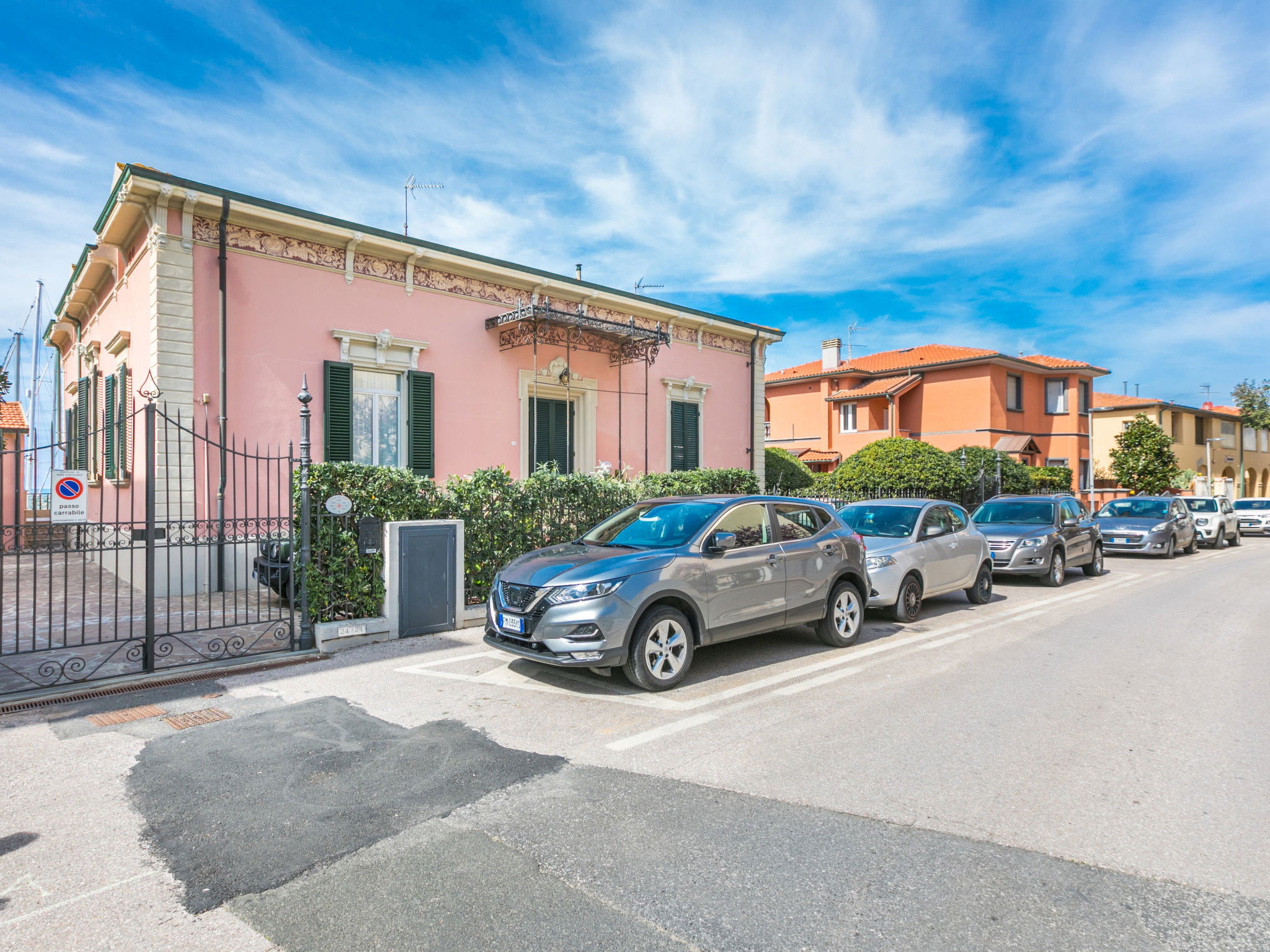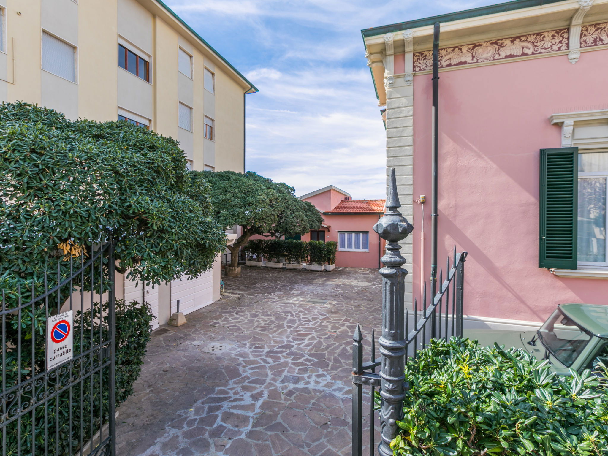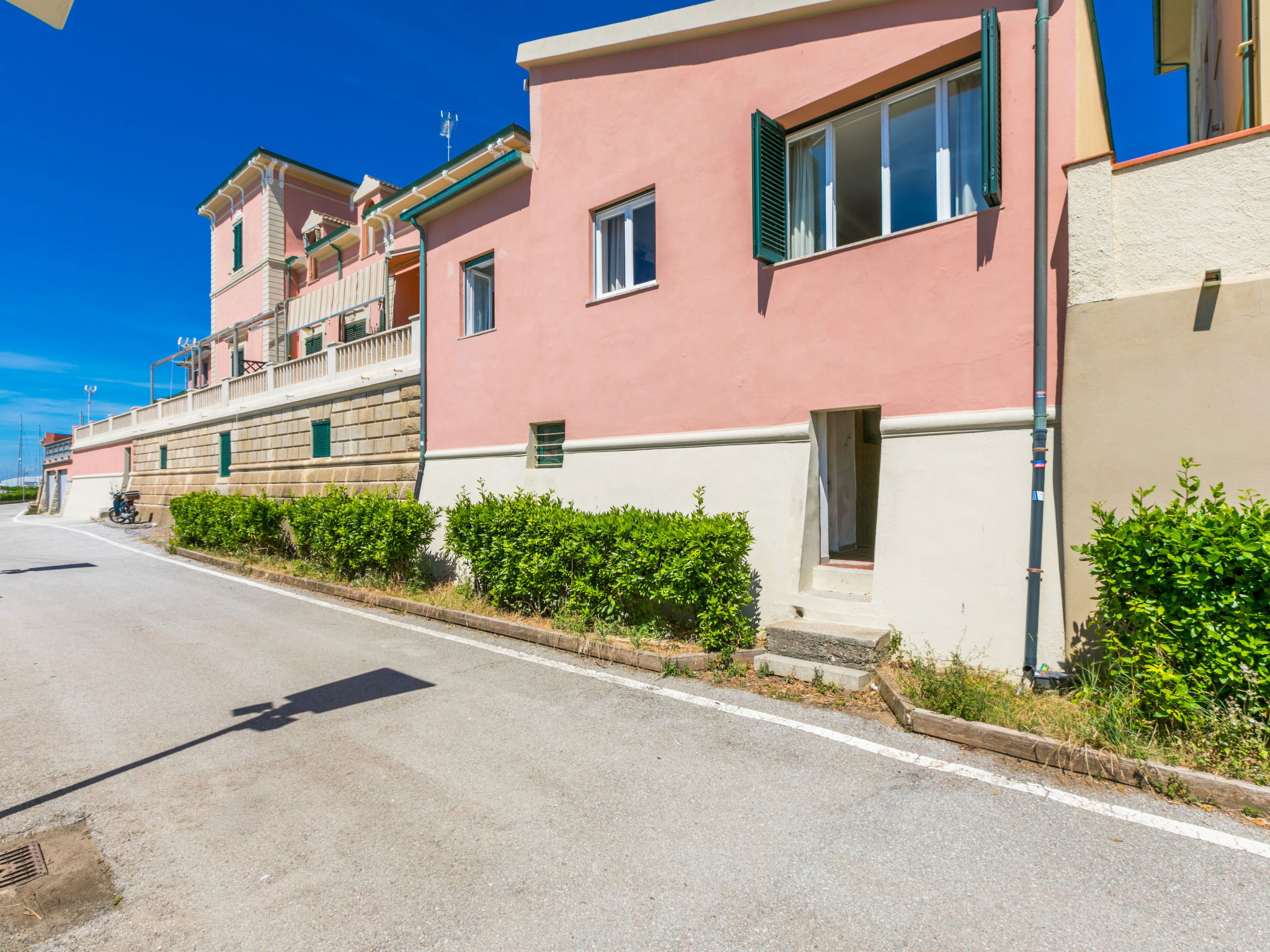 The beautiful house, built in Art Nouveau style, is centrally located directly above the port (50 m as the crow flies) of San Vincenzo. A direct path leads to the pedestrian area along the pier and the nearby free beach. Beautiful, historical apartment block "La Rosa dei Venti", 2 storeys, semi-detached. 3 apartments in the property. Property composed of main house and outbuilding, in the centre of San Vincenzo, excellent location: right in the centre but still quiet, 50 m from the sea, 180 m from the beach, direct access to the beach. For shared use: property (fenced). In the house: washing machine (extra) (for shared use), drying room. Linen change (suppl. charge extra). Towel change (suppl. charge extra). Parking on the premises. Shop 100 m, supermarket 500 m, restaurant 100 m, bakery 500 m, bus stop 190 m, railway station "San Vincenzo" 350 m, sandy beach "Spiaggia di Rimigliano" 6 km. Marina 50 m. Nearby attractions: Golfo di Baratti 13 km, Follonica 30 km, Siena 120 km. Well-known ski regions can easily be reached: Dog/Hunde Beach Strand 4 km. Please note: the owner lives in the same residence.
