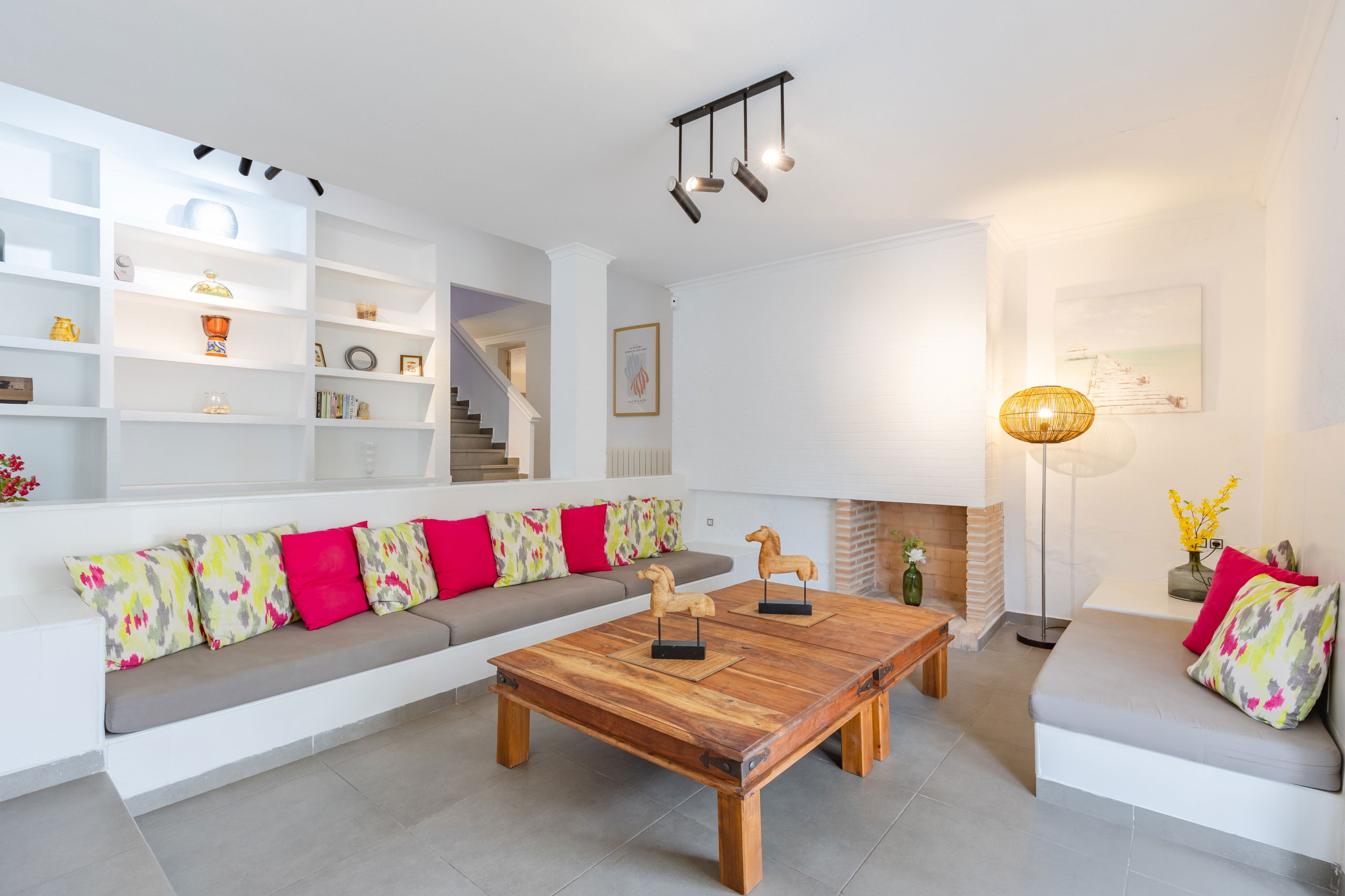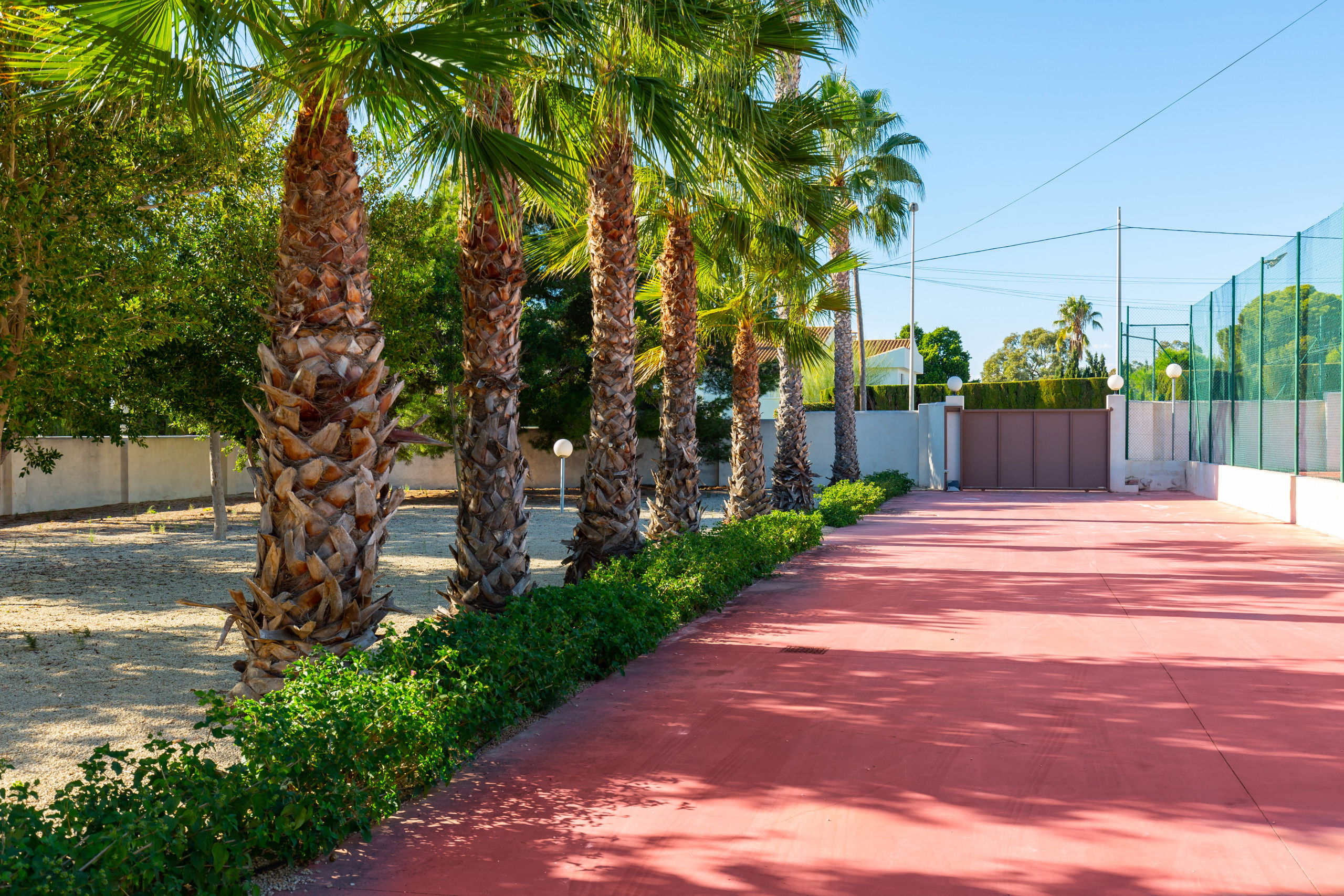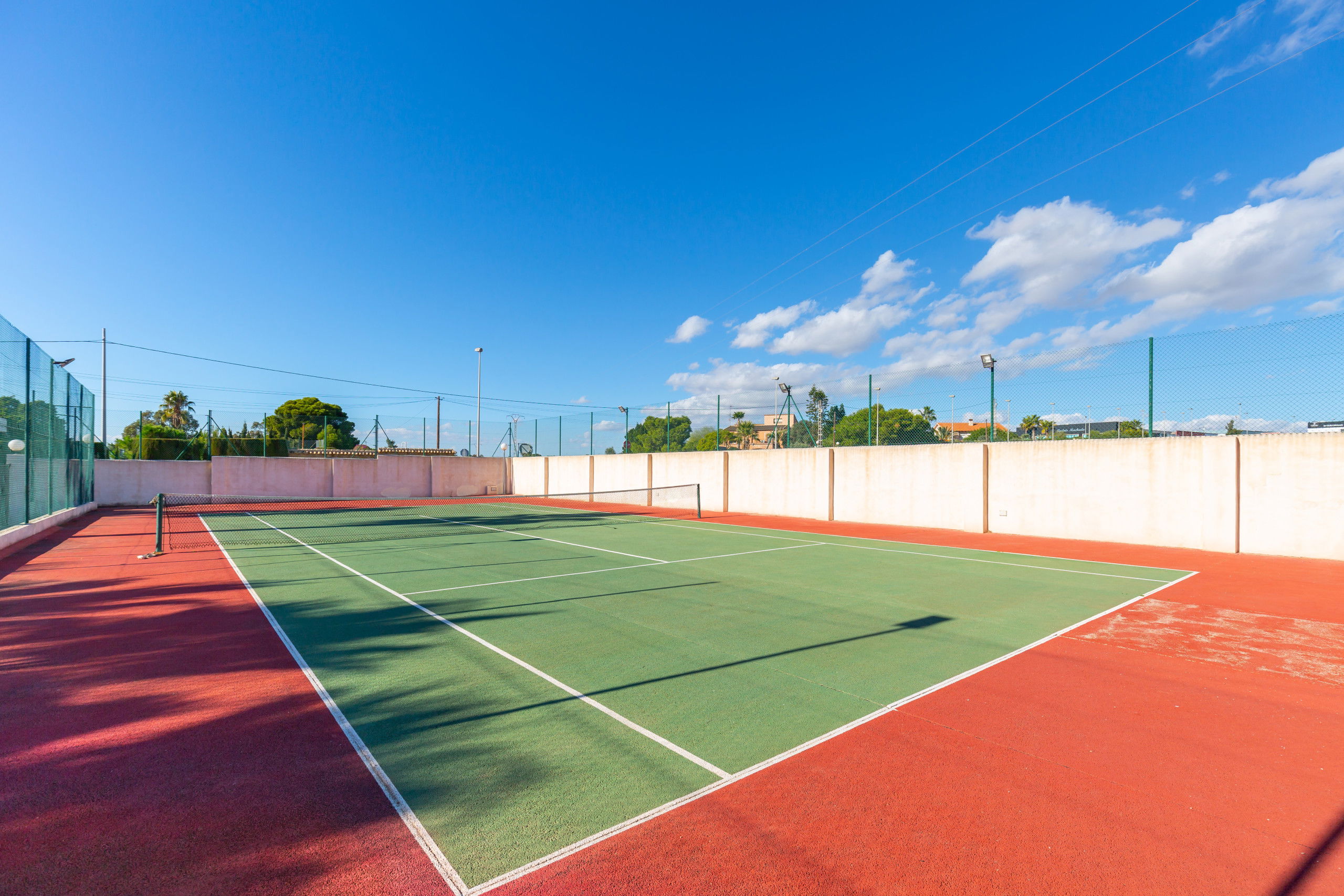 The villa has a tennis court, swimming pool and private barbecue, with a large garden, great for celebrations. Changing rooms with a bathroom is located in the pool area, without the need to enter the villa. Air conditioning and ceiling fans in the the rest of the house, is ideal during hot weather. Inside we can find on the ground floor a fully equipped kitchen with island and dining room, laundry room, main dining room and gazebo and a second living room with stunning fireplace, bathroom and two bedrooms, another games room with table.