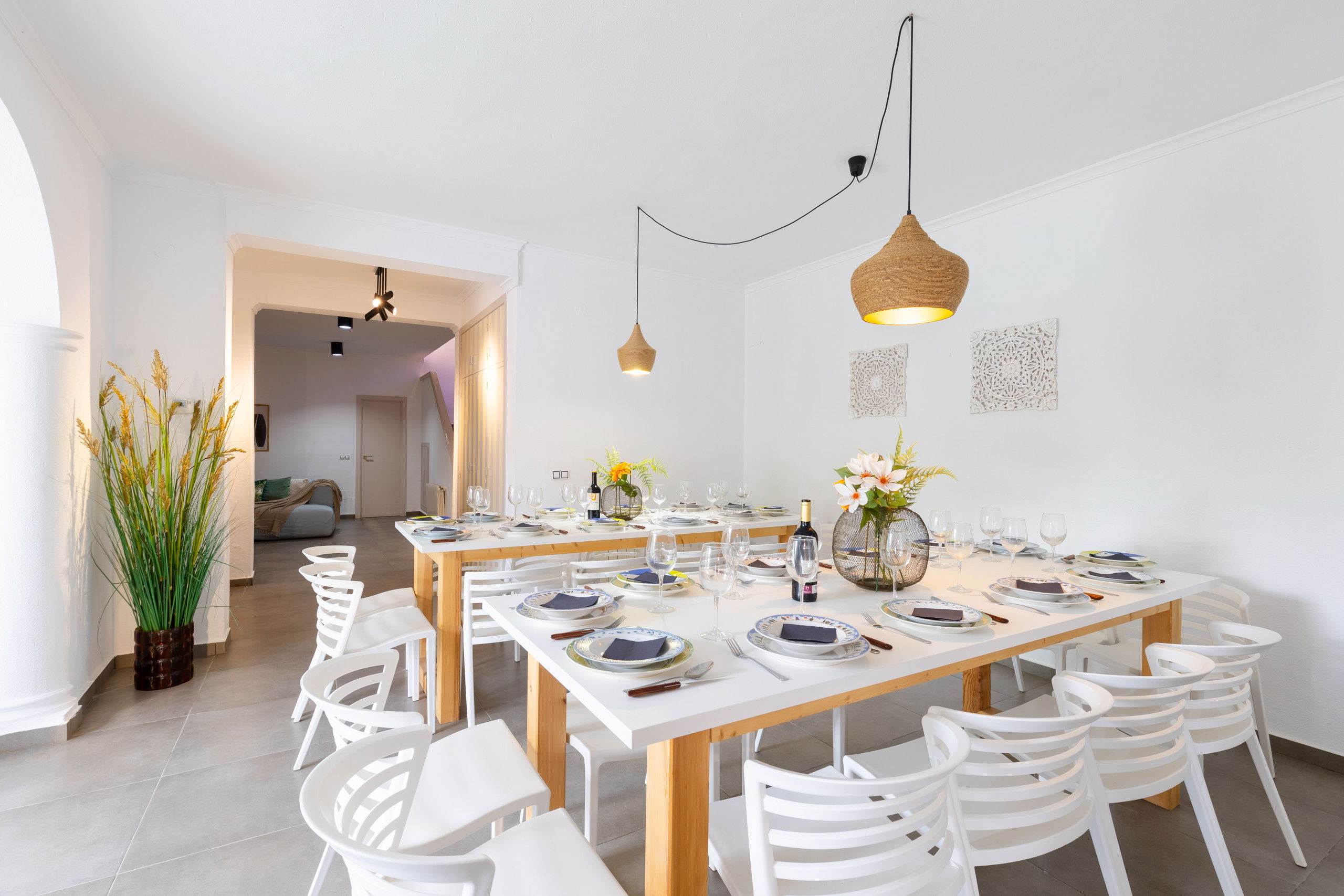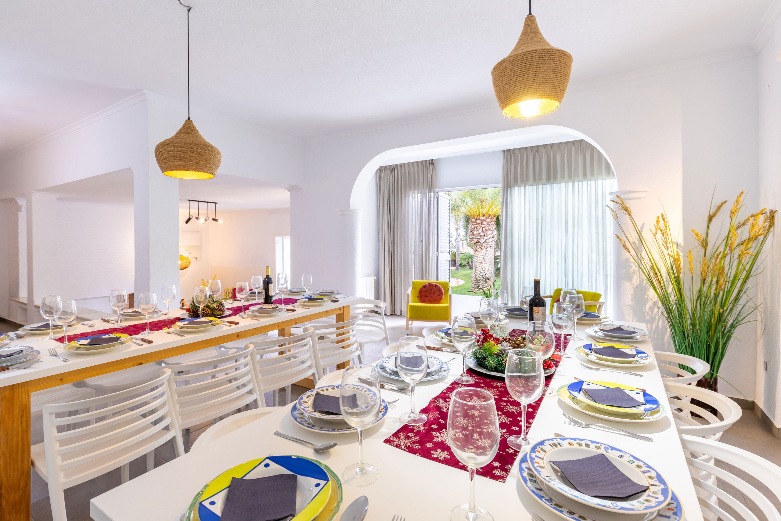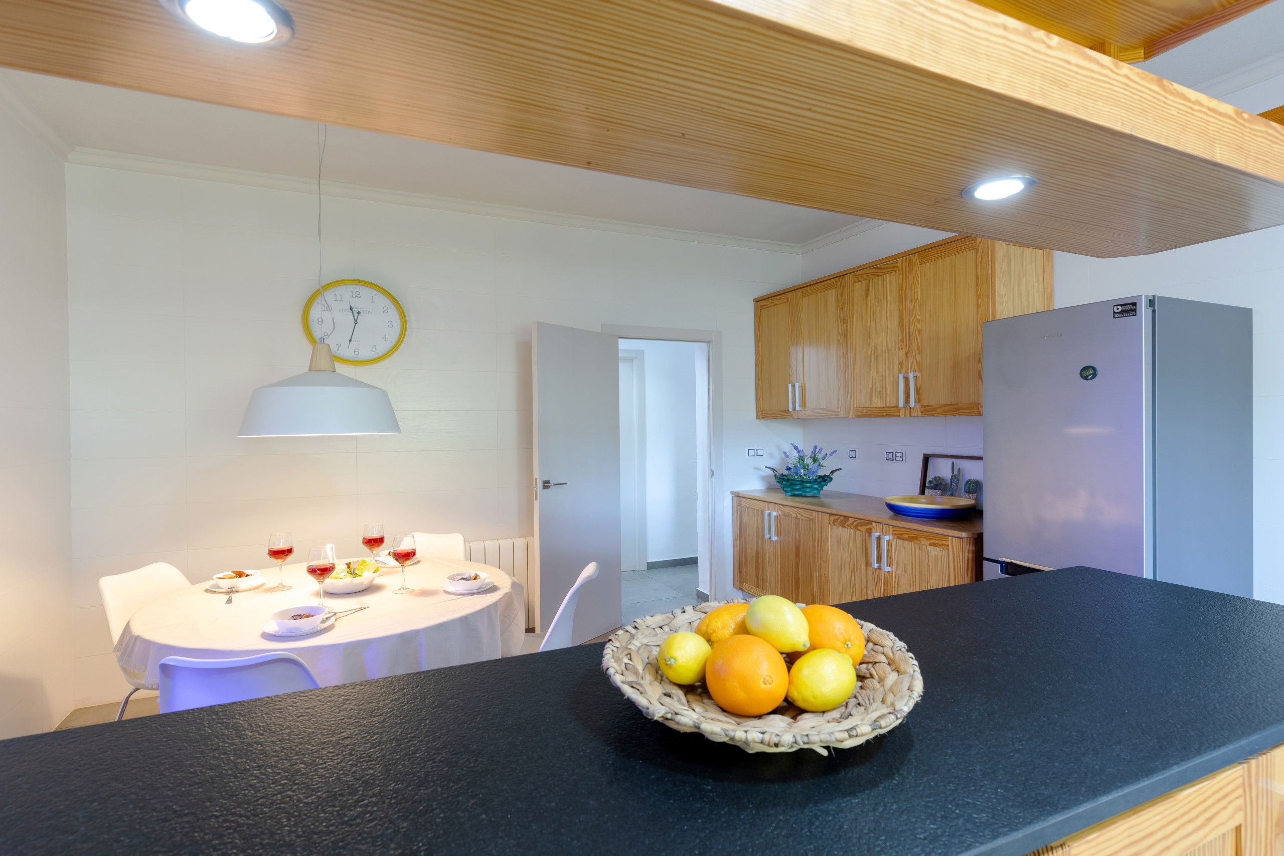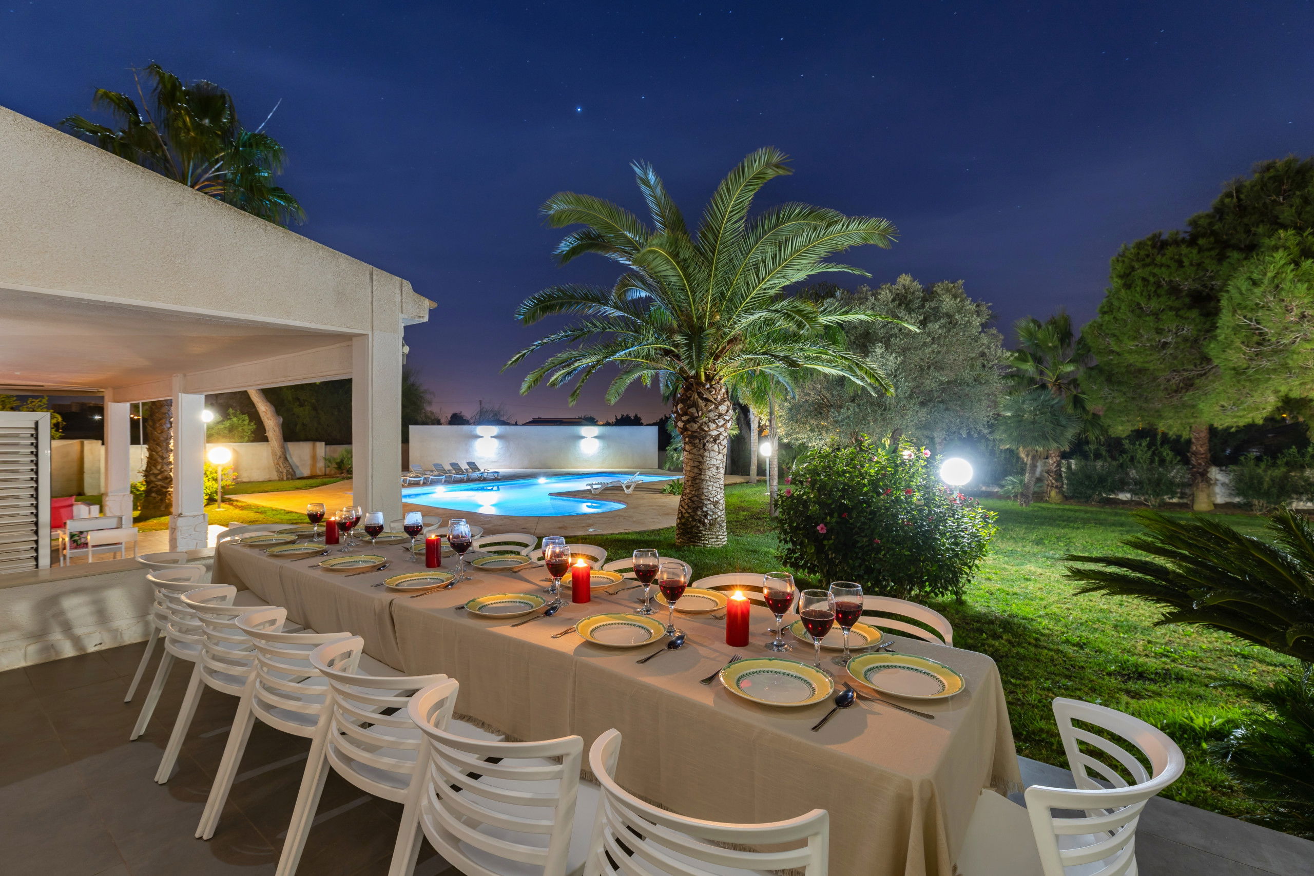 The villa in Santa Pola has 7 bedroom(s) and a capacity for 23 people, overlooking the garden and the pool. It has a garden, garden furniture, fenced plot, barbecue, fireplace, iron, internet access (Wi-Fi), tennis court, central heating, air conditioning and in the rest of the house, there are ceiling fans. private pool, open-air parking in the same building, television. The kitchen is equipped with a refrigerator, microwave, oven, freezer, washing machine, dishwasher, dishes/cutlery and utensils/kitchen.
