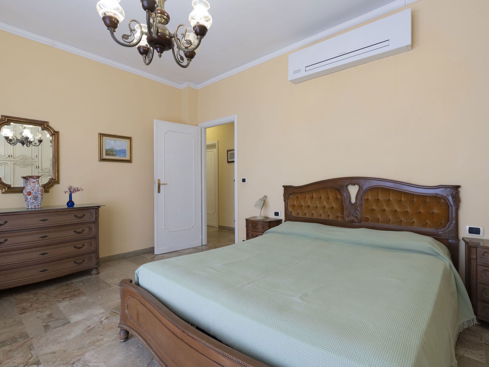 "Irma ", 3-room house 167 m2 on 2 levels. Spacious, rustic and stylish furnishings: living/sleeping room with 1 double sofabed (140 cm), dining table, satellite TV, hi-fi system and DVD. Exit to the terrace. 2 rooms, each room with 1 bed (80 cm), 1 french bed (160 cm). Exit to the balcony. Entrance hall with 1 bed (80 cm). Large kitchen (oven, dishwasher, 4 gas rings, toaster, microwave, freezer, electric coffee machine) with dining table. Bath/bidet/WC, shower/bidet/WC. On the lower ground floor: shower/WC. Air-conditioning, forced-air heating. Terrace, large terrace 40 m2, roofed. Terrace furniture, barbecue, deck chairs (2). Very beautiful view of the sea, the port and the bay. Facilities: washing machine, children's high chair, baby cot for up to 2 year olds, hair dryer. Internet (WiFi, free). Maximum 2 pets/ dogs allowed. IT008021C2GJWSSDJB