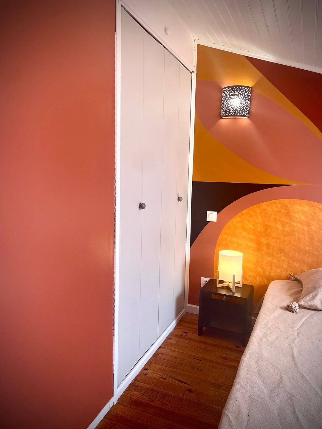 Mezzanine open on the living room, no door 2 beds 90 which can be brought closer and form a double bed, arrangements.