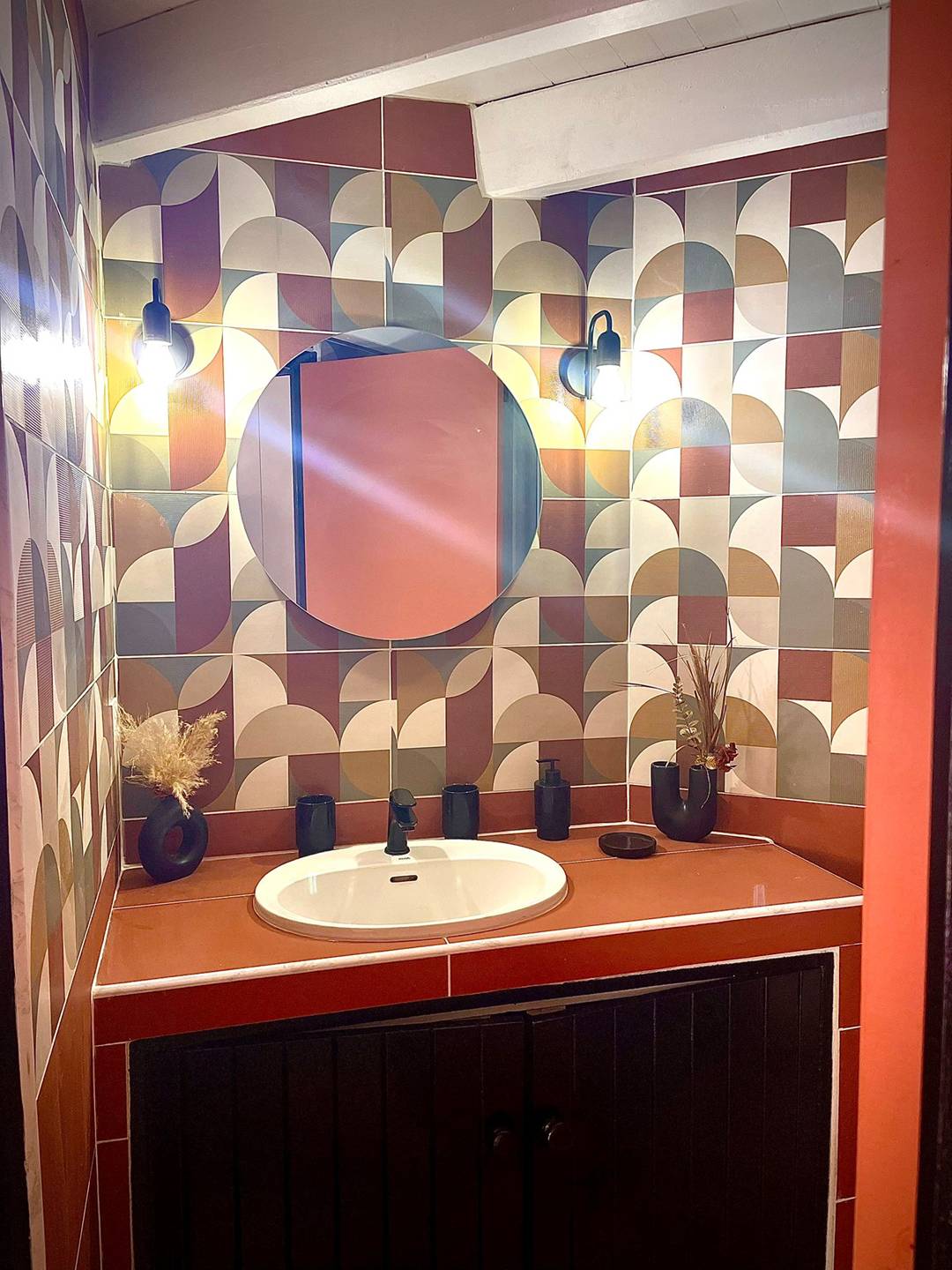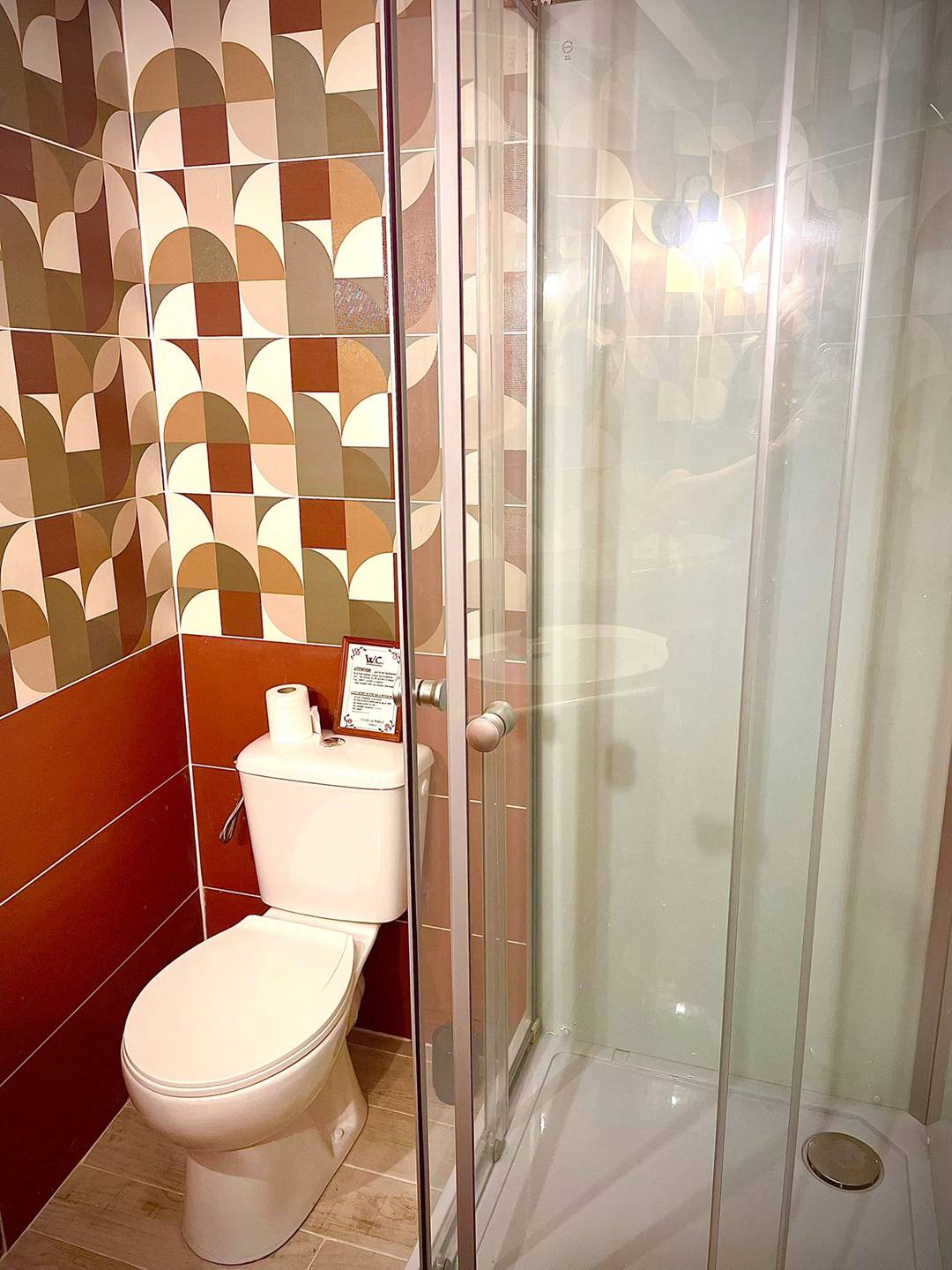Living room/kitchenette : 2 beds in 90 being used as sofa, television (French), dishwasher, washing machine, fridge (table top), microwave, stove, extractor hood, induction cooker, coffee machine ...